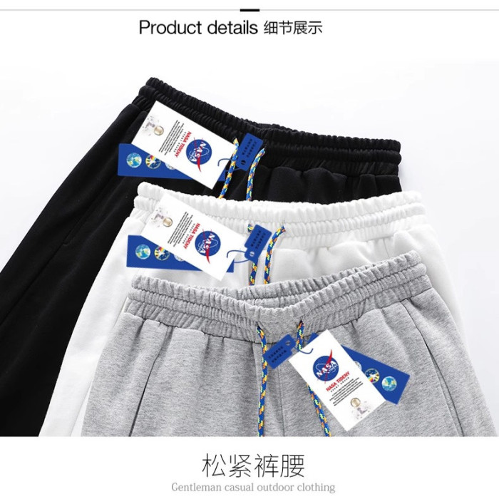 NASA官方旗艦純棉褲子男女新款春夏秋冬季男士休閒運動灰色衛褲薄
