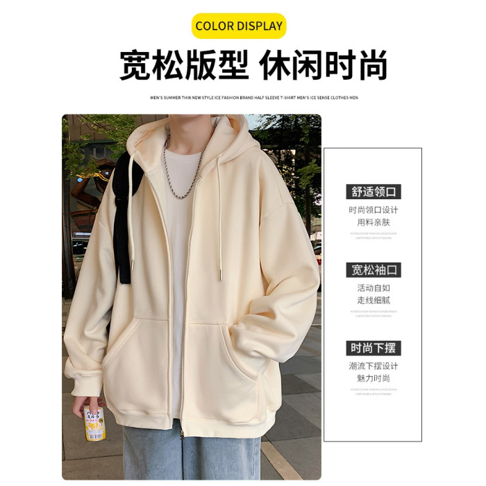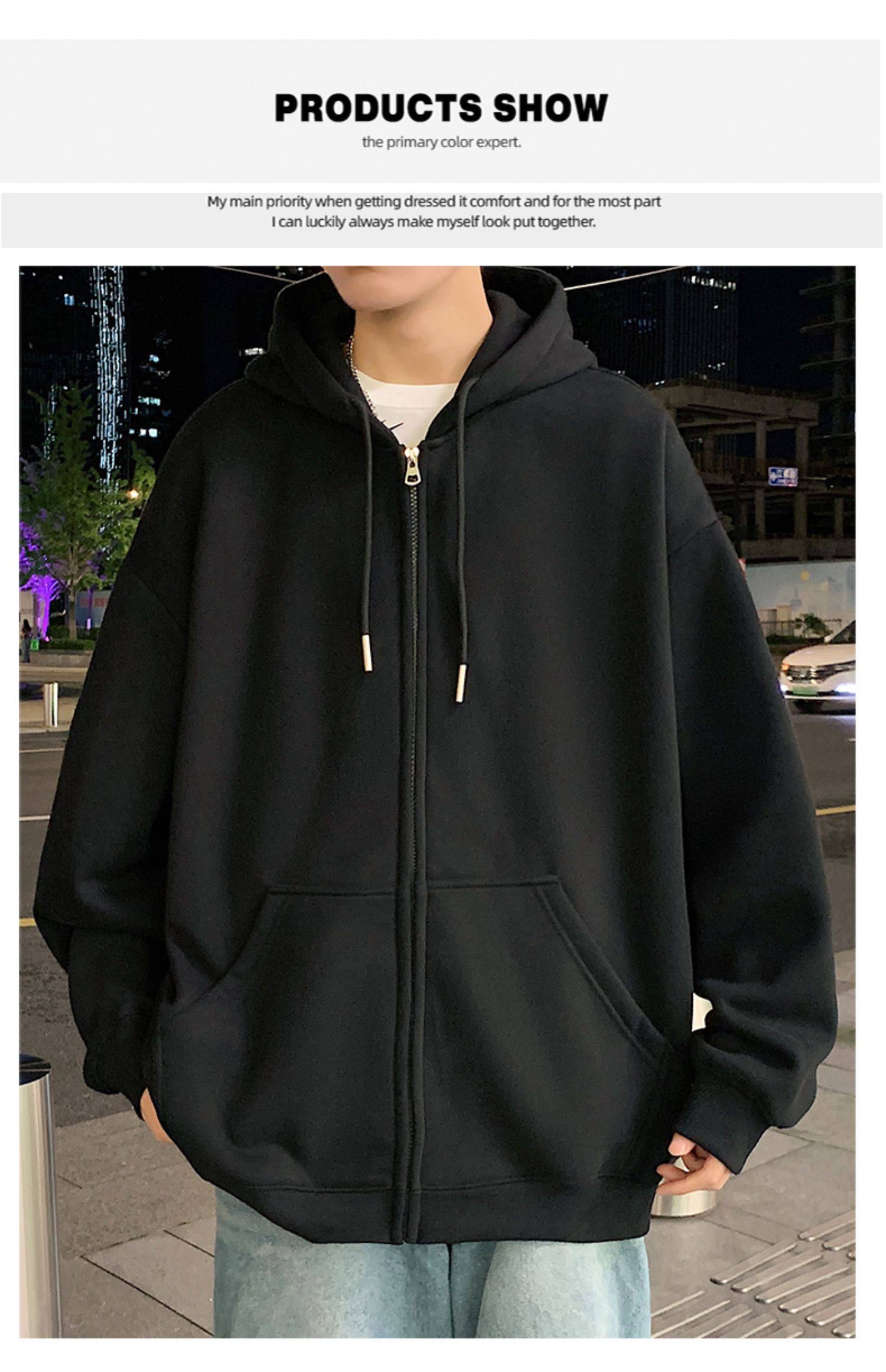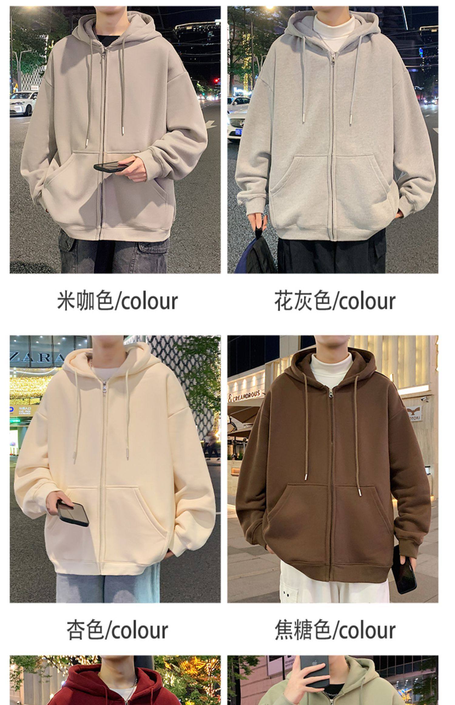2025新款開衫衛衣男春秋季連帽拉鍊運動重磅外套美式潮牌男生上衣
