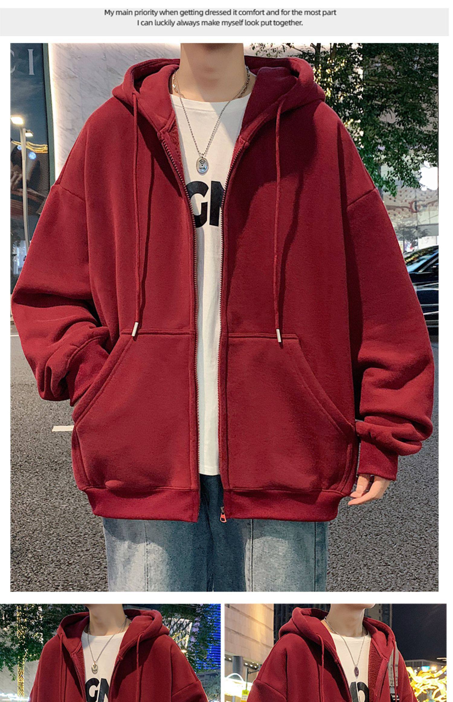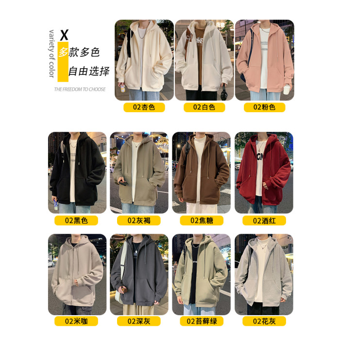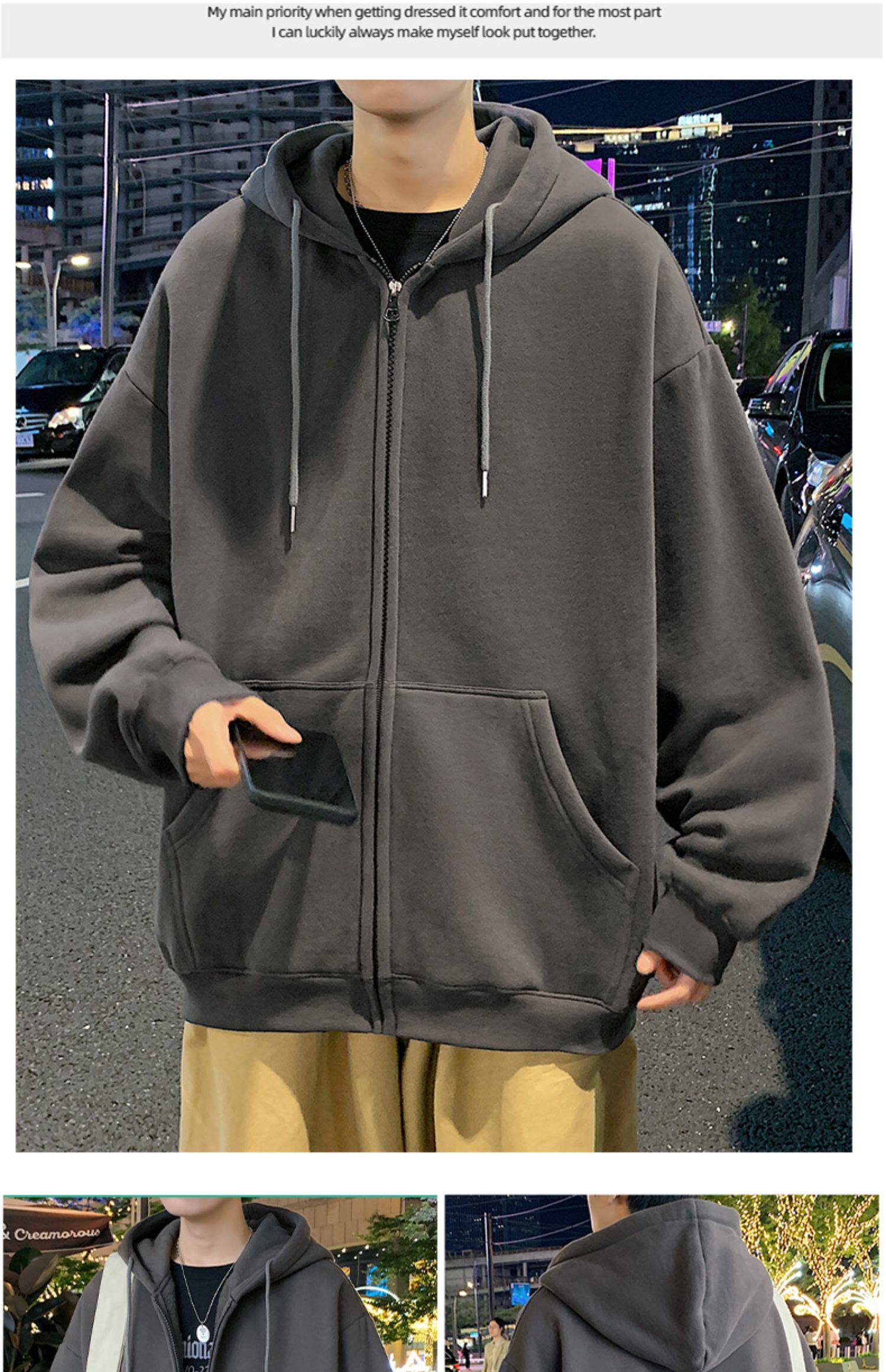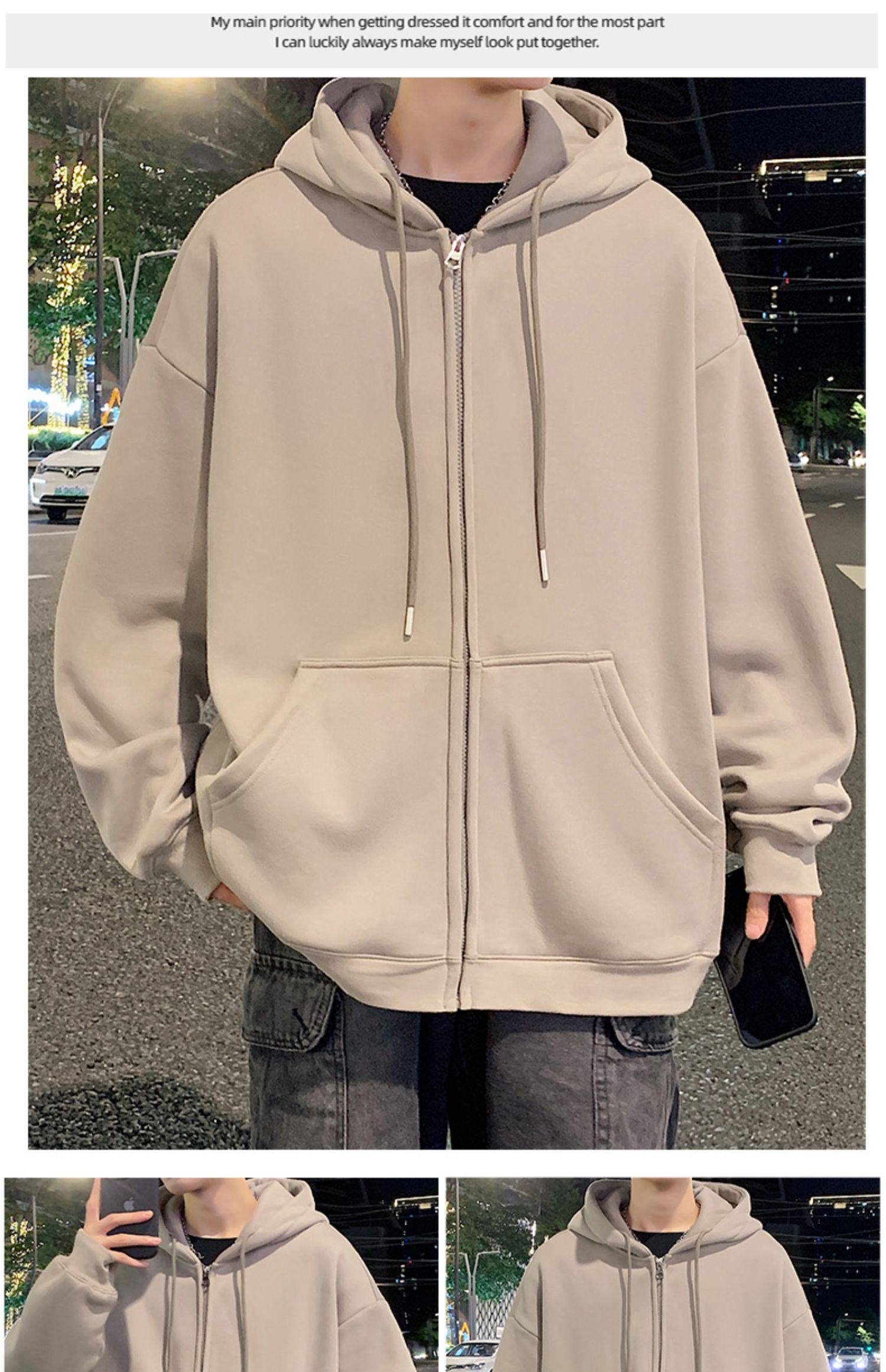 2025新款開衫衛衣男春秋季連帽拉鍊運動重磅外套美式潮牌男生上衣