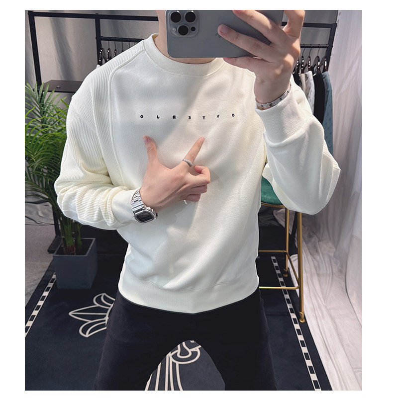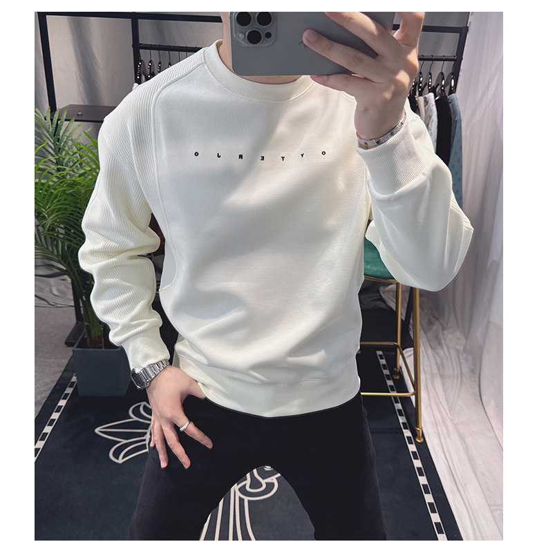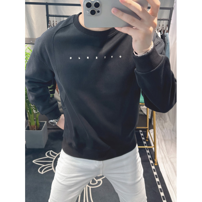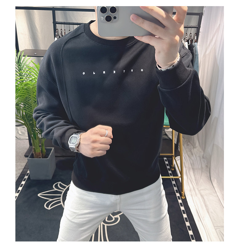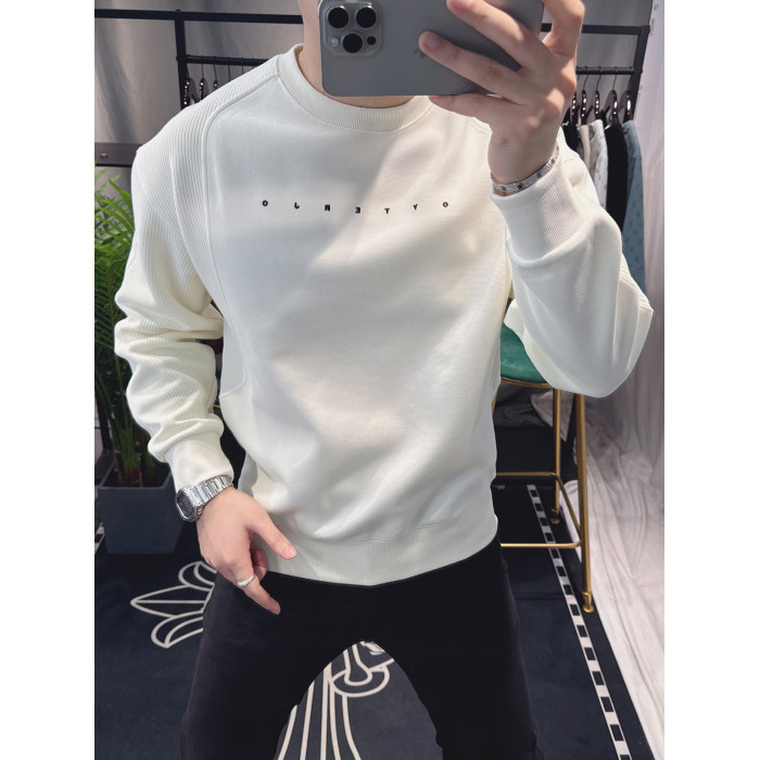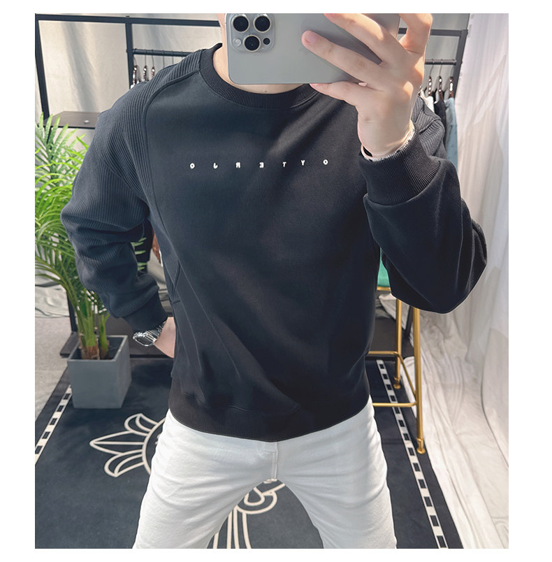 歐洲站寬松衛衣男春秋款2025新款字母刺綉時尚拼接上衣圓領簡約潮