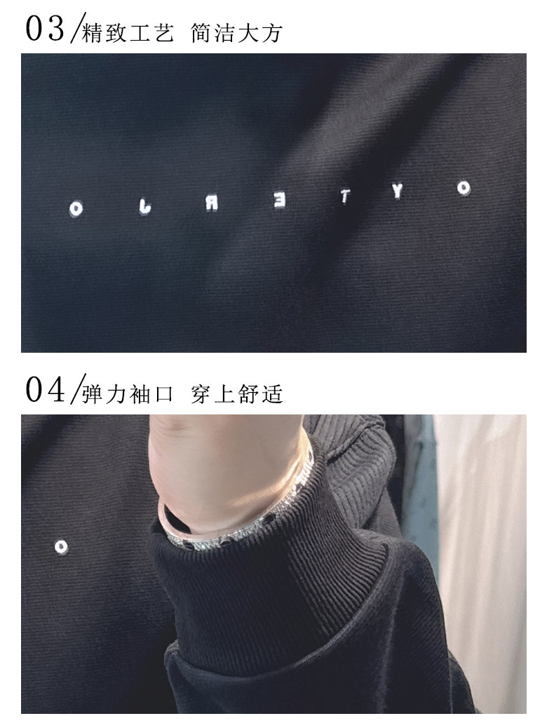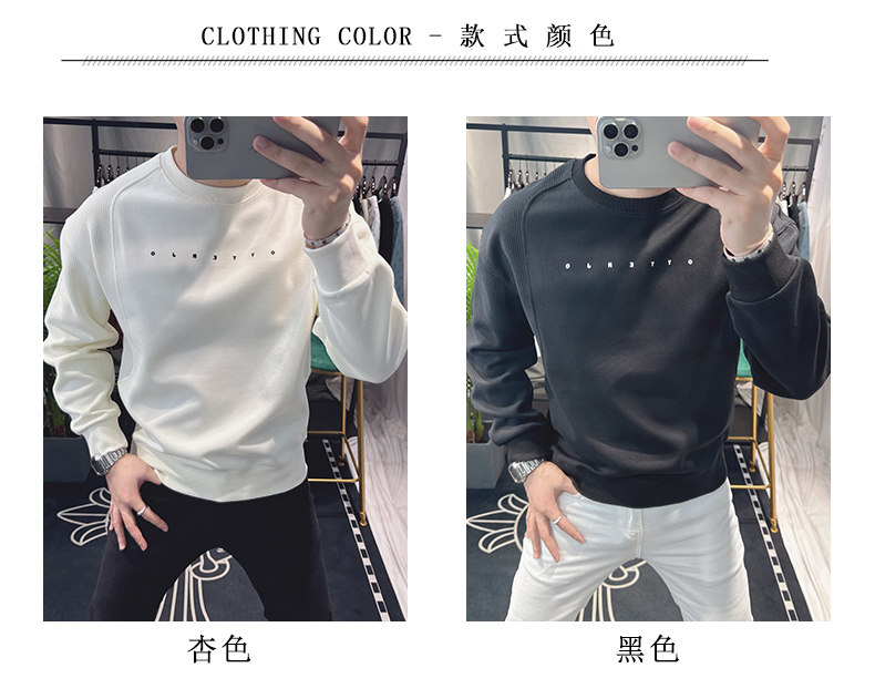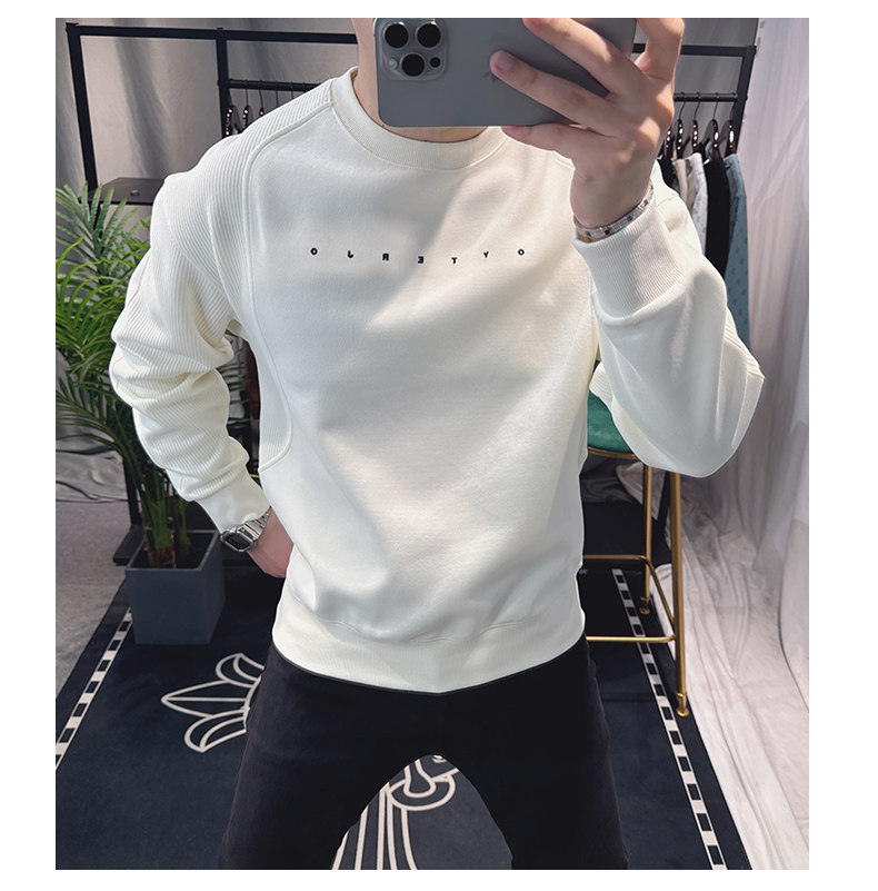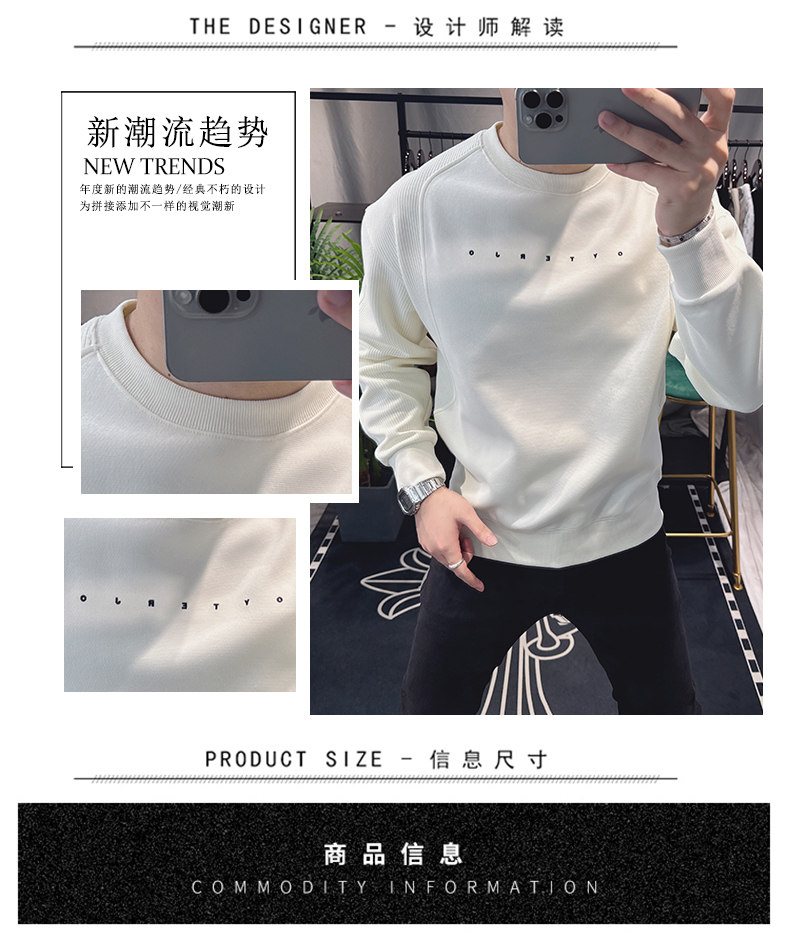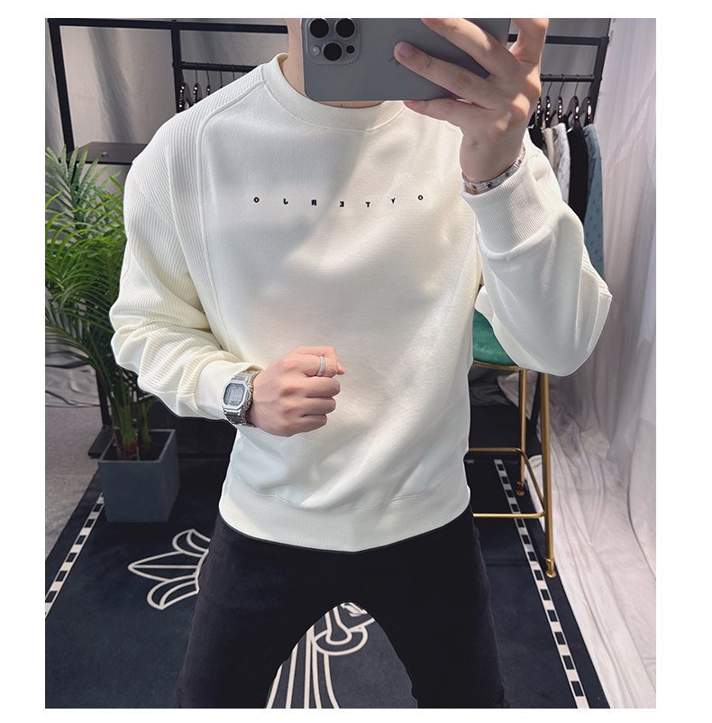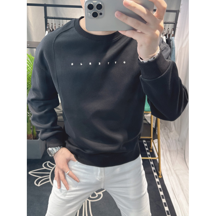 歐洲站寬松衛衣男春秋款2025新款字母刺綉時尚拼接上衣圓領簡約潮