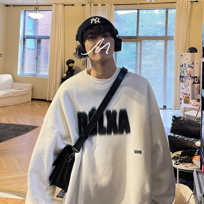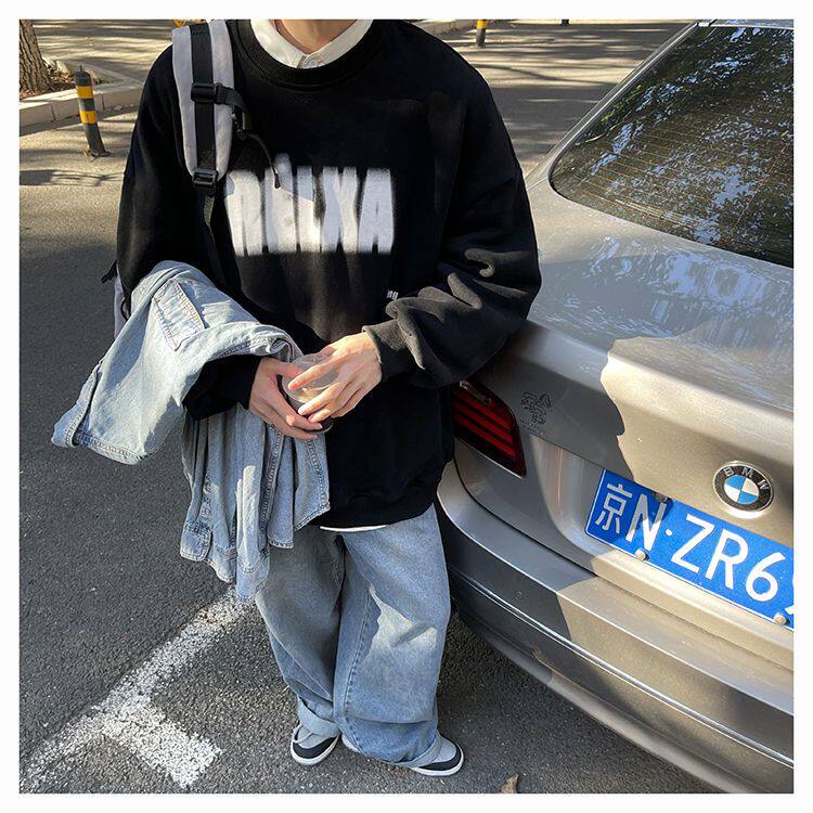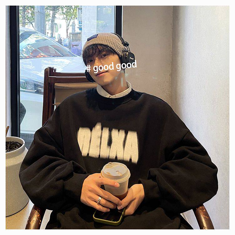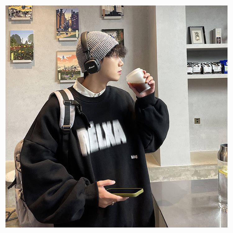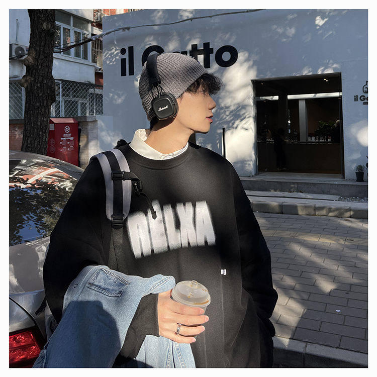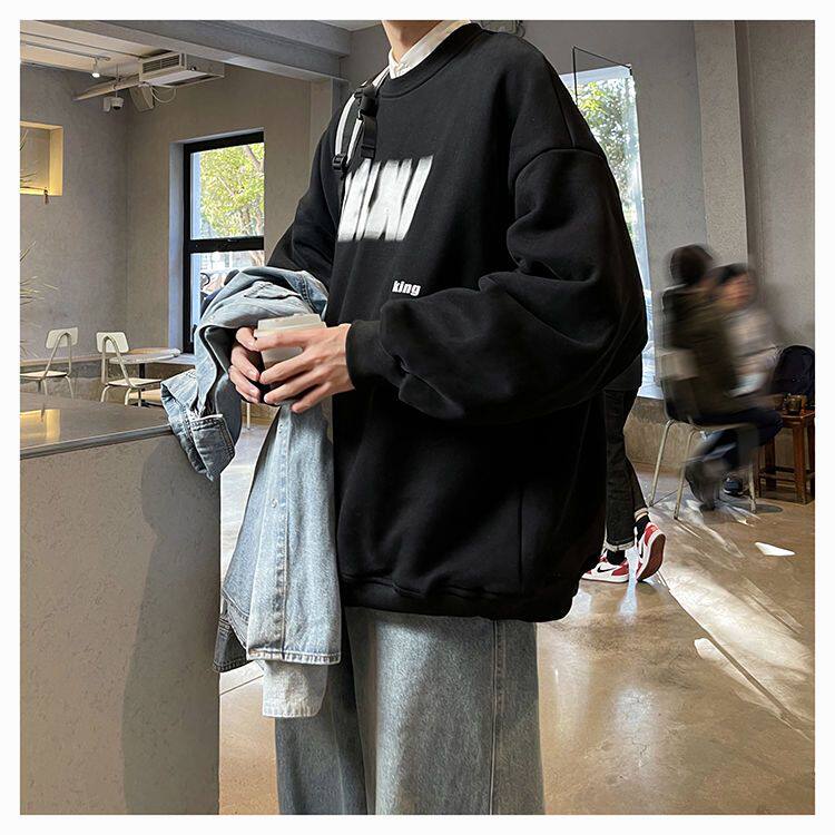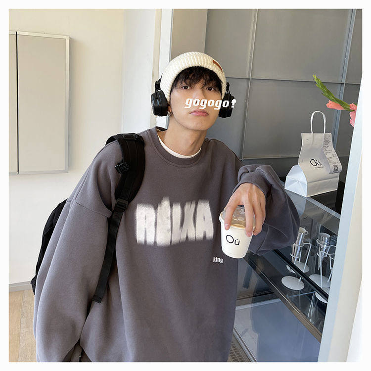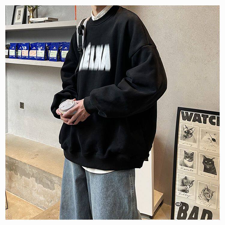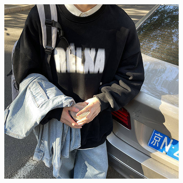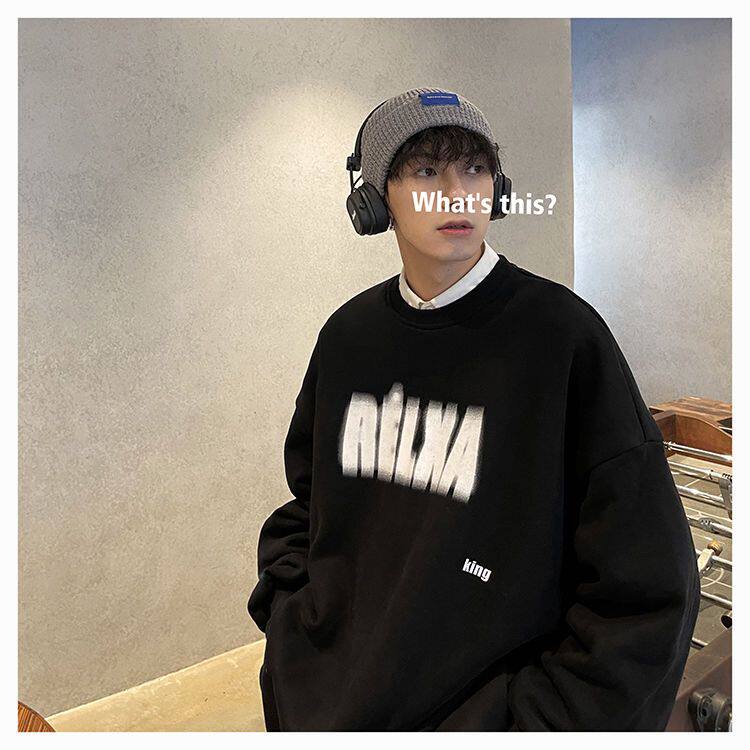 純棉圓領衛衣男款春秋款潮oversize寬松百搭字母印花秋冬加絨加厚