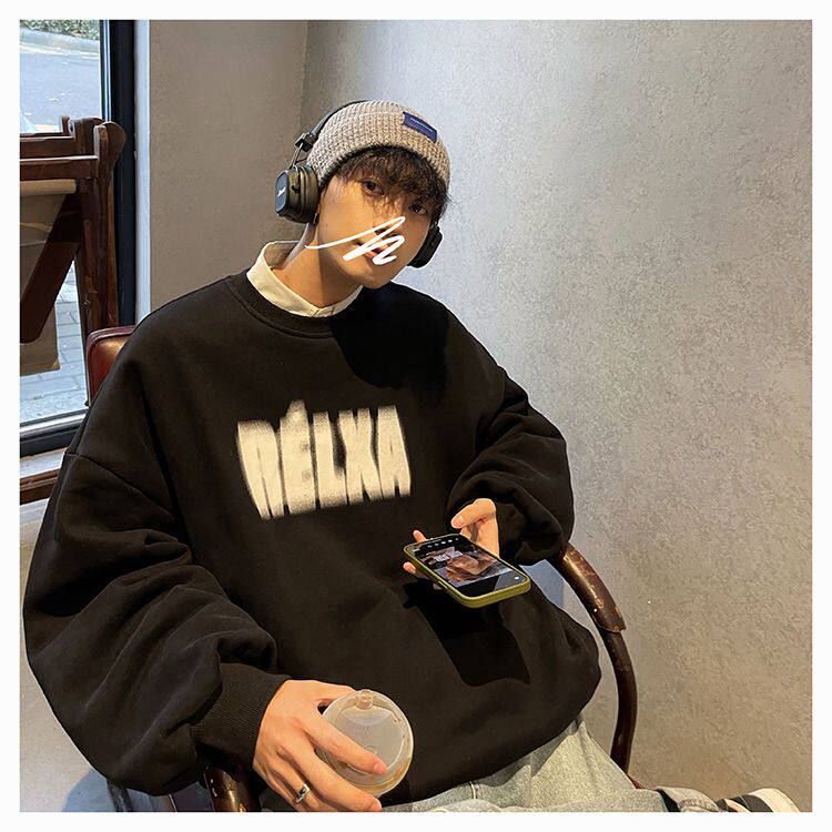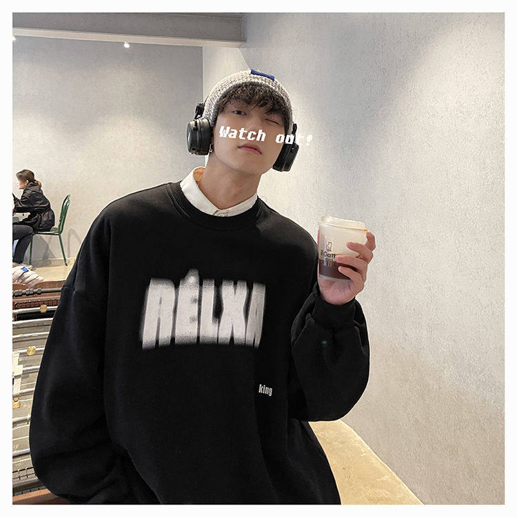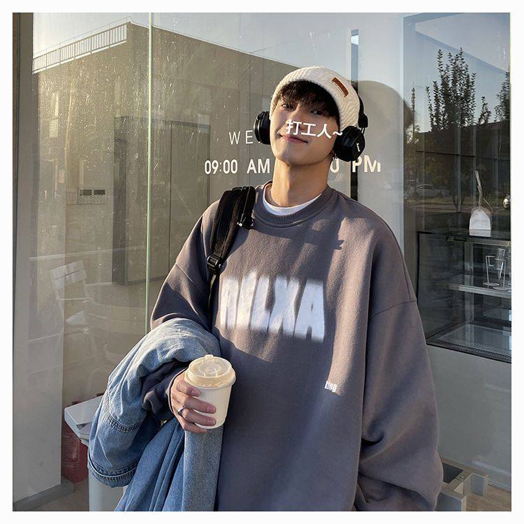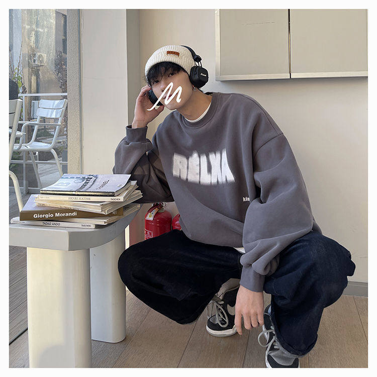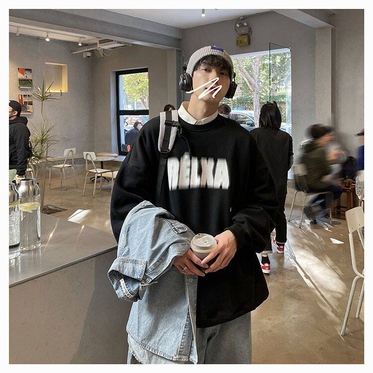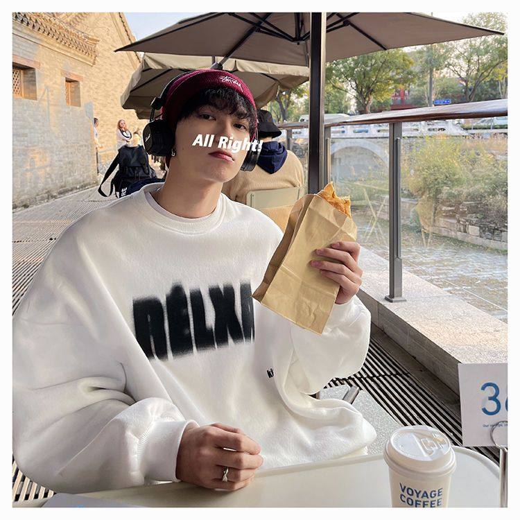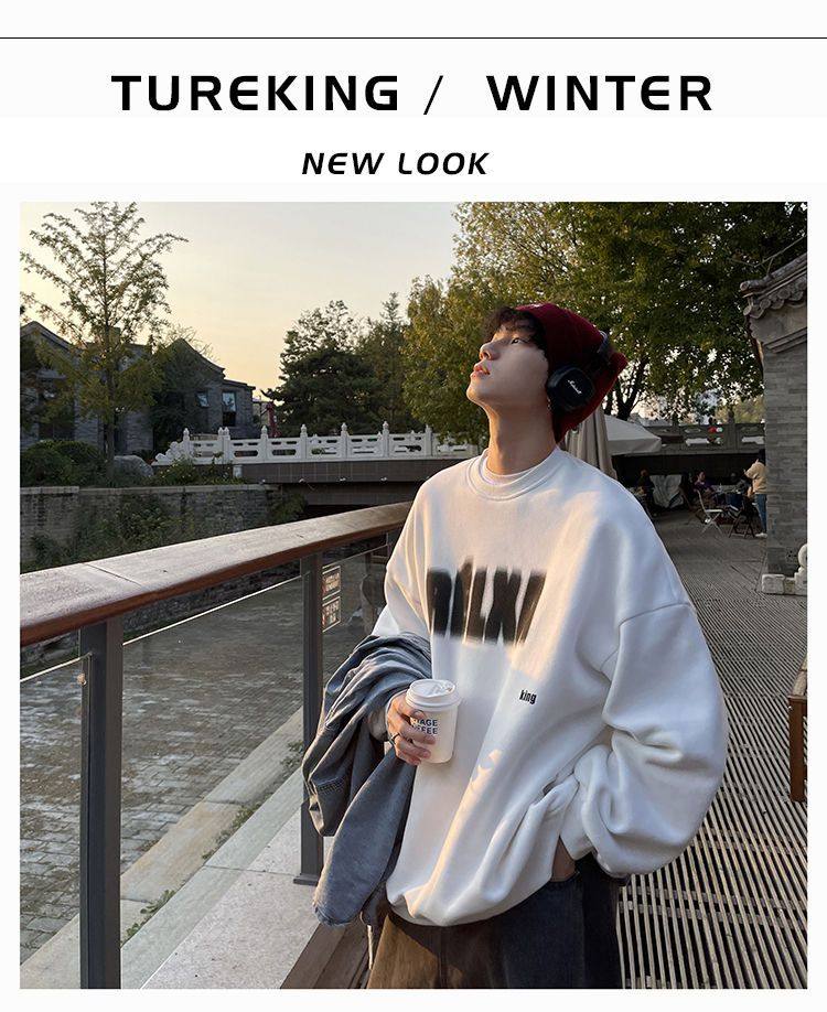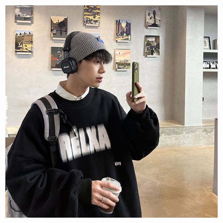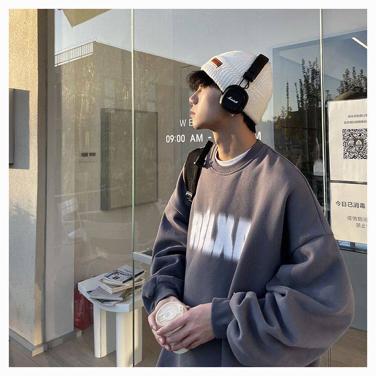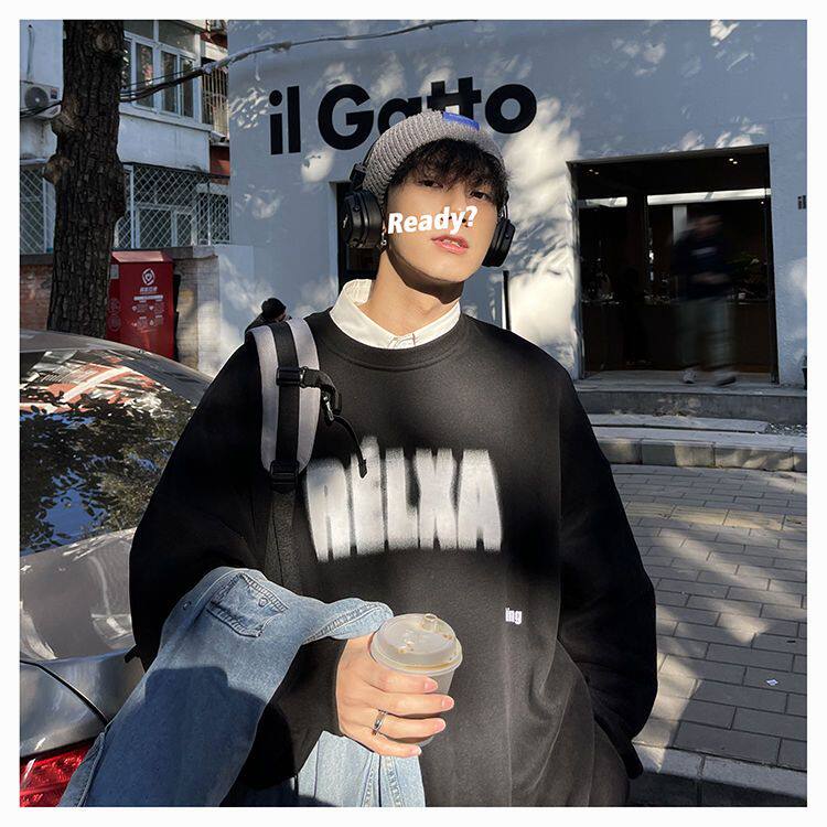 純棉圓領衛衣男款春秋款潮oversize寬松百搭字母印花秋冬加絨加厚
