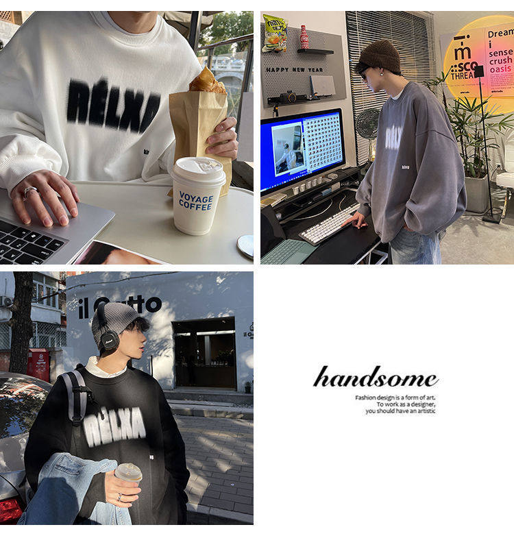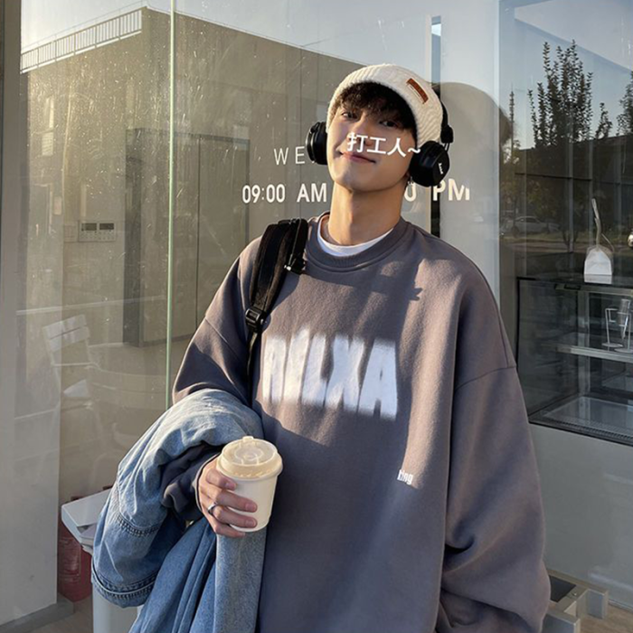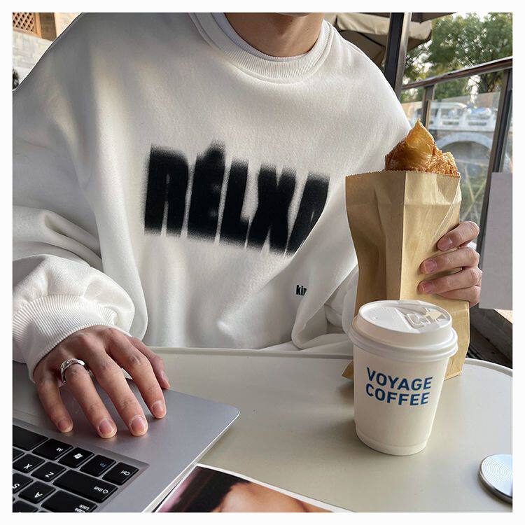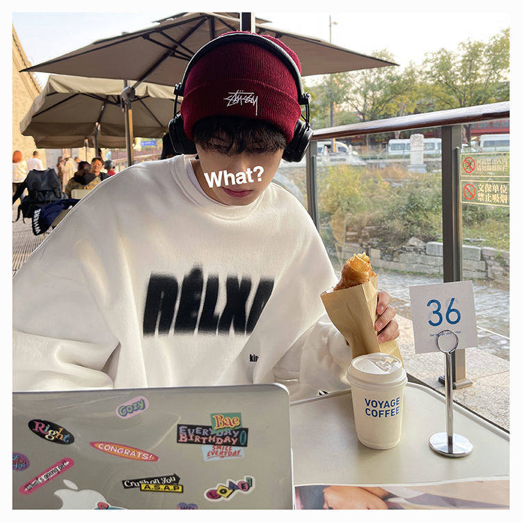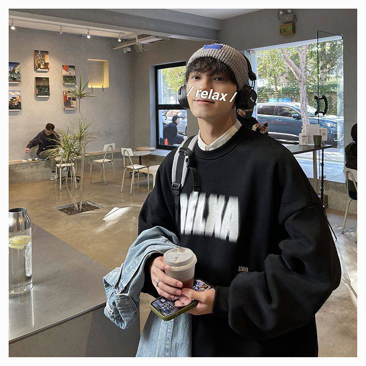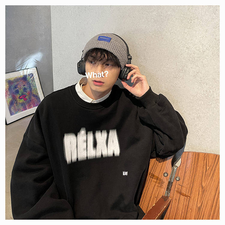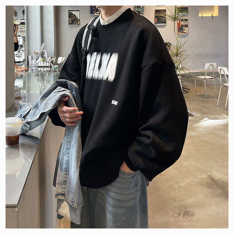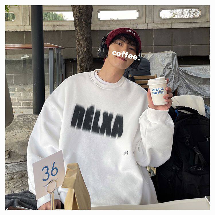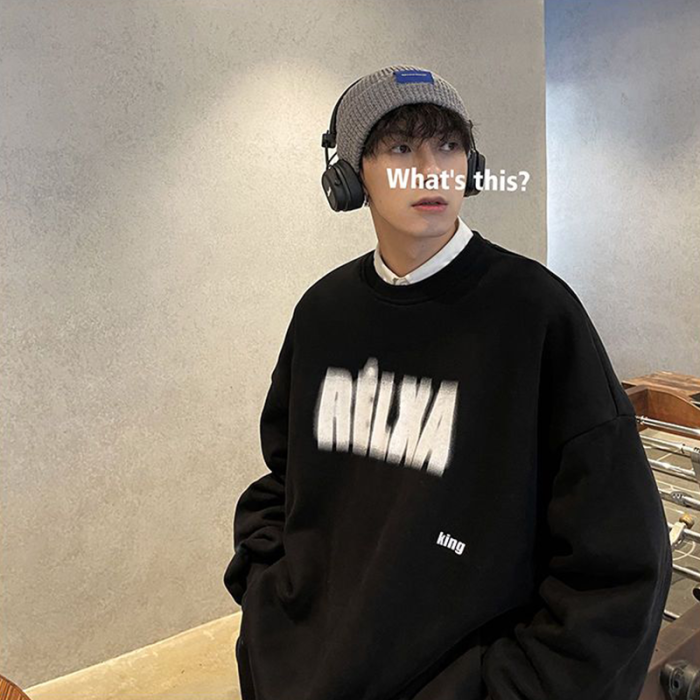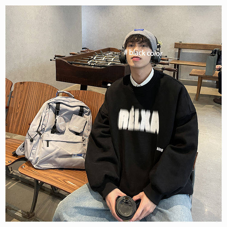 純棉圓領衛衣男款春秋款潮oversize寬松百搭字母印花秋冬加絨加厚