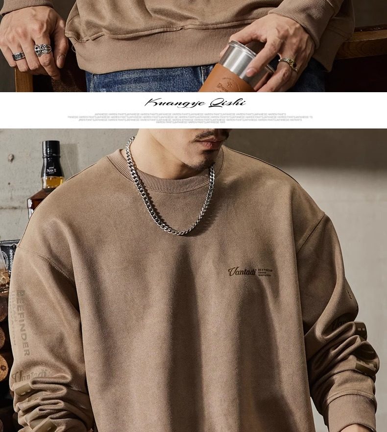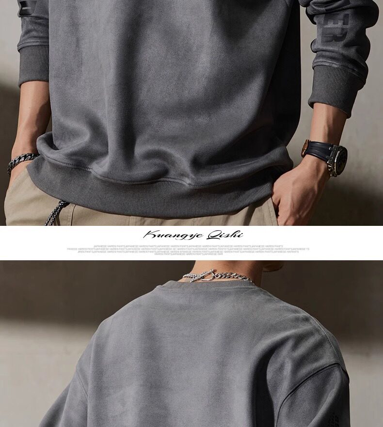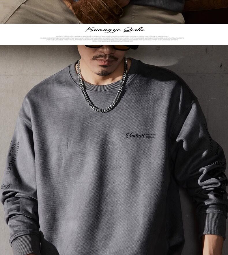 大碼300斤美式重磅衛衣男士春秋高級感潮牌寬松上衣麂皮絨衣服男