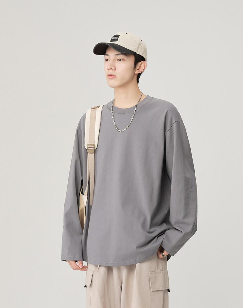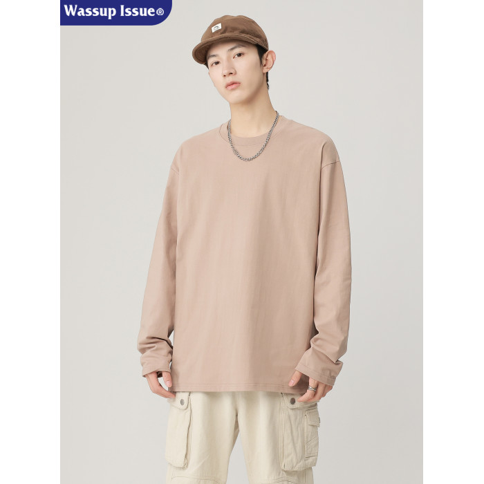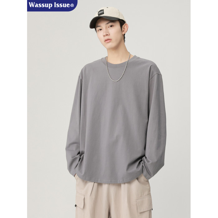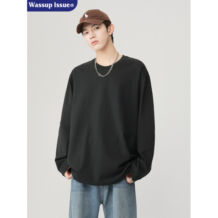 WASSUP ISSUE寬松圓領長袖T恤男款夏季內搭上衣休閒純色打底衫男