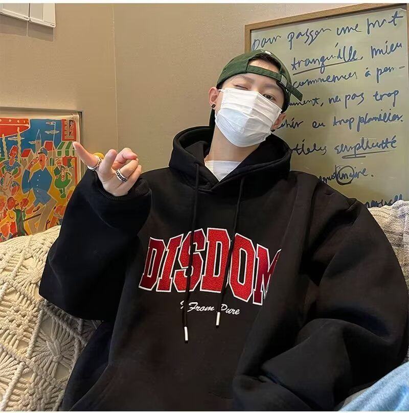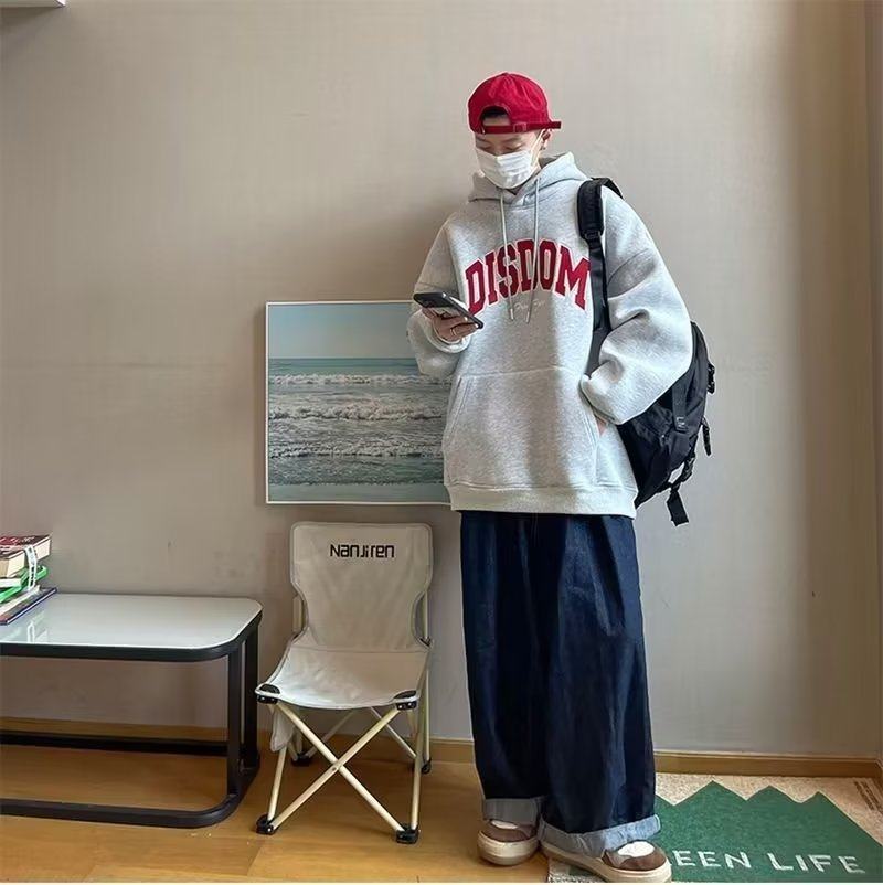 美式連帽衛衣男潮牌大碼ins秋冬季字母印花寬松上衣潮流百搭外套