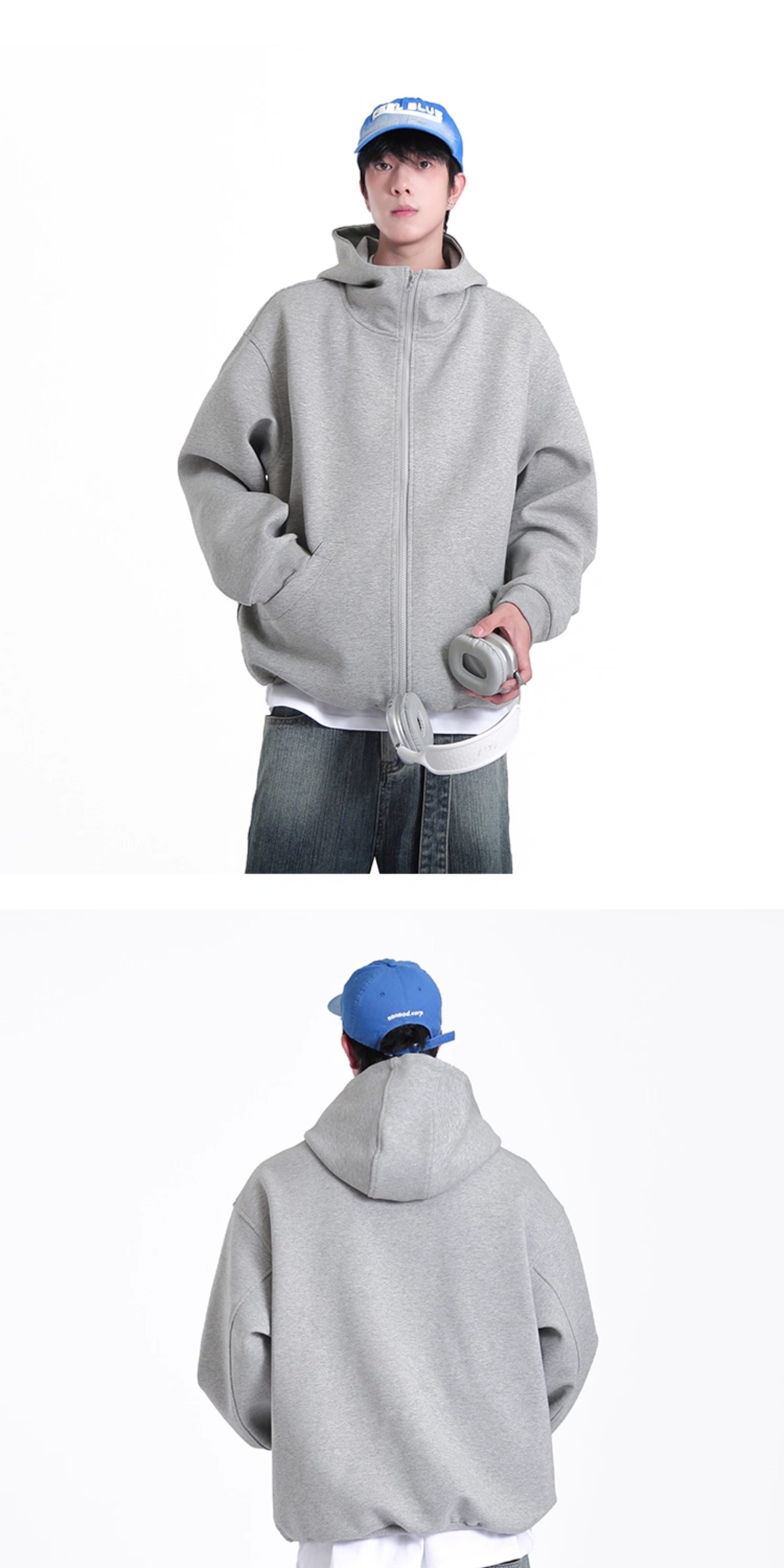 美式重磅復古連帽衛衣男秋冬季2024潮高級感寬鬆boxy加厚帽衫外套