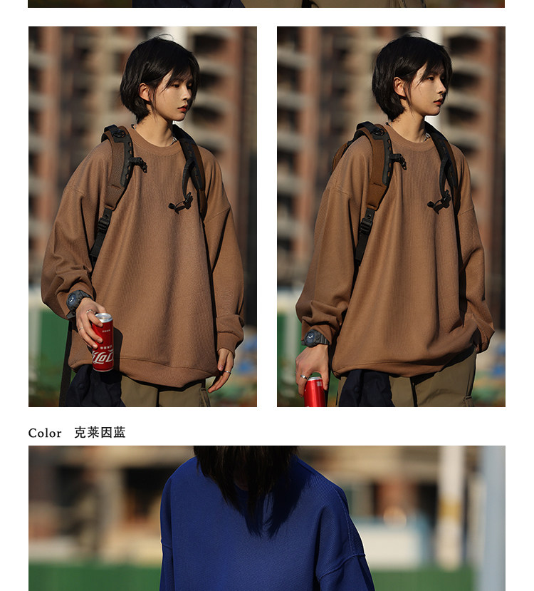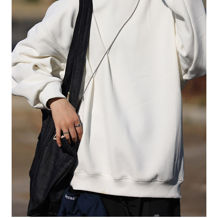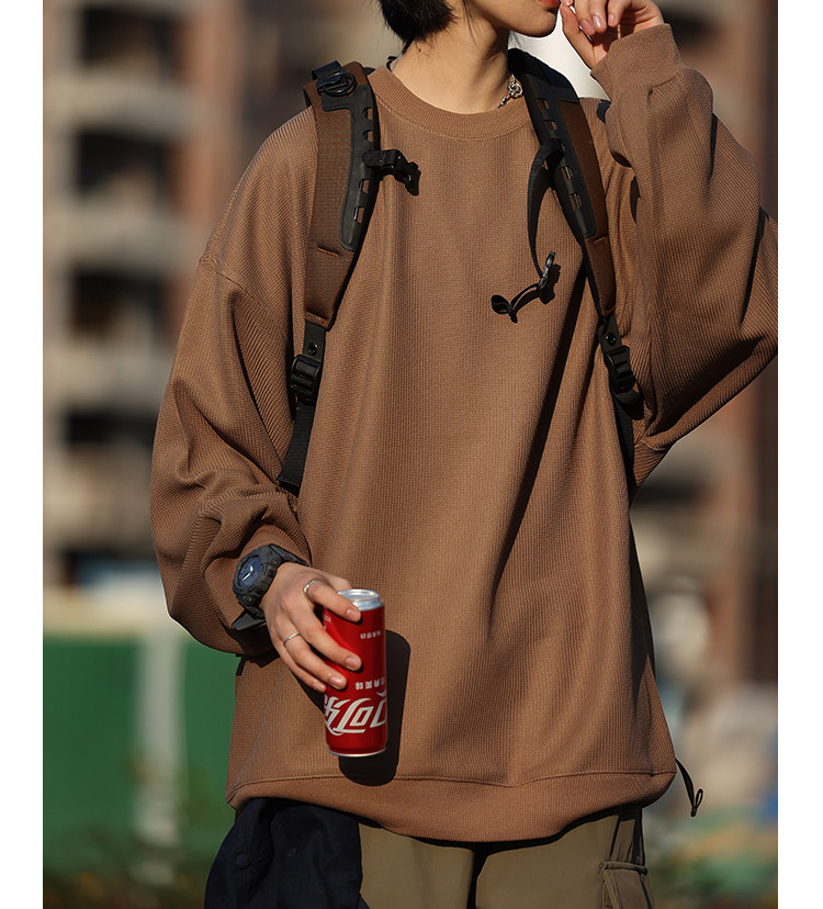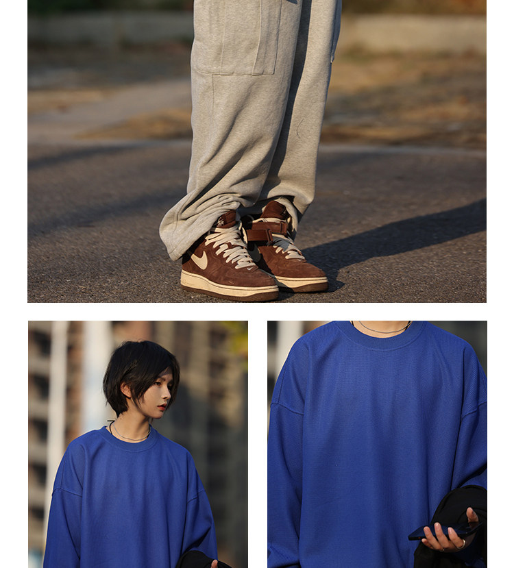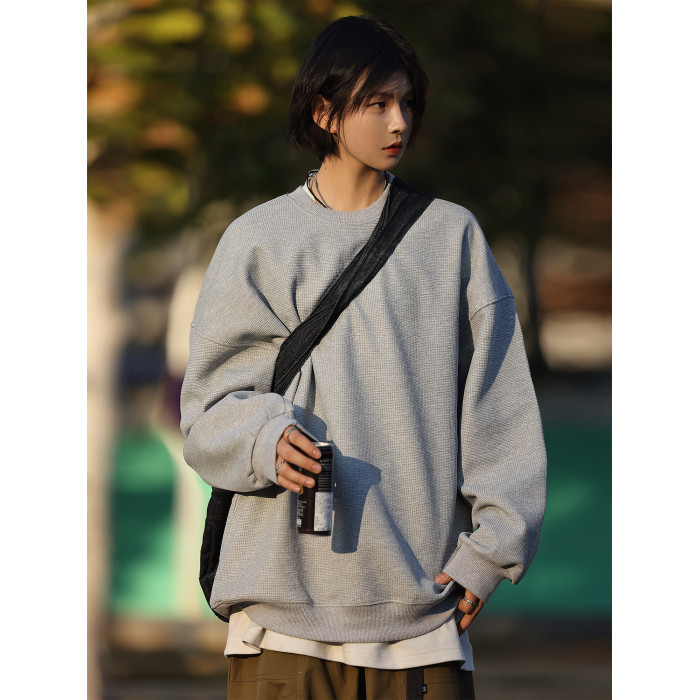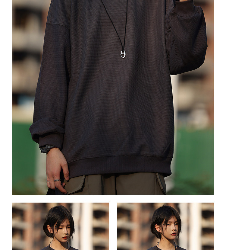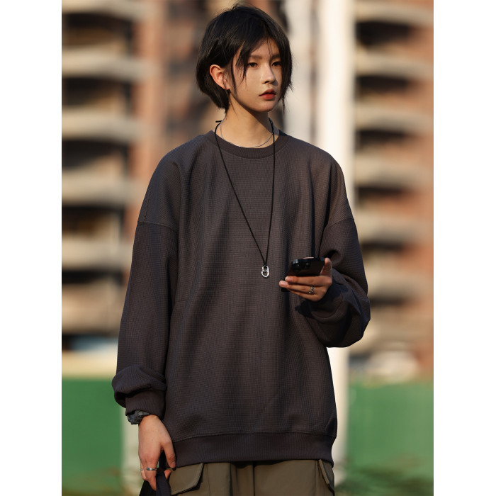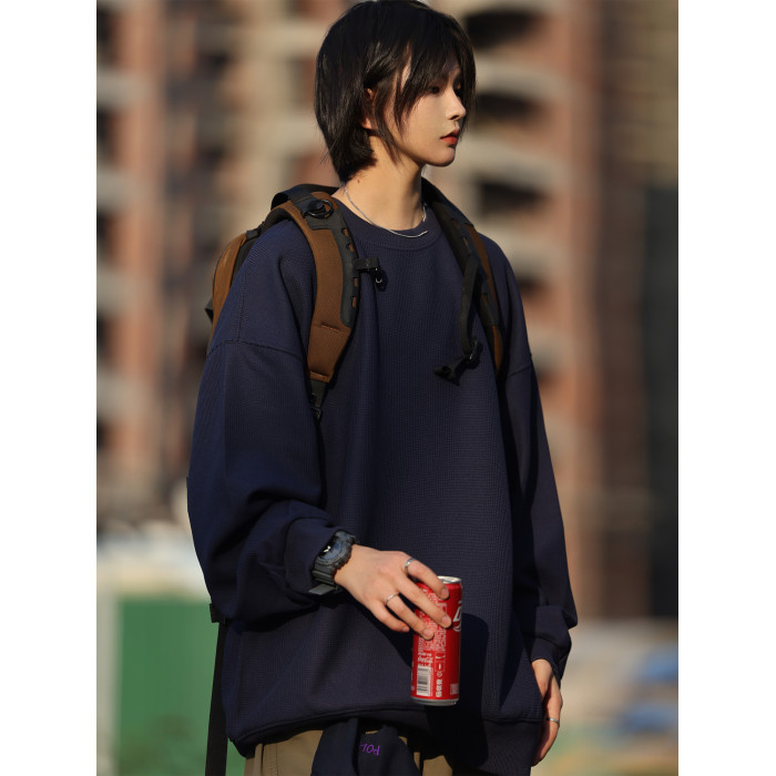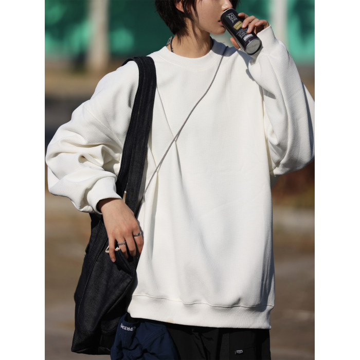 Nobobodyknows春秋重磅潮休閒華夫格衛衣男日系純色長袖女打底T恤