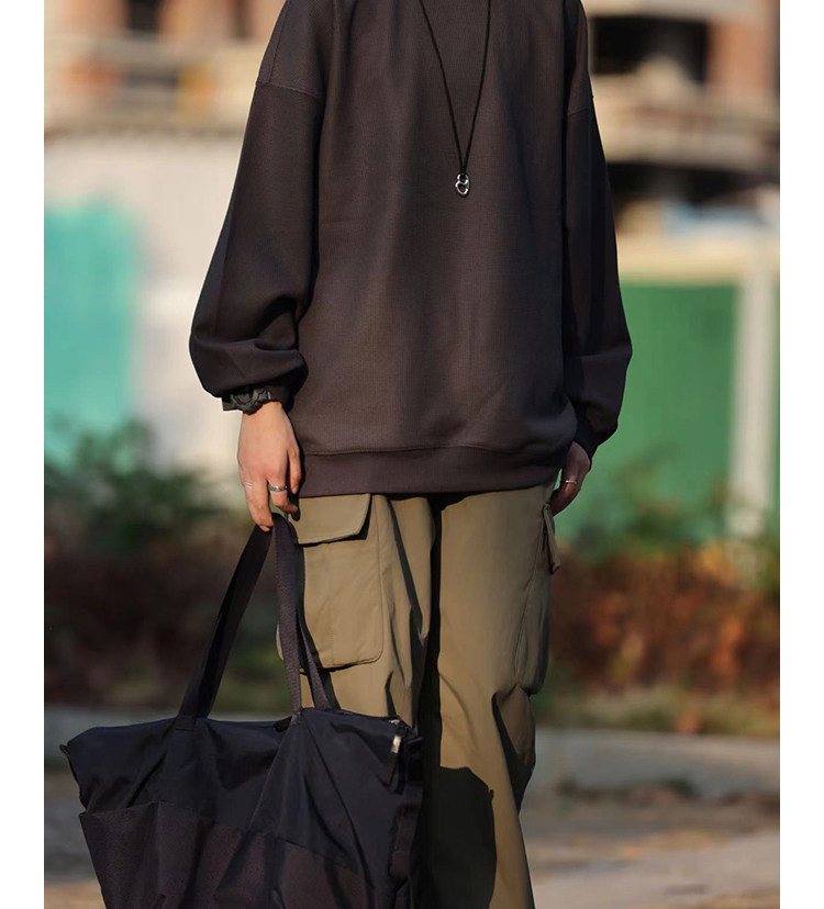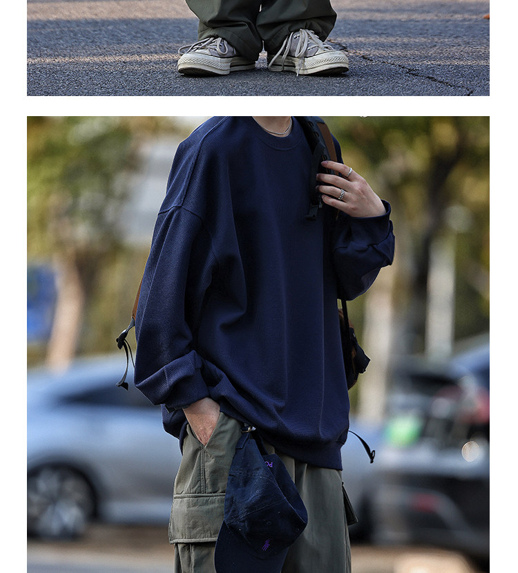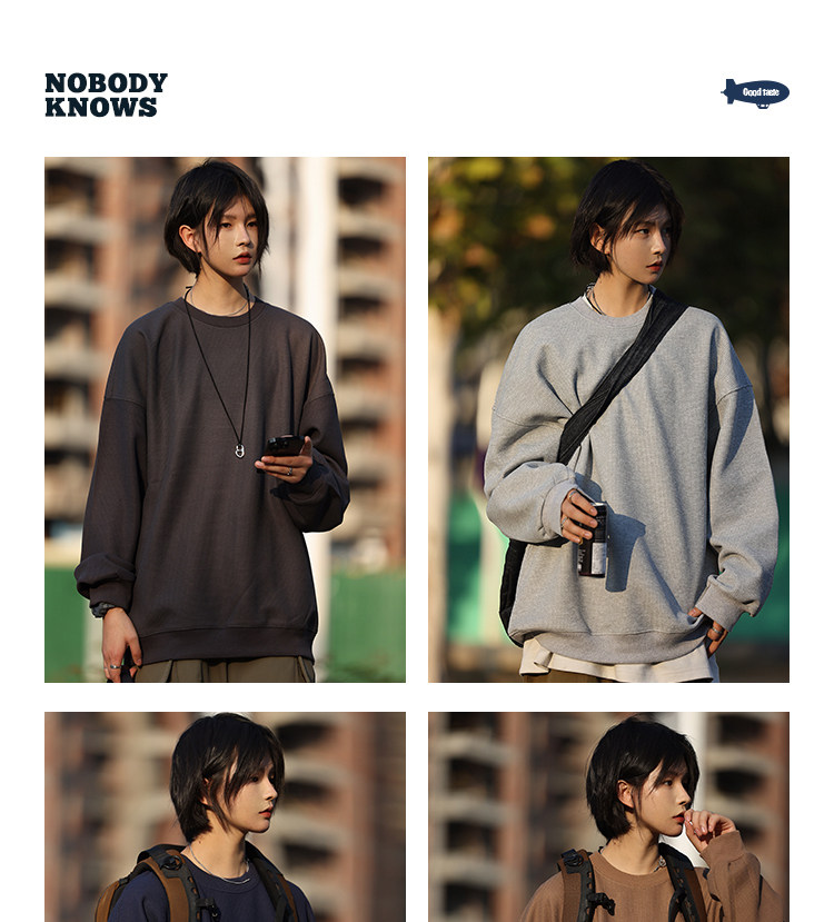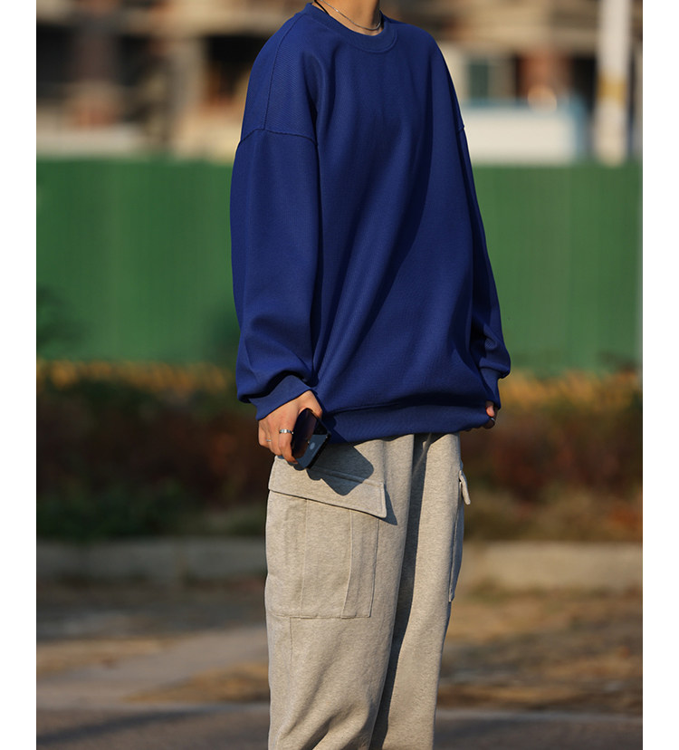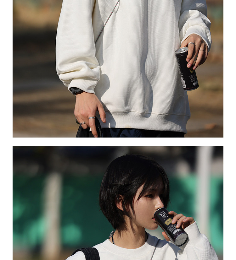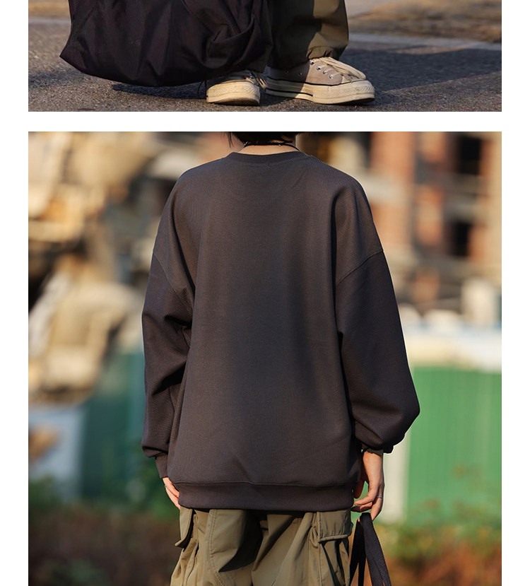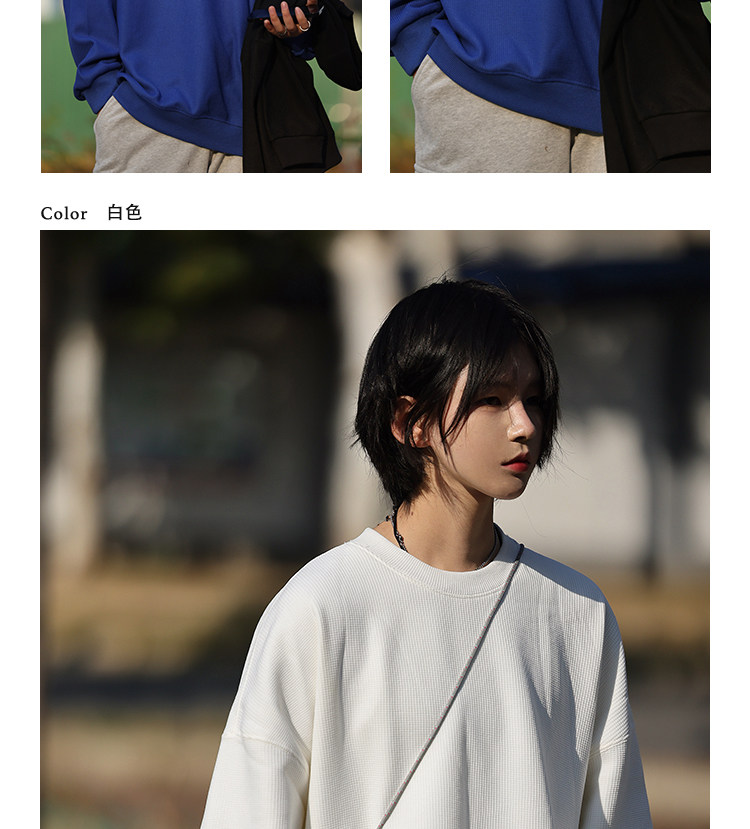 Nobobodyknows春秋重磅潮休閒華夫格衛衣男日系純色長袖女打底T恤
