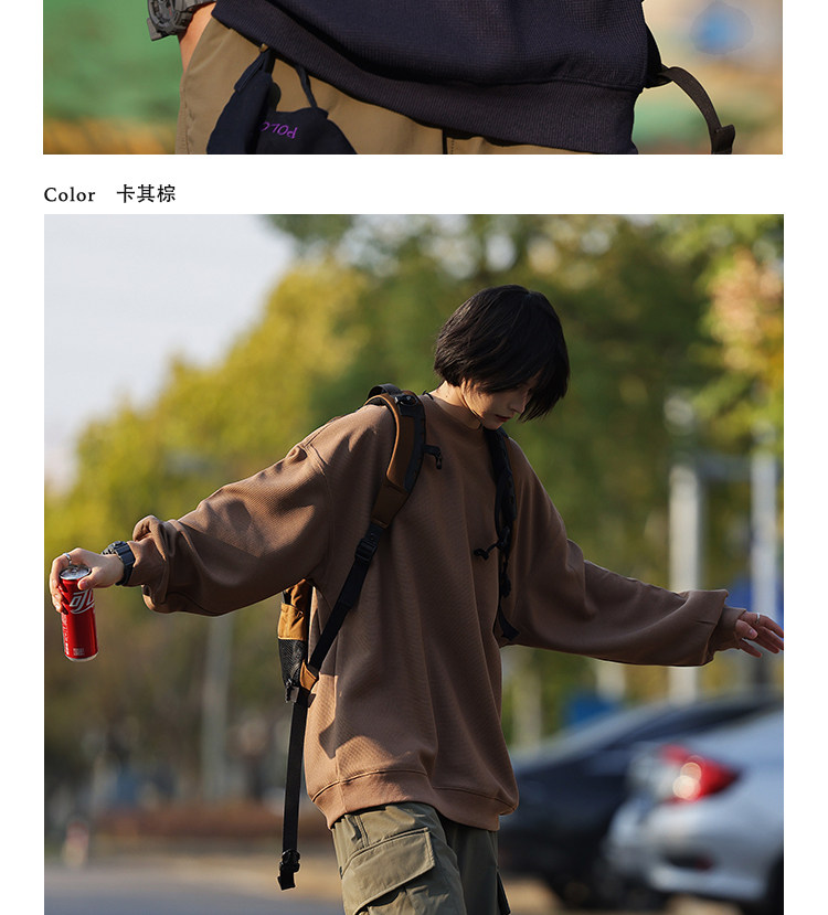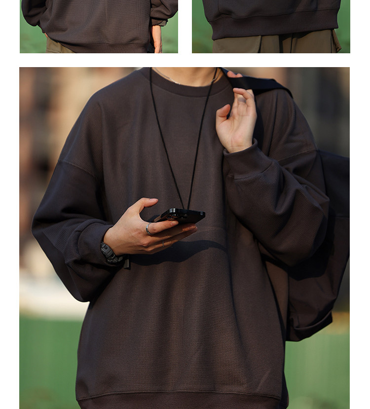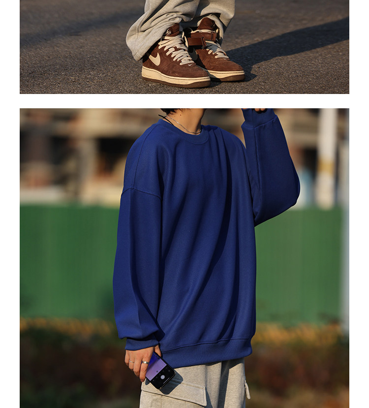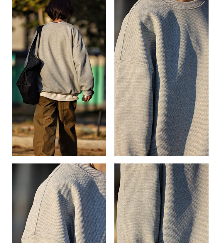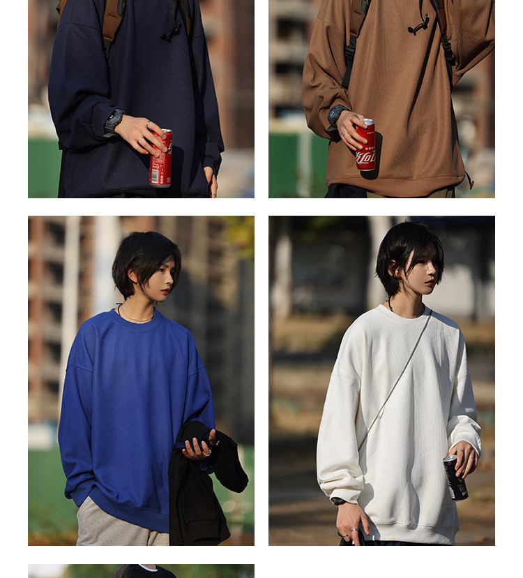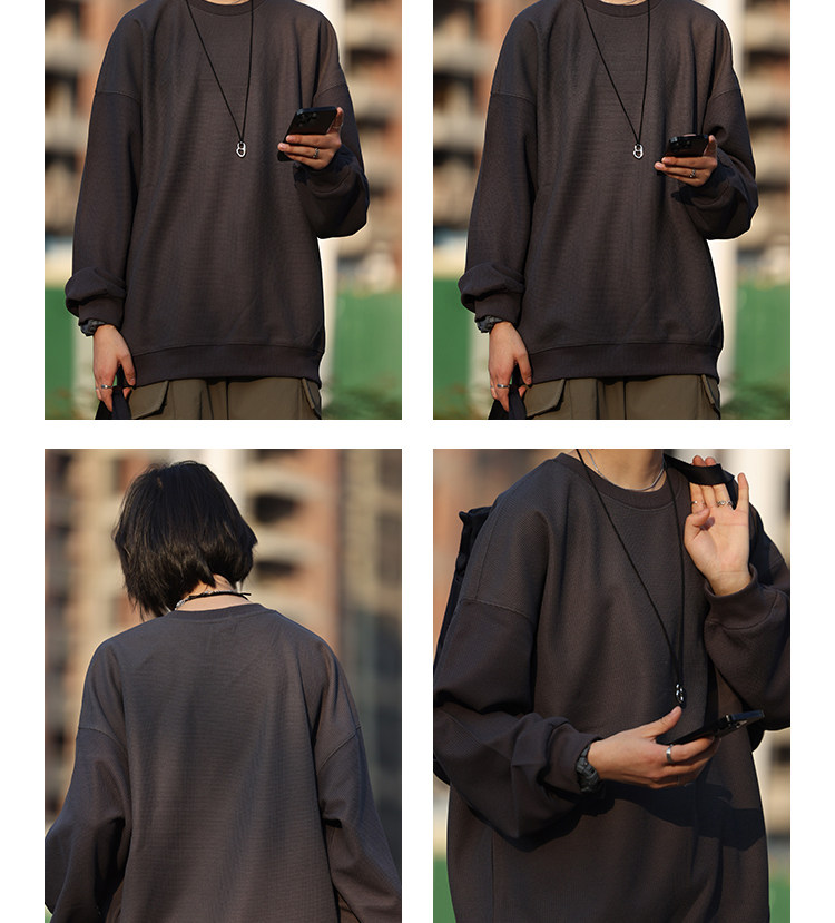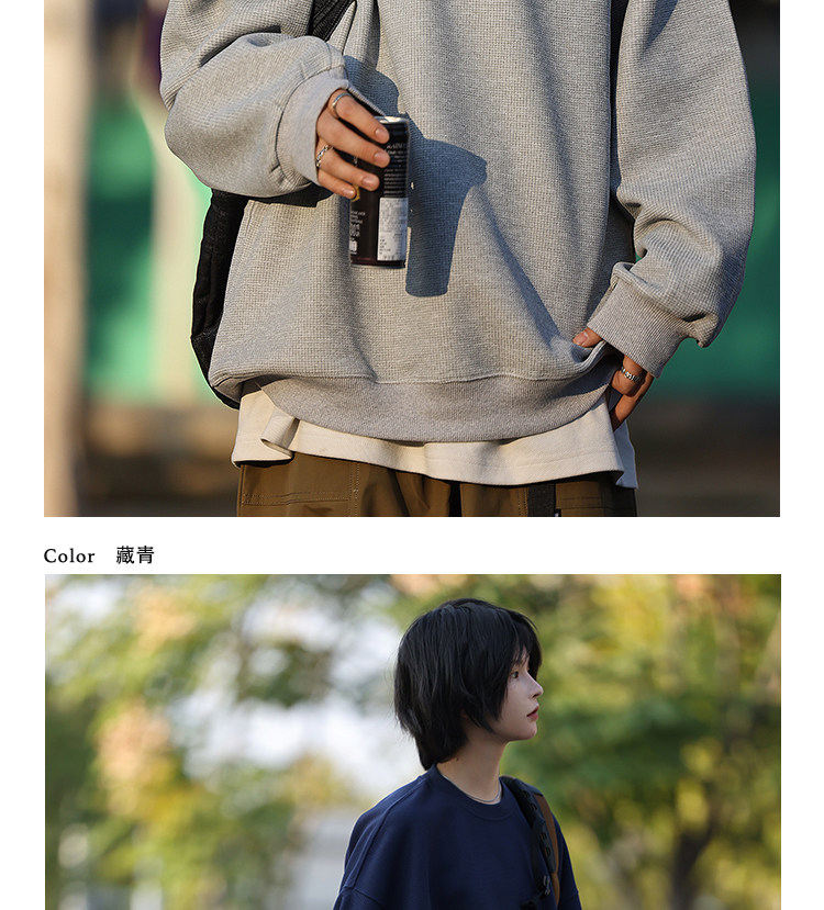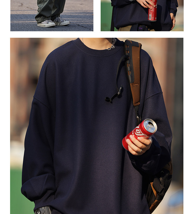 Nobobodyknows春秋重磅潮休閒華夫格衛衣男日系純色長袖女打底T恤