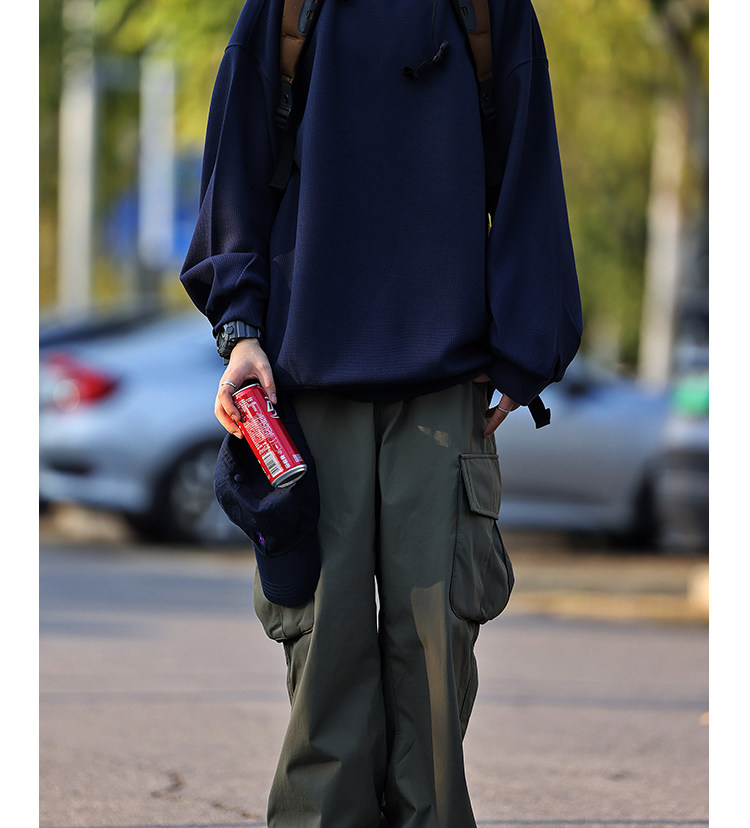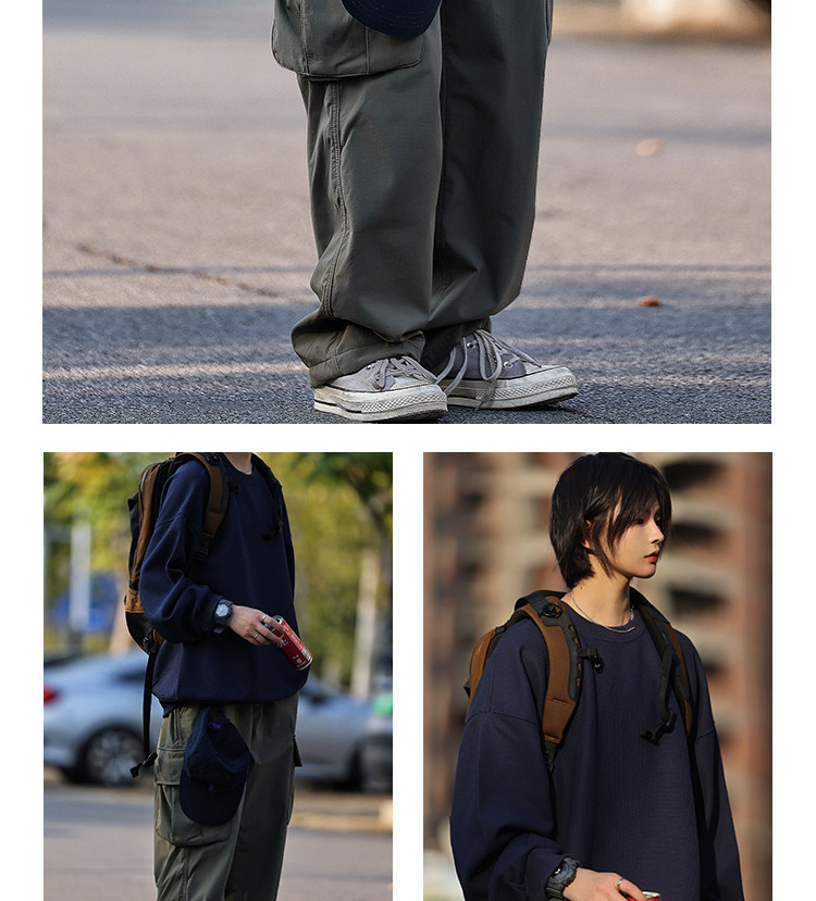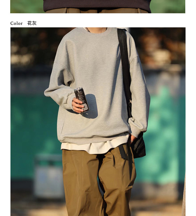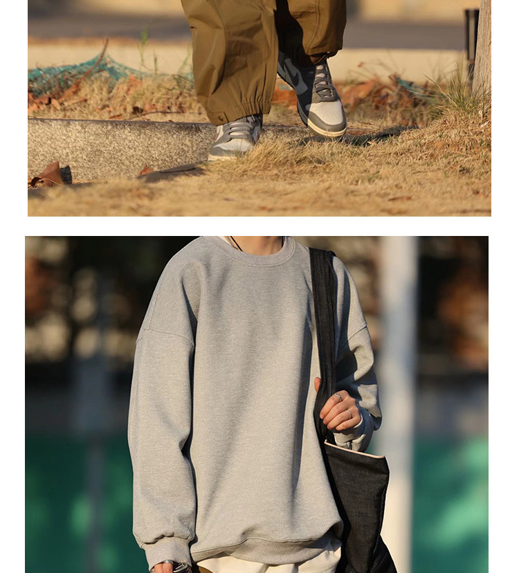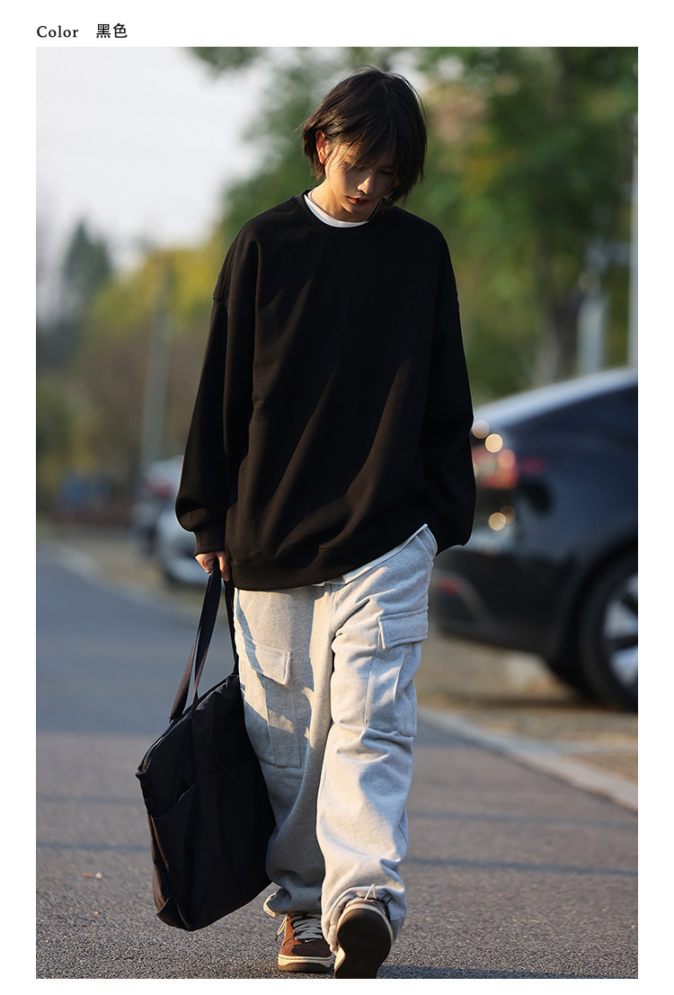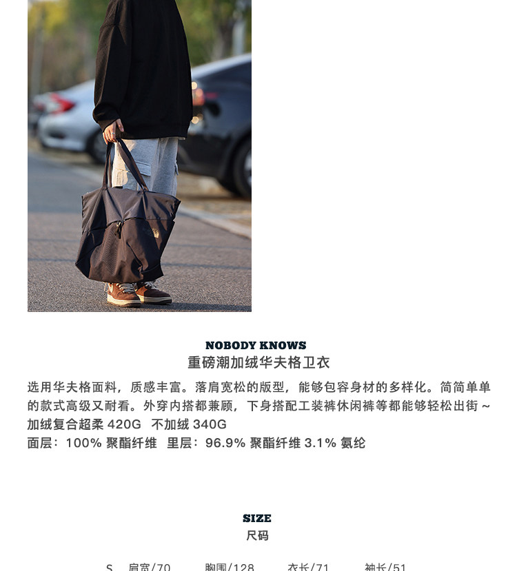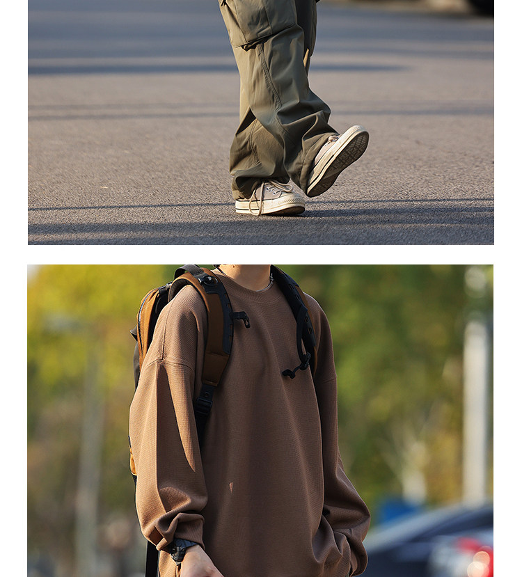 Nobobodyknows春秋重磅潮休閒華夫格衛衣男日系純色長袖女打底T恤