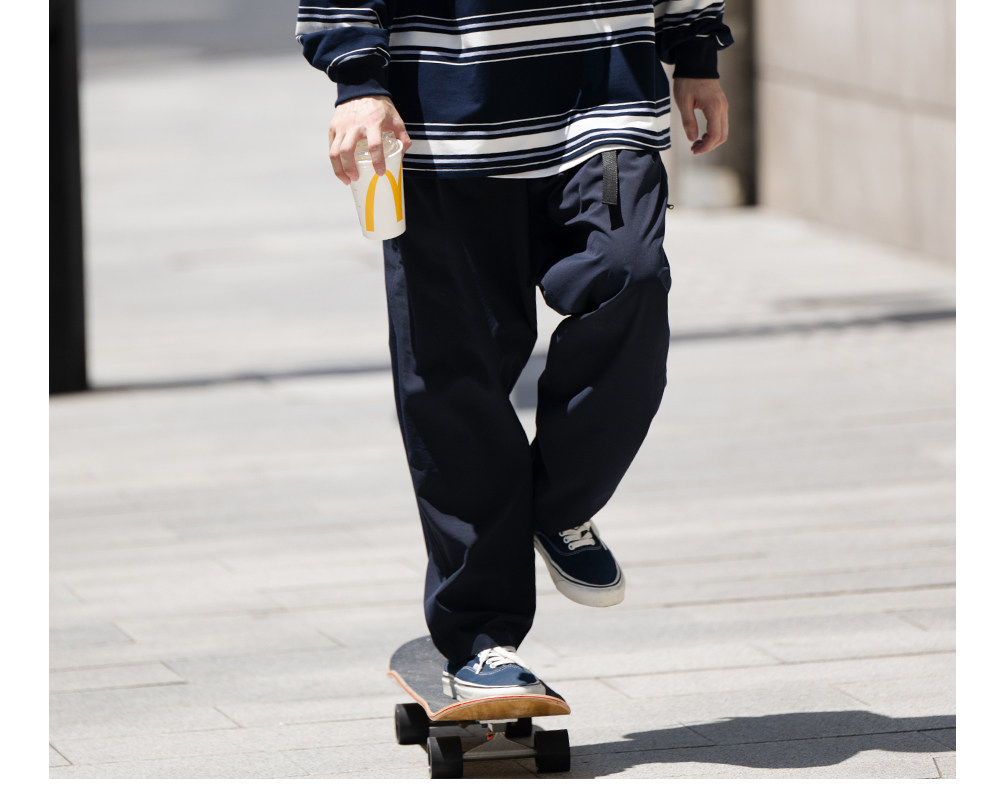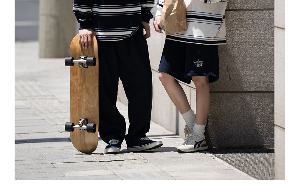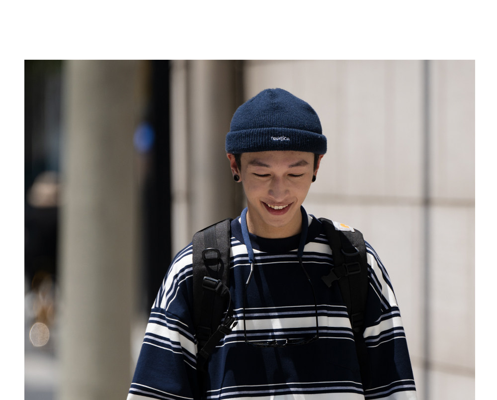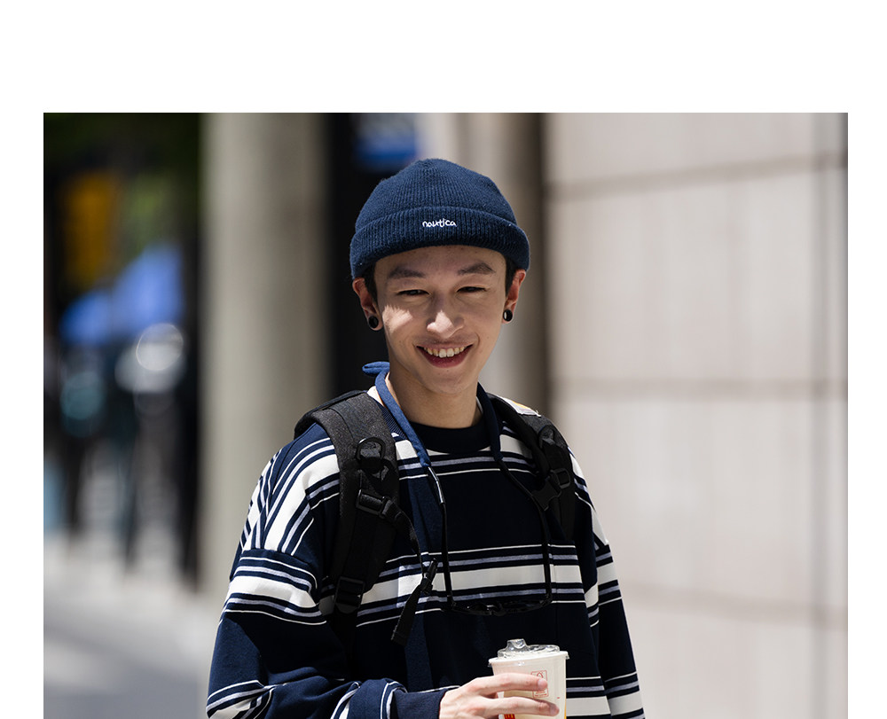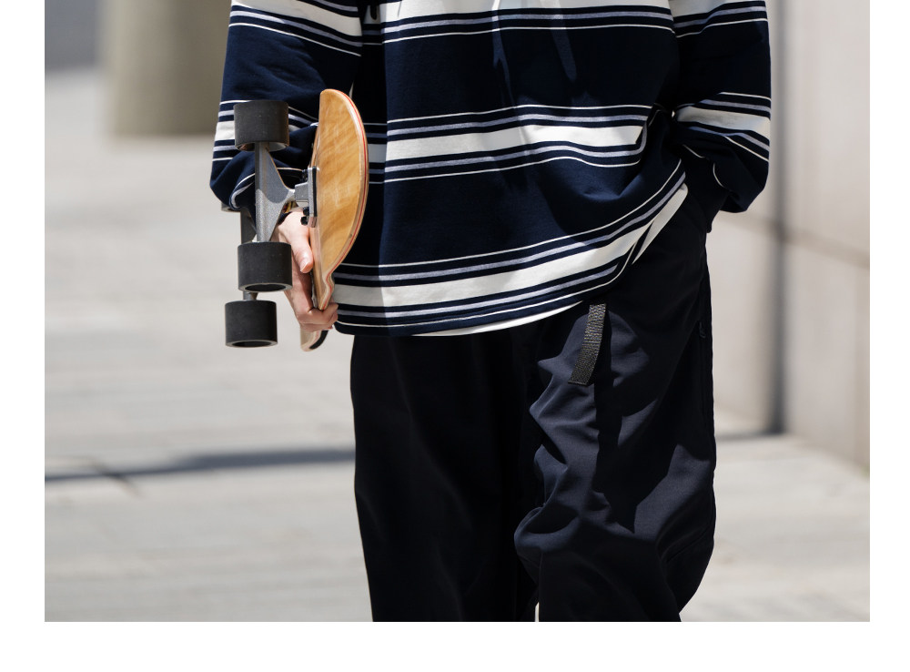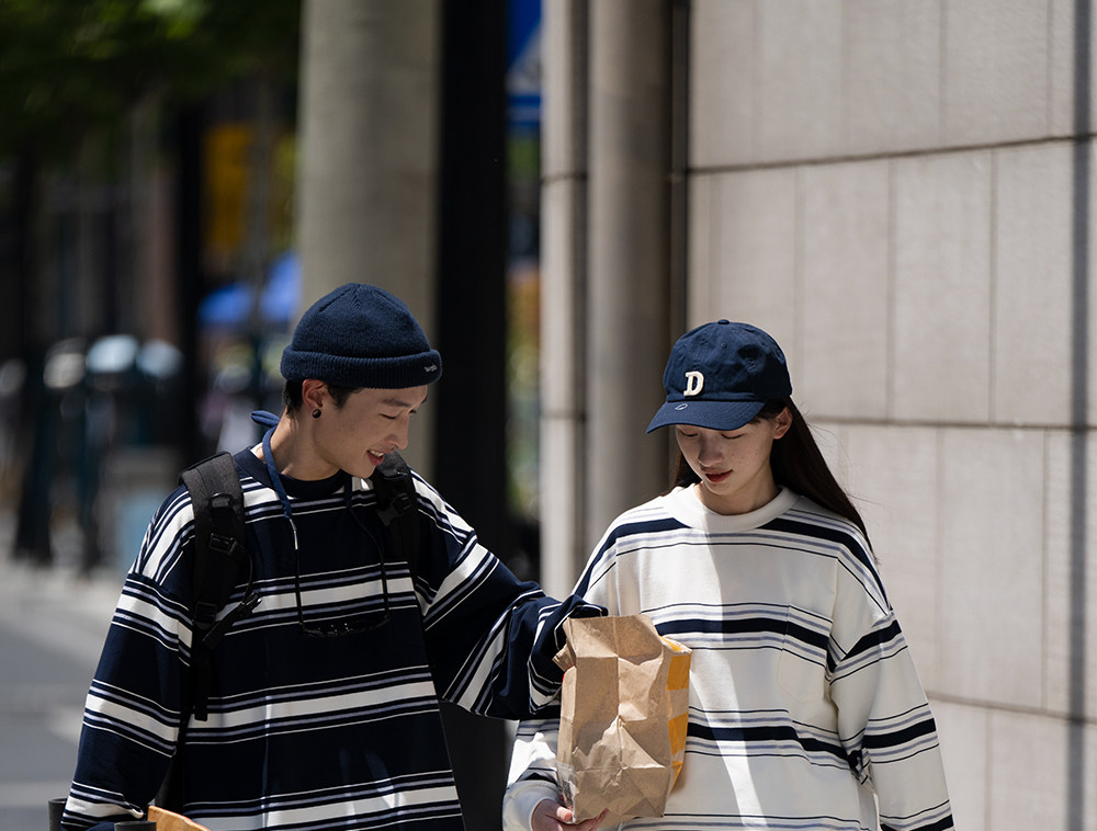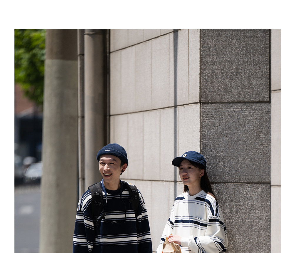 Bellken22AW復古日系藏青休閒條紋長袖T恤男女流行寬松廓形情侶衫