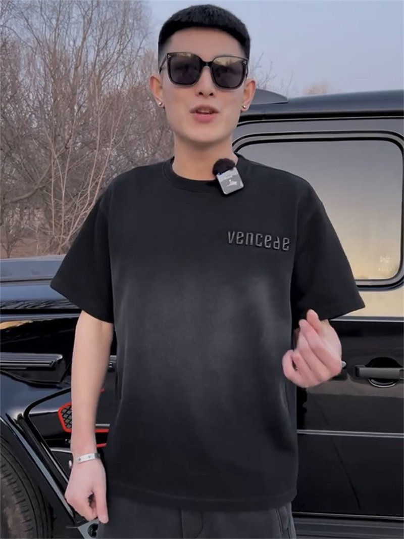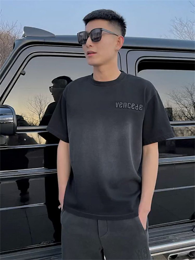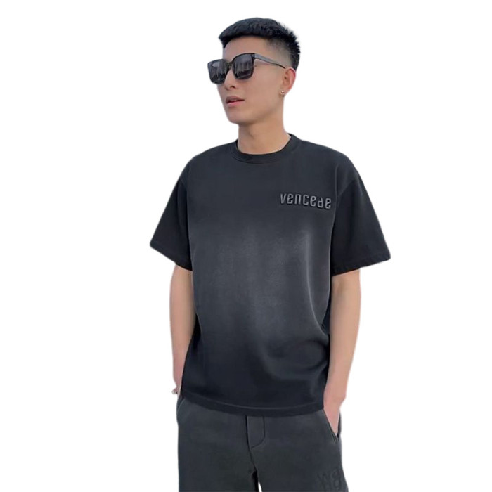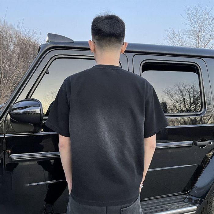 網紅同款小衫夏季漸變做舊純棉短袖t恤男半截袖潮流百搭情侶短袖t
