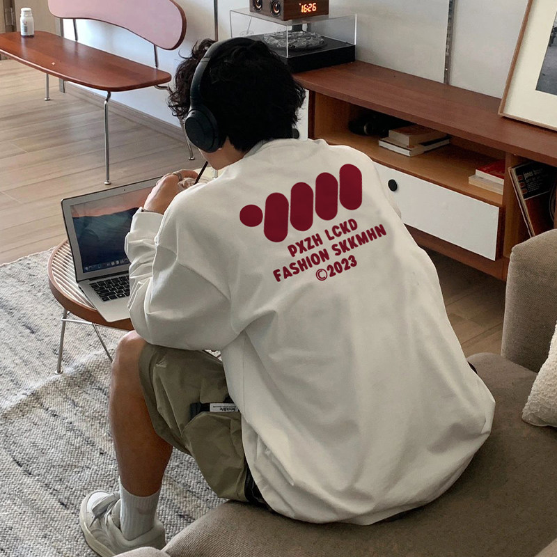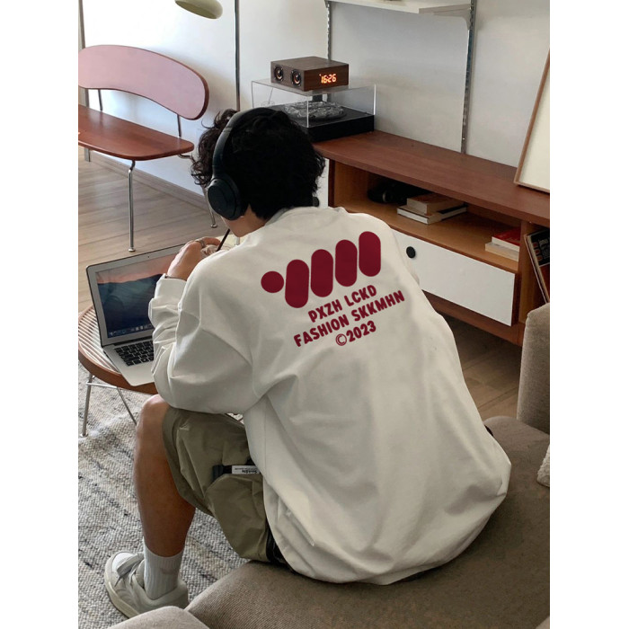歐美式休閒風純棉長袖t恤男260g秋冬重磅圓領寬松上衣情侶ins潮牌