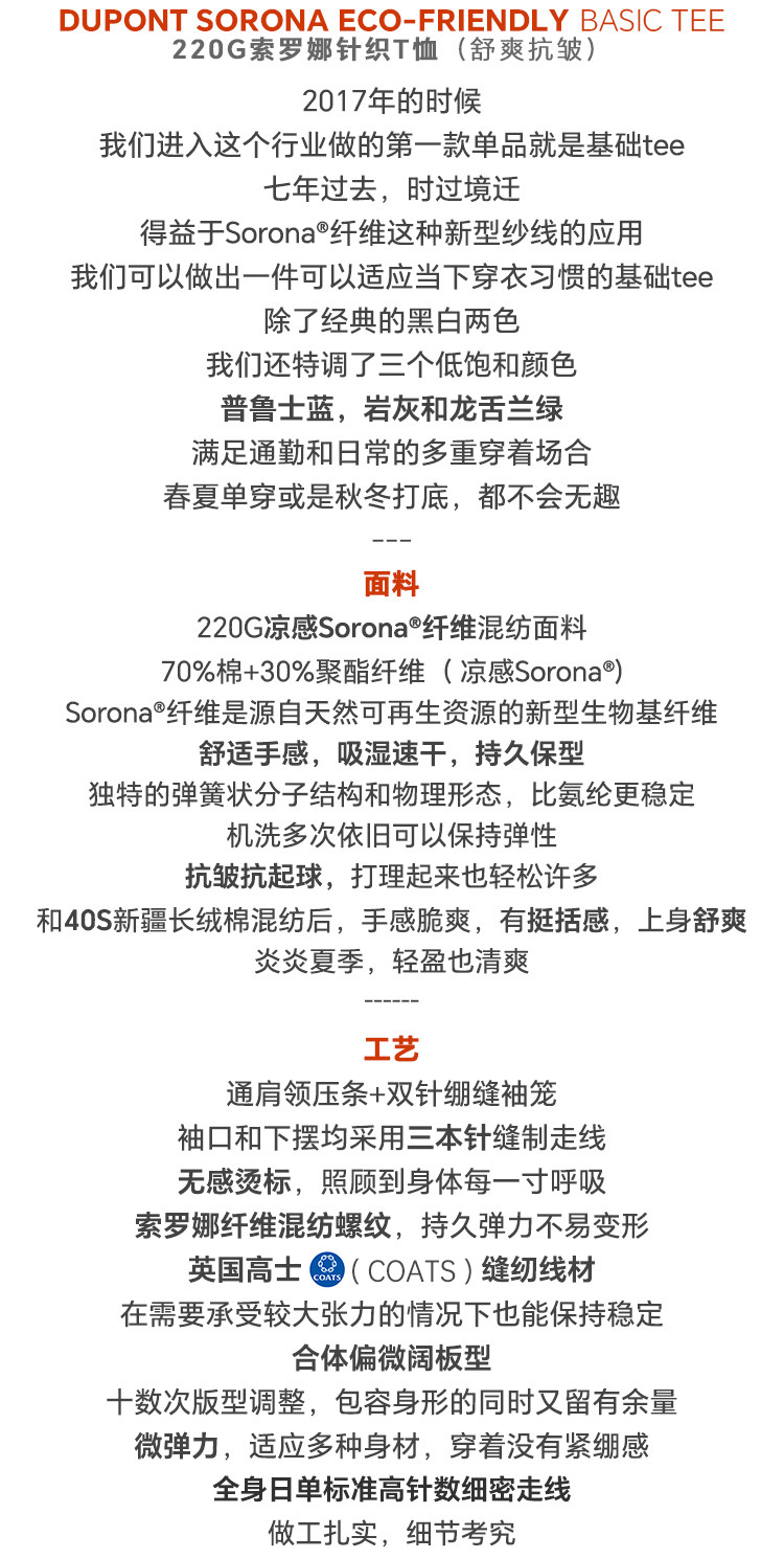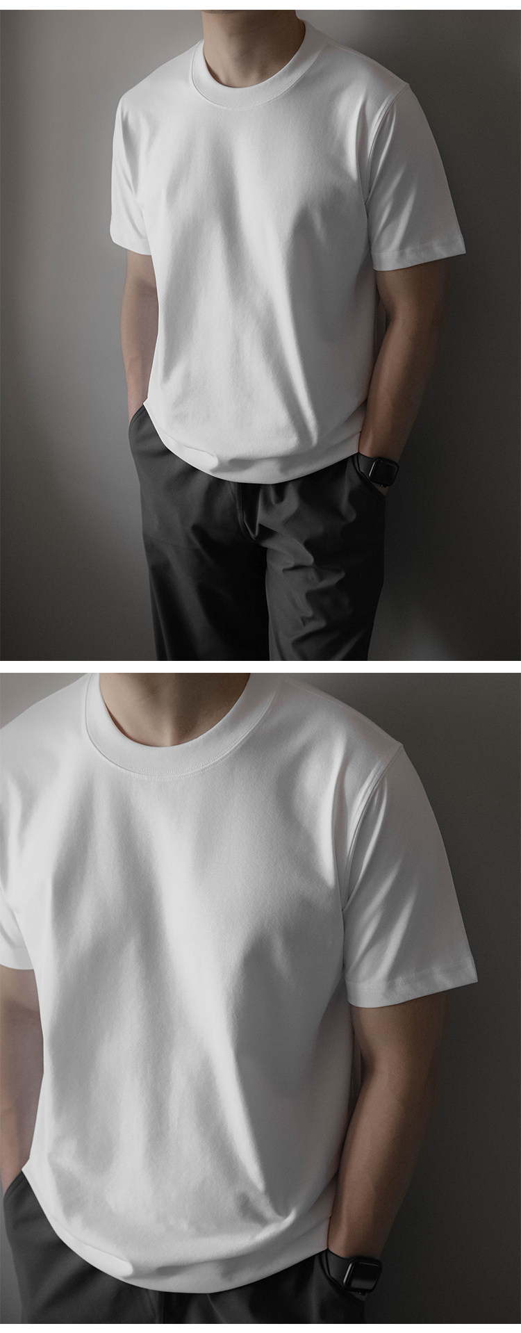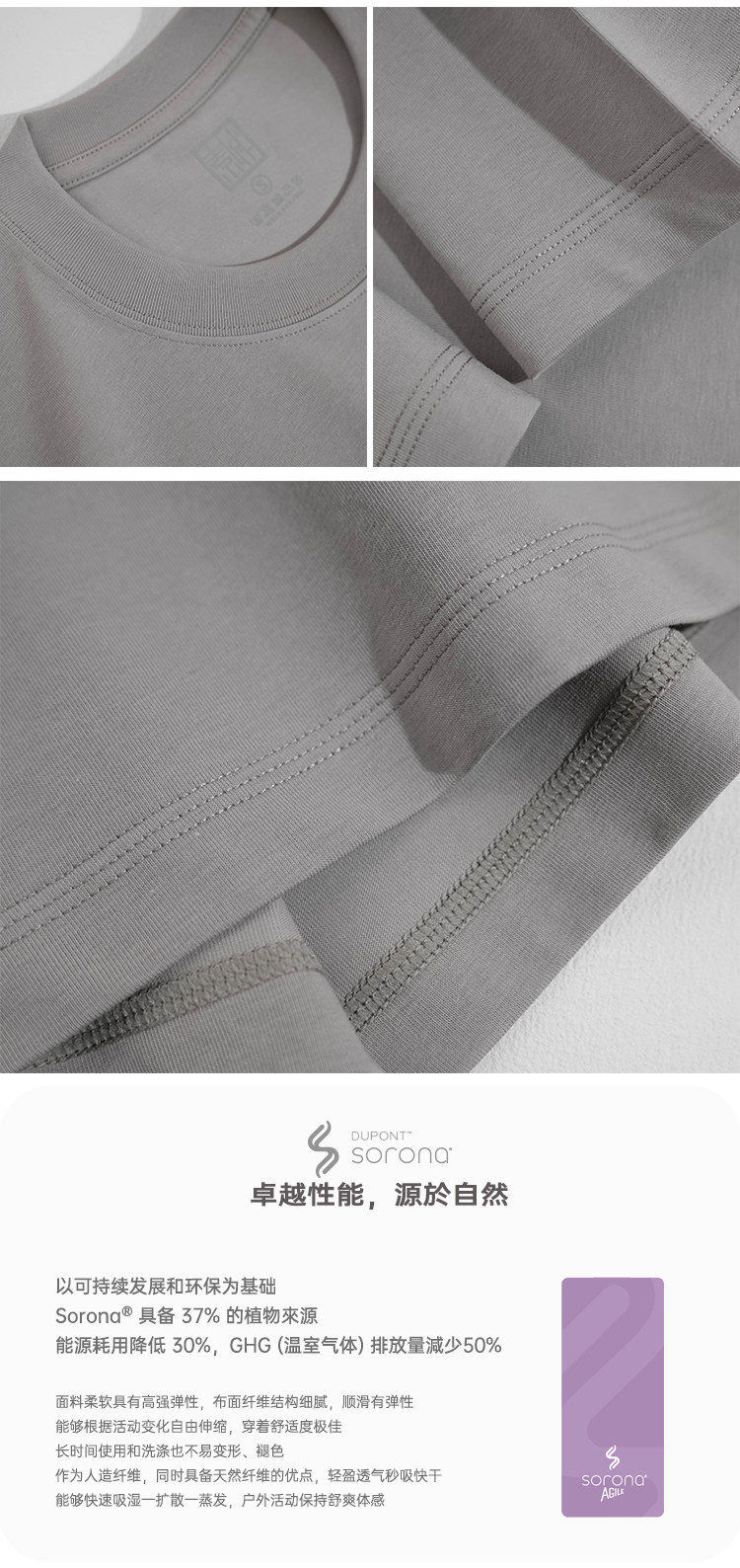 220G索羅娜SORONA科技混紡棉速乾男士休閒打底純色短袖T恤白夏季