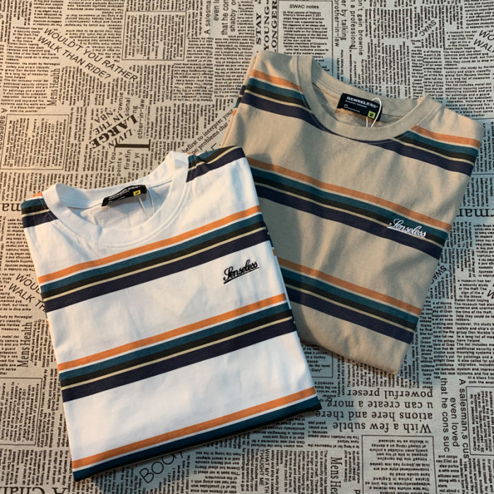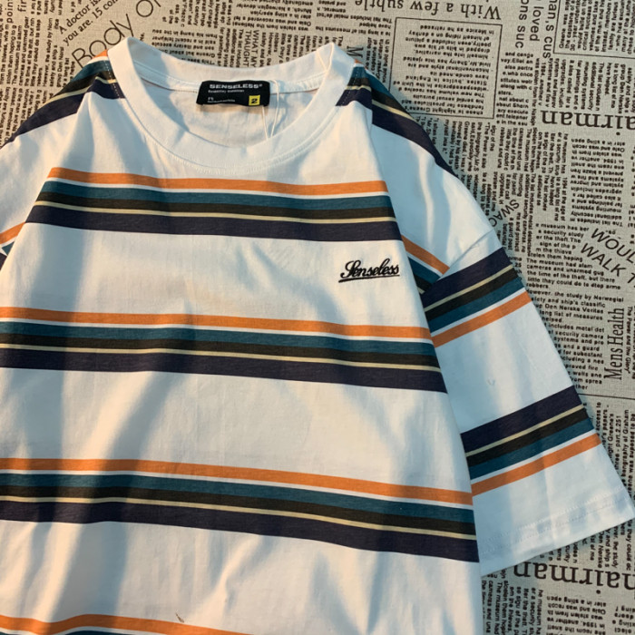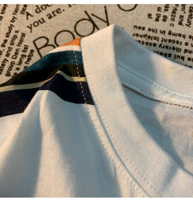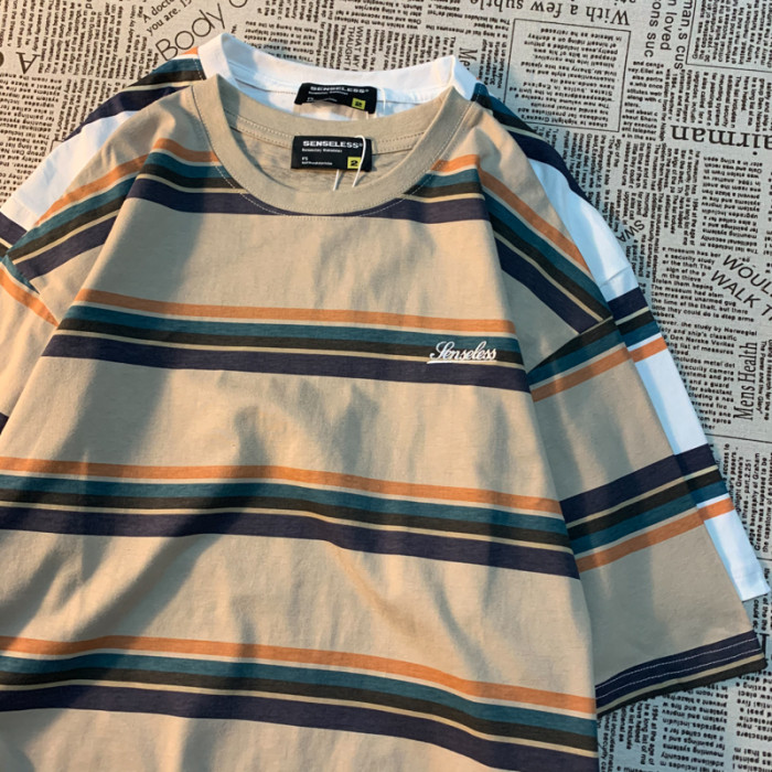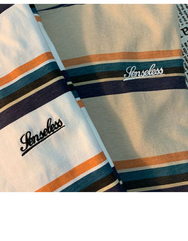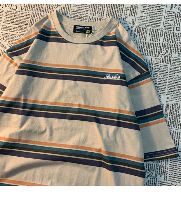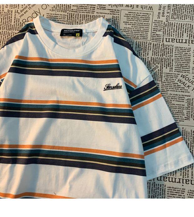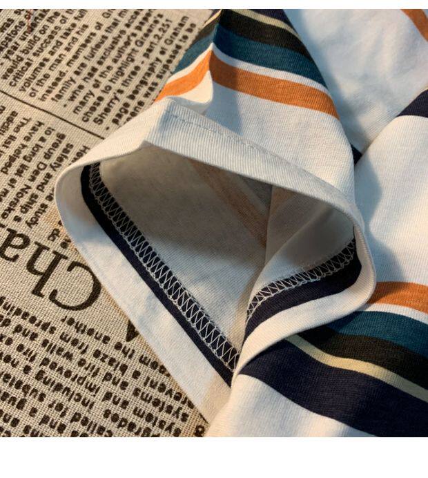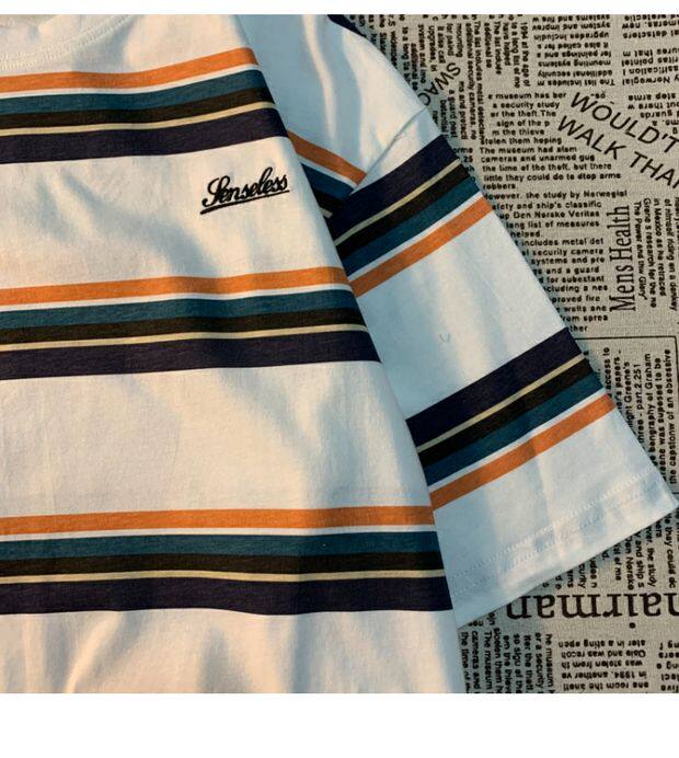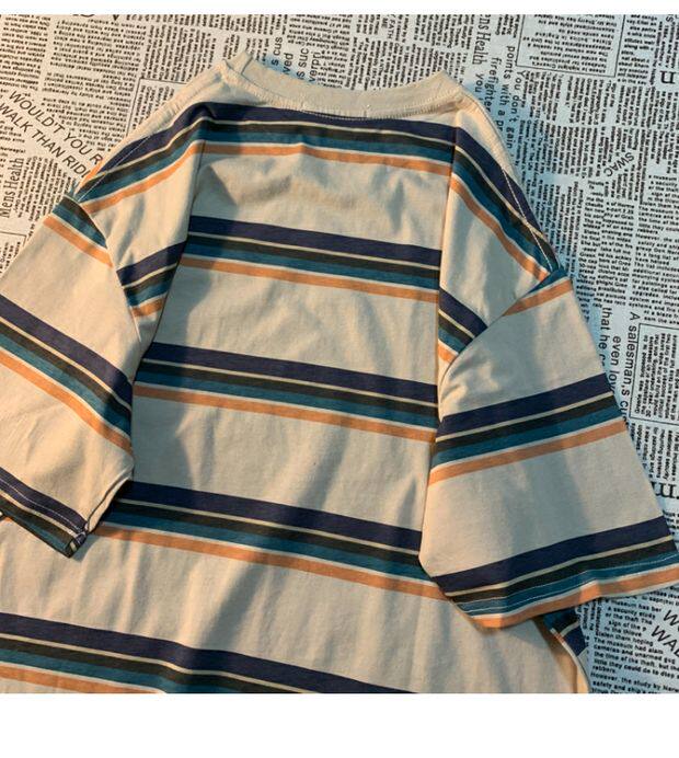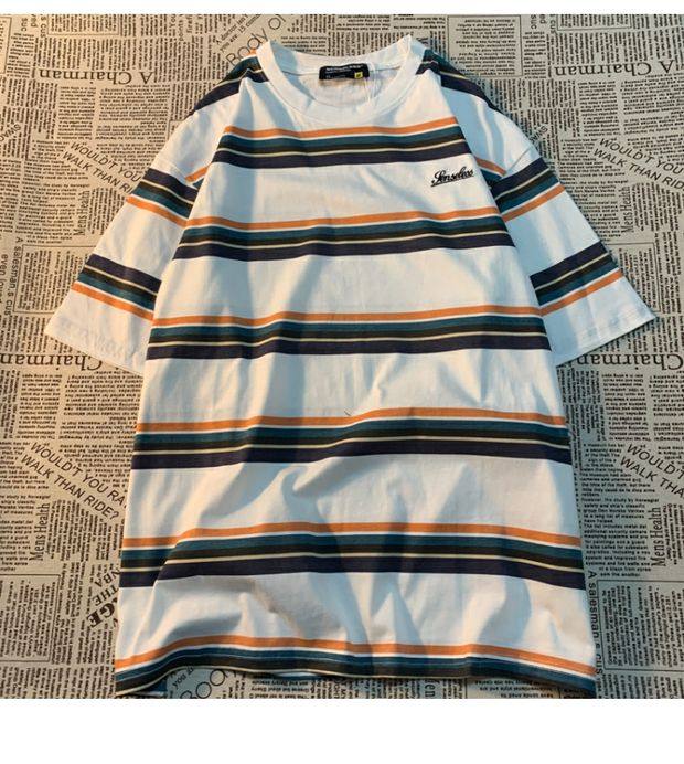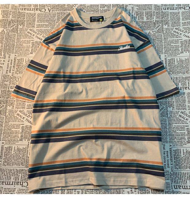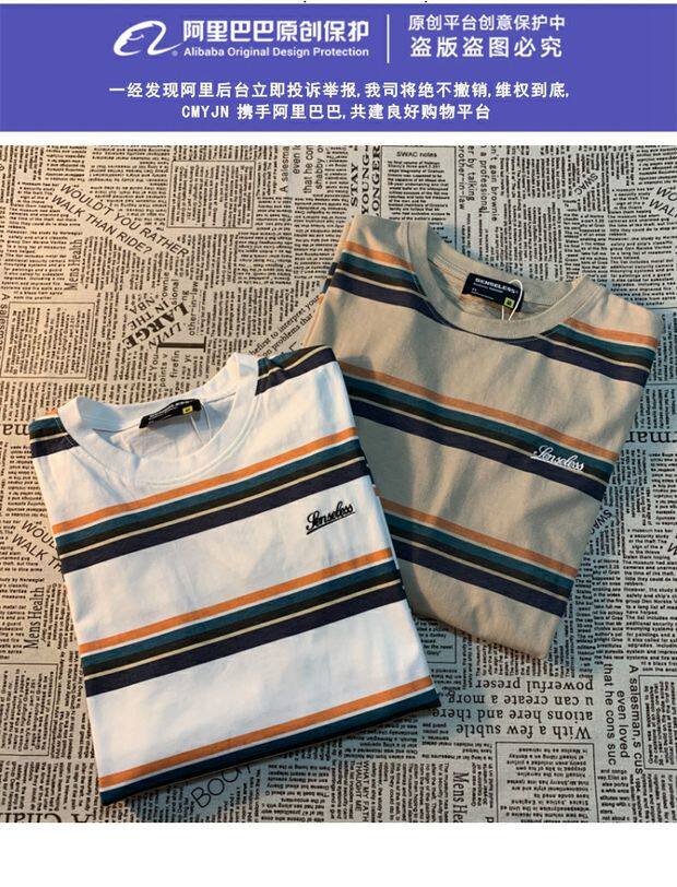 Cmyjn原創 日系復古潮牌條紋短袖t恤男女情侶寬松bf風百搭半袖tee