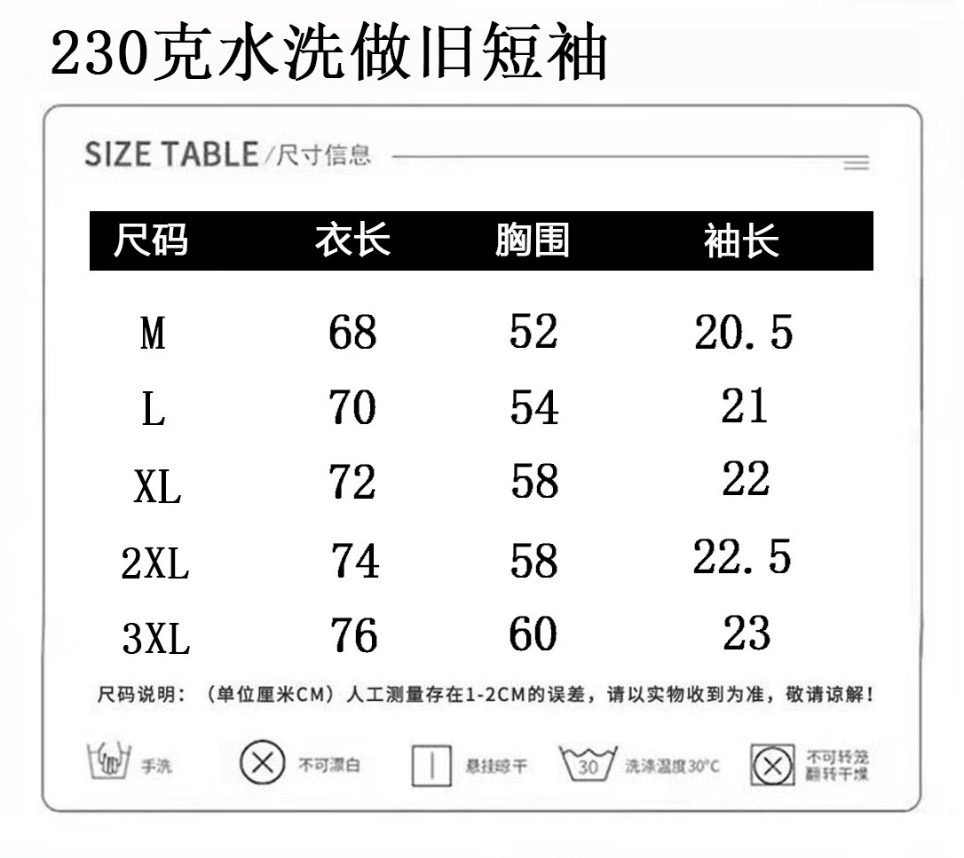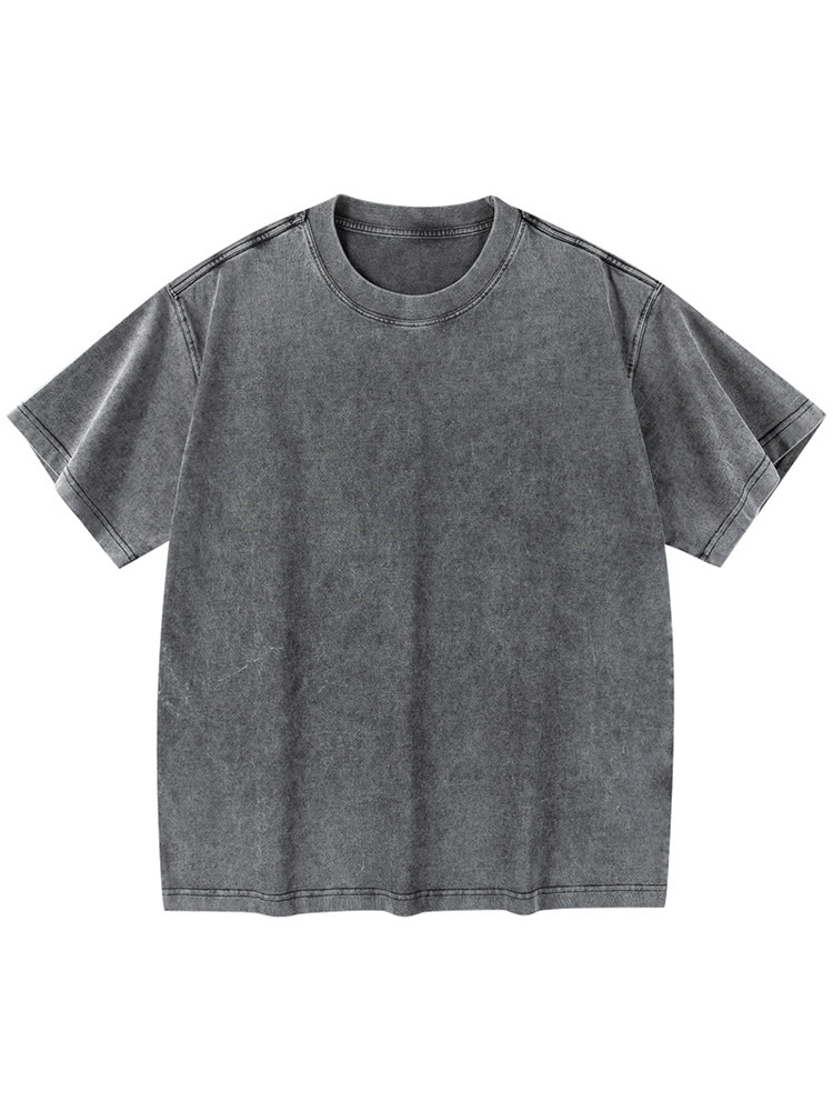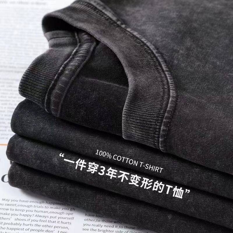 230克純棉重磅水洗男短袖t恤夏季復古做舊情侶裝上衣ins半袖體恤