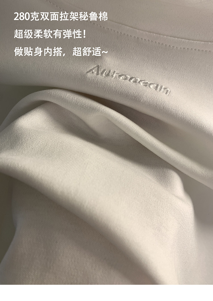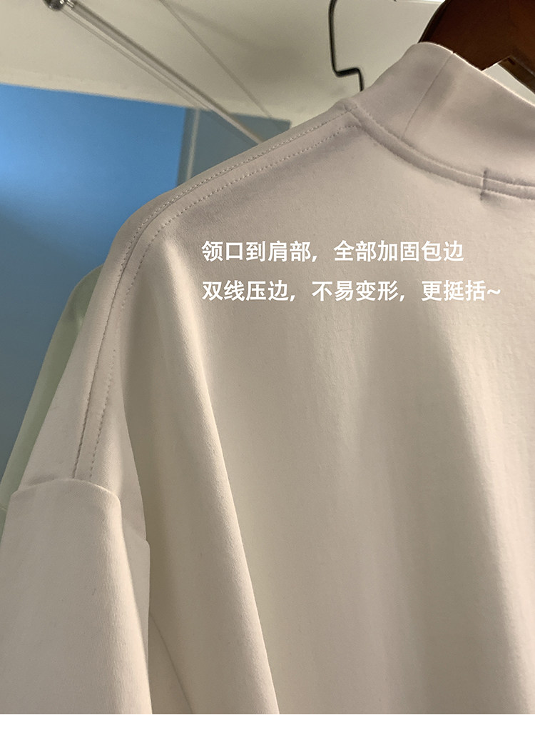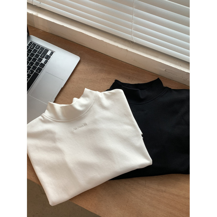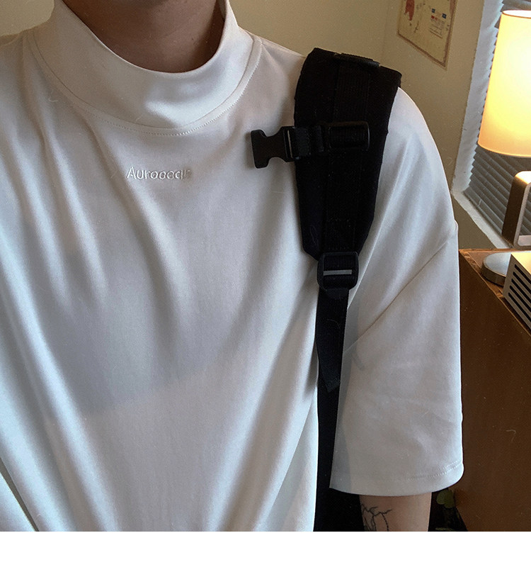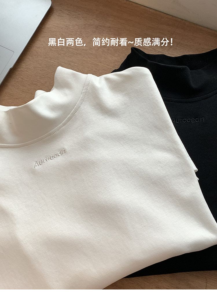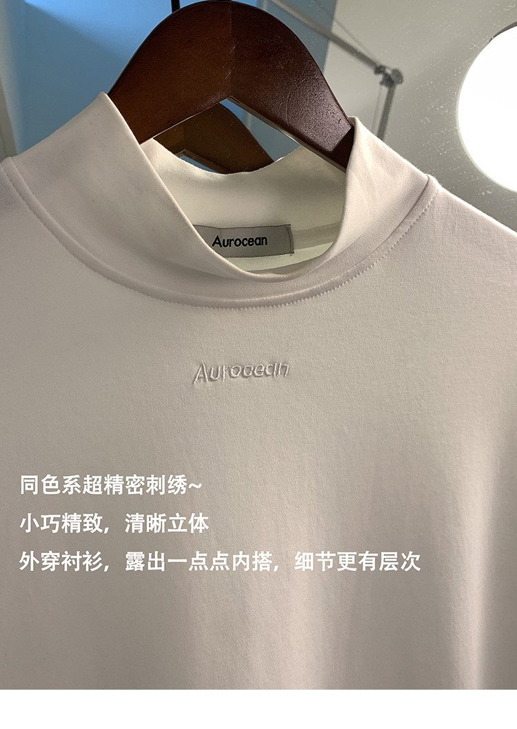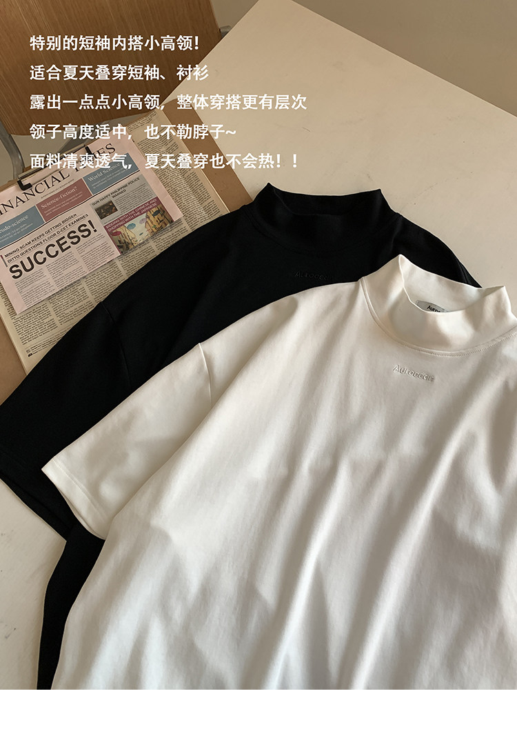 Aurocean 內搭小高領短袖 夏季黑白寬松基礎款字母刺綉T恤