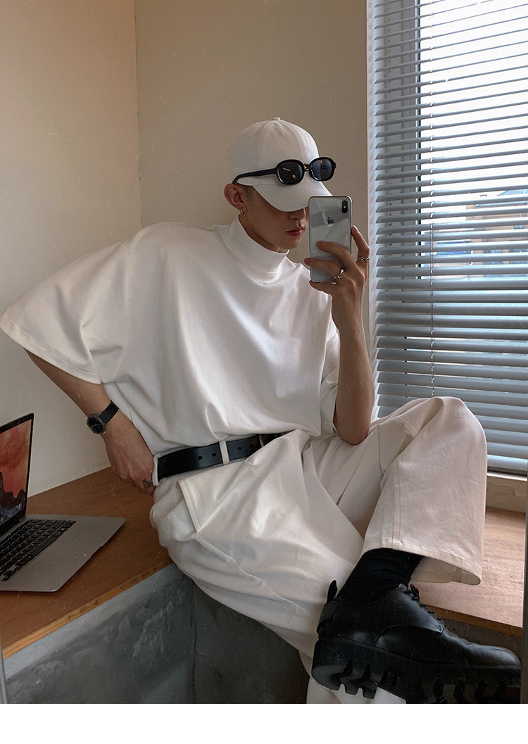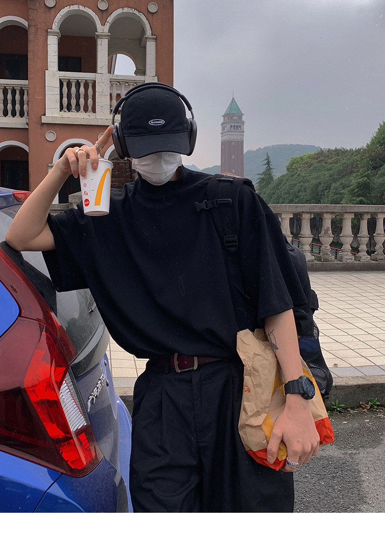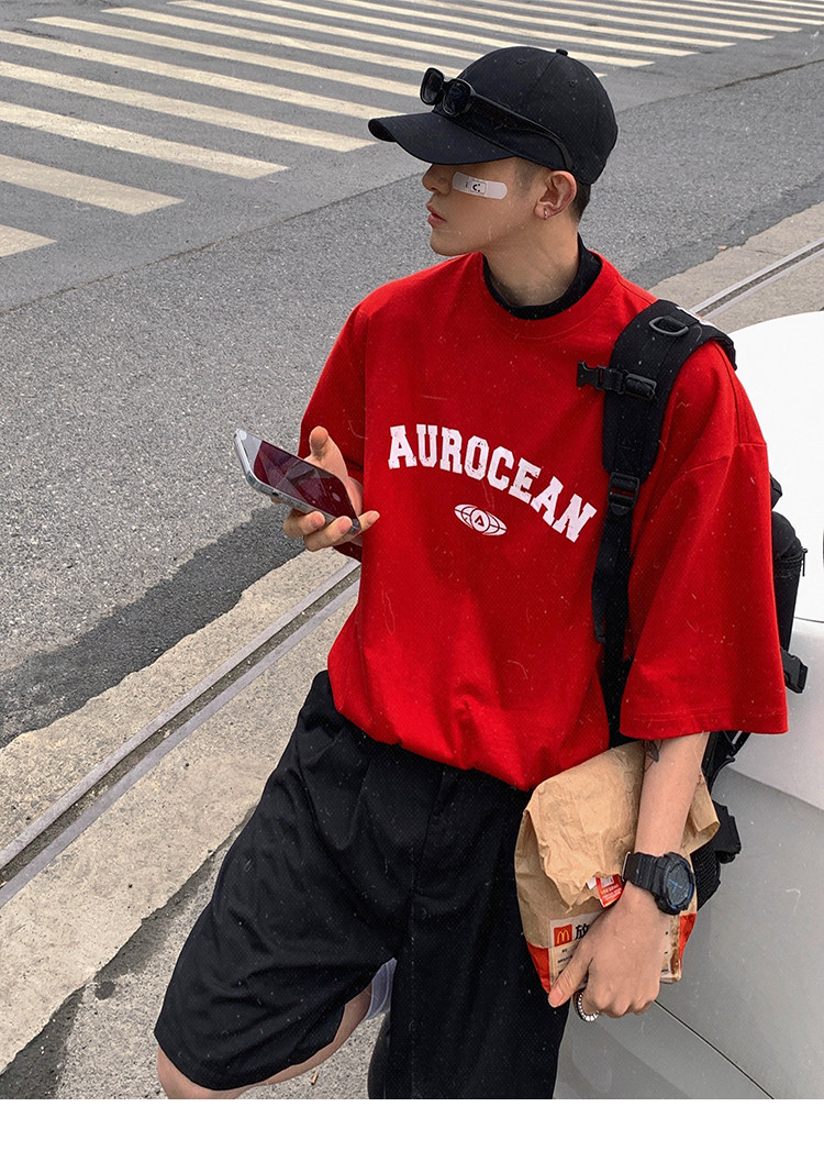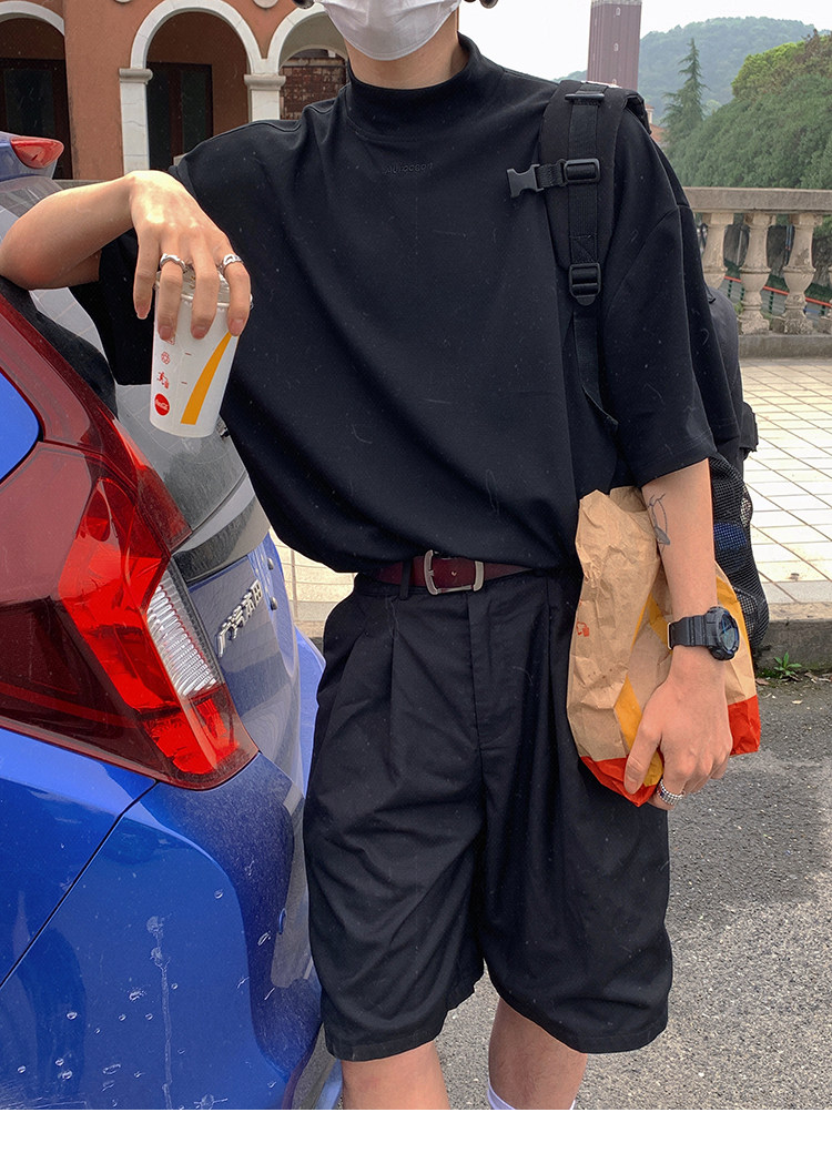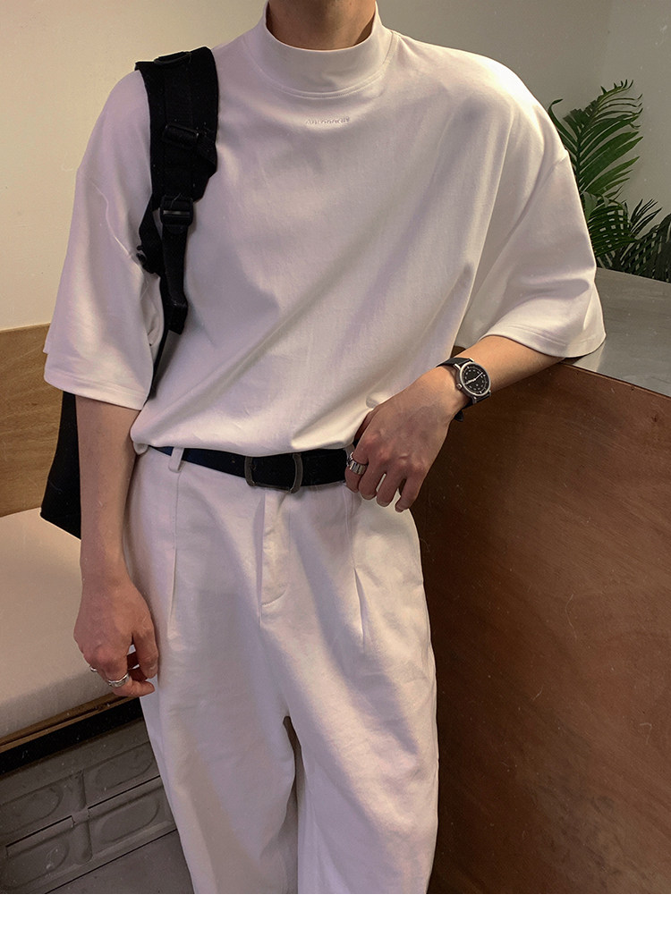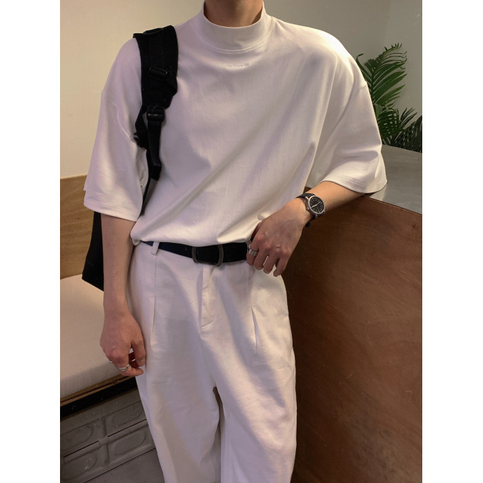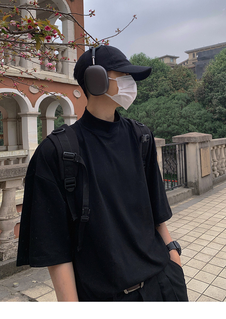 Aurocean 內搭小高領短袖 夏季黑白寬松基礎款字母刺綉T恤