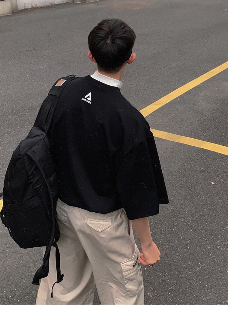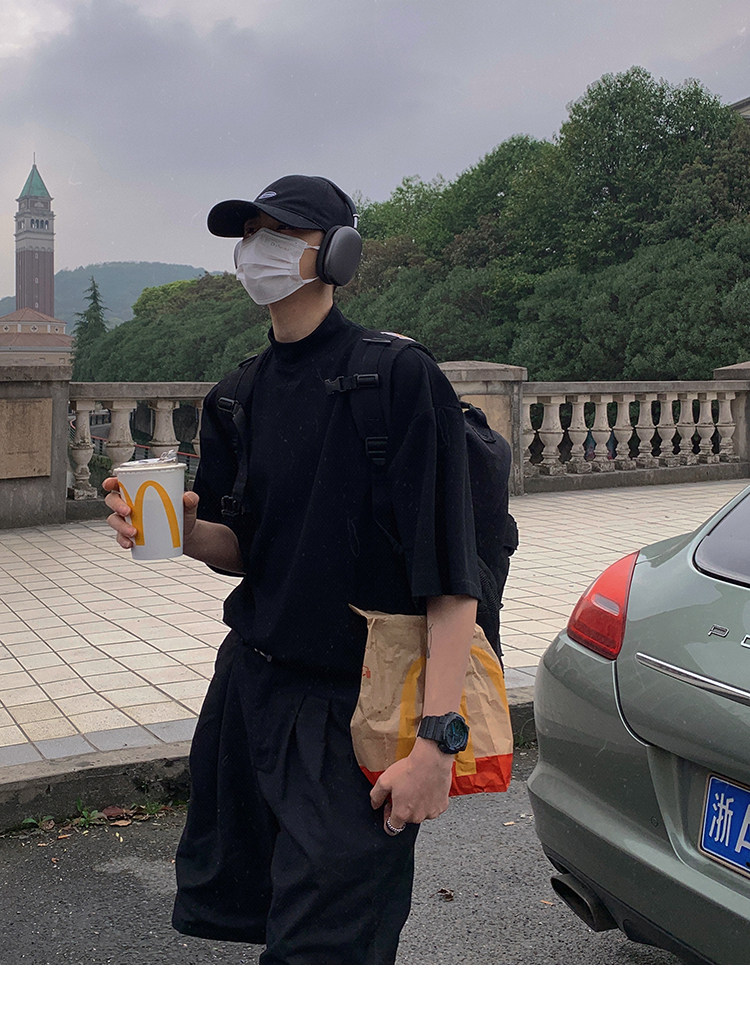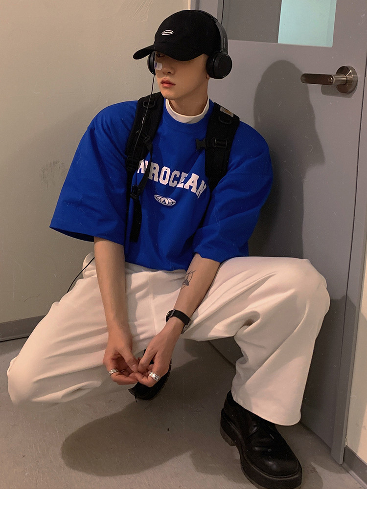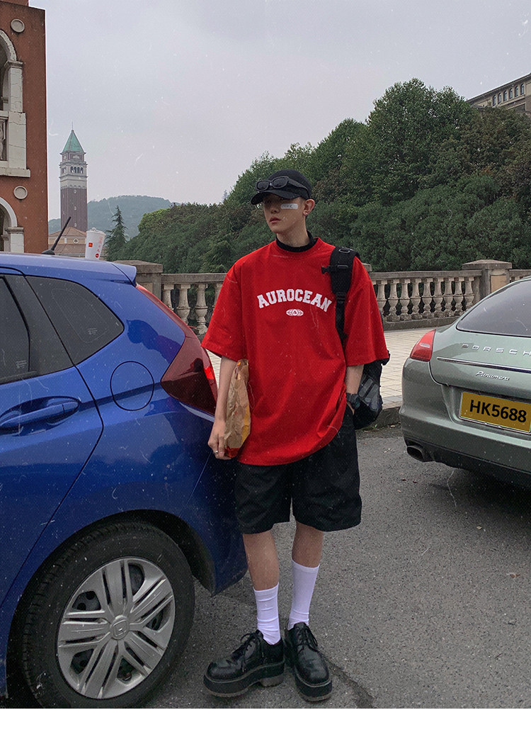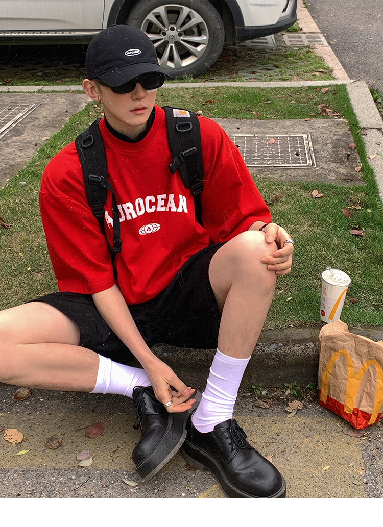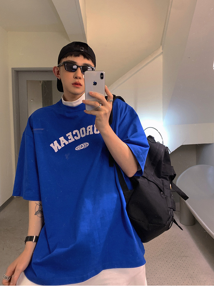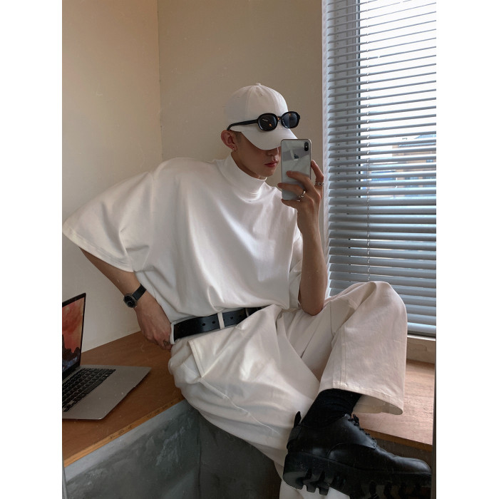 Aurocean 內搭小高領短袖 夏季黑白寬松基礎款字母刺綉T恤