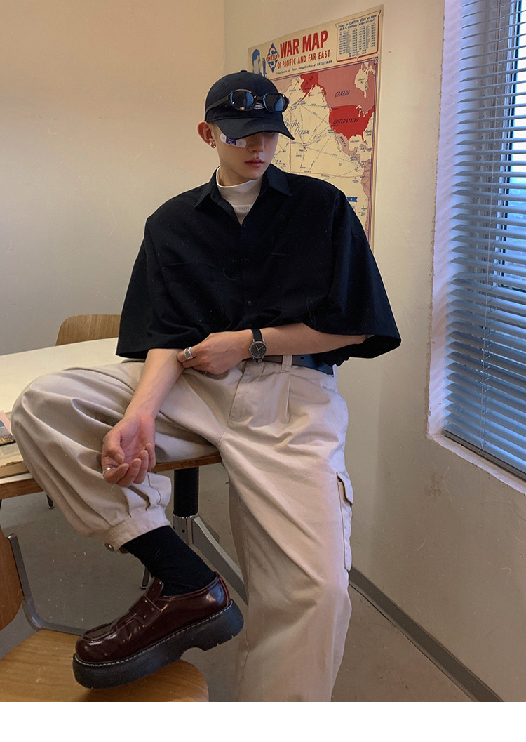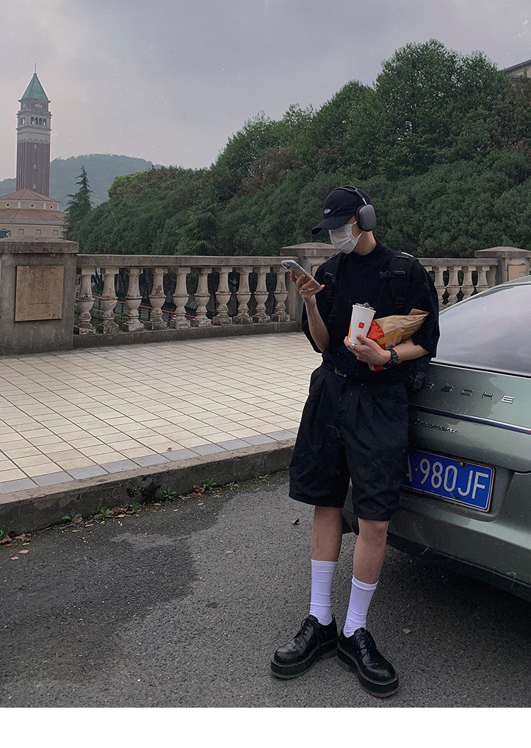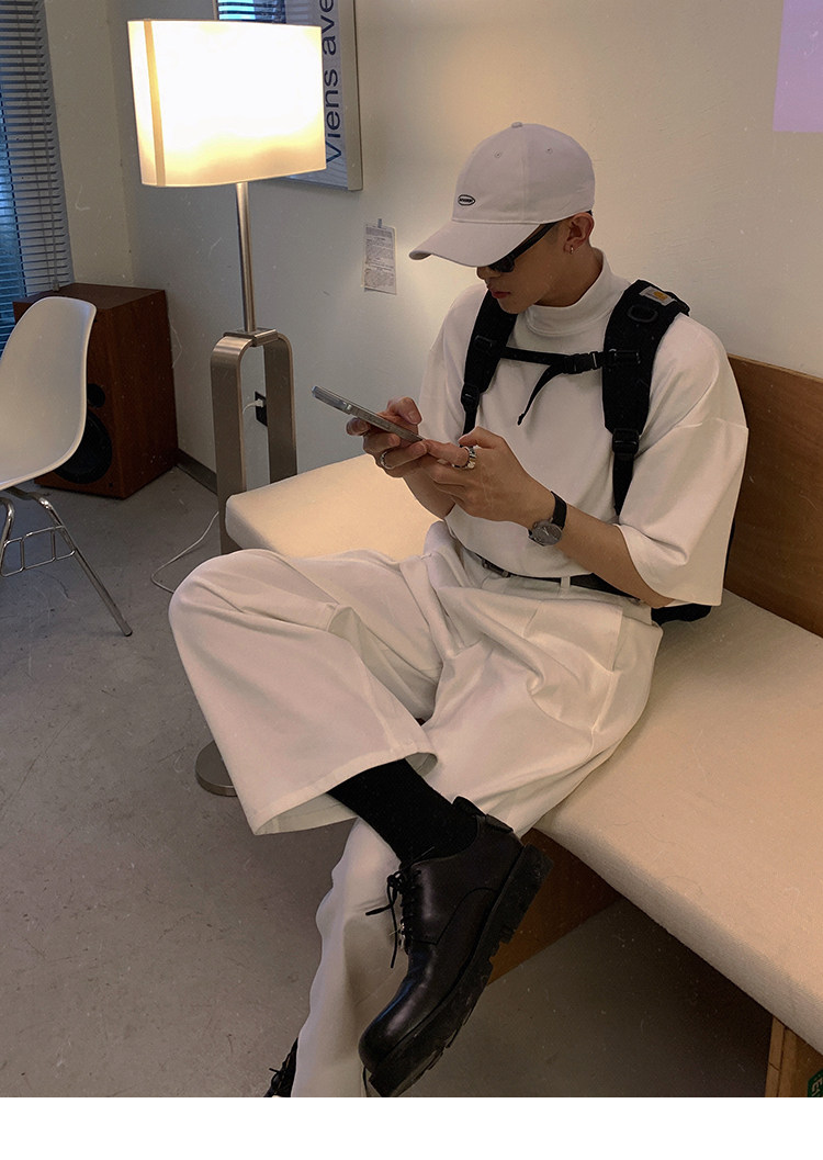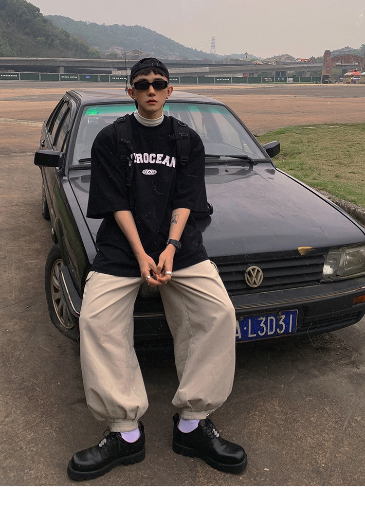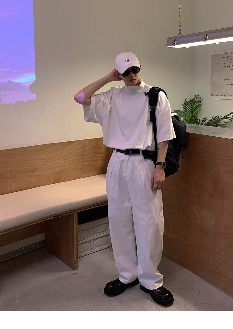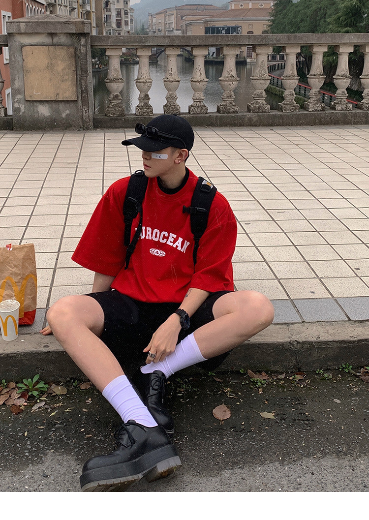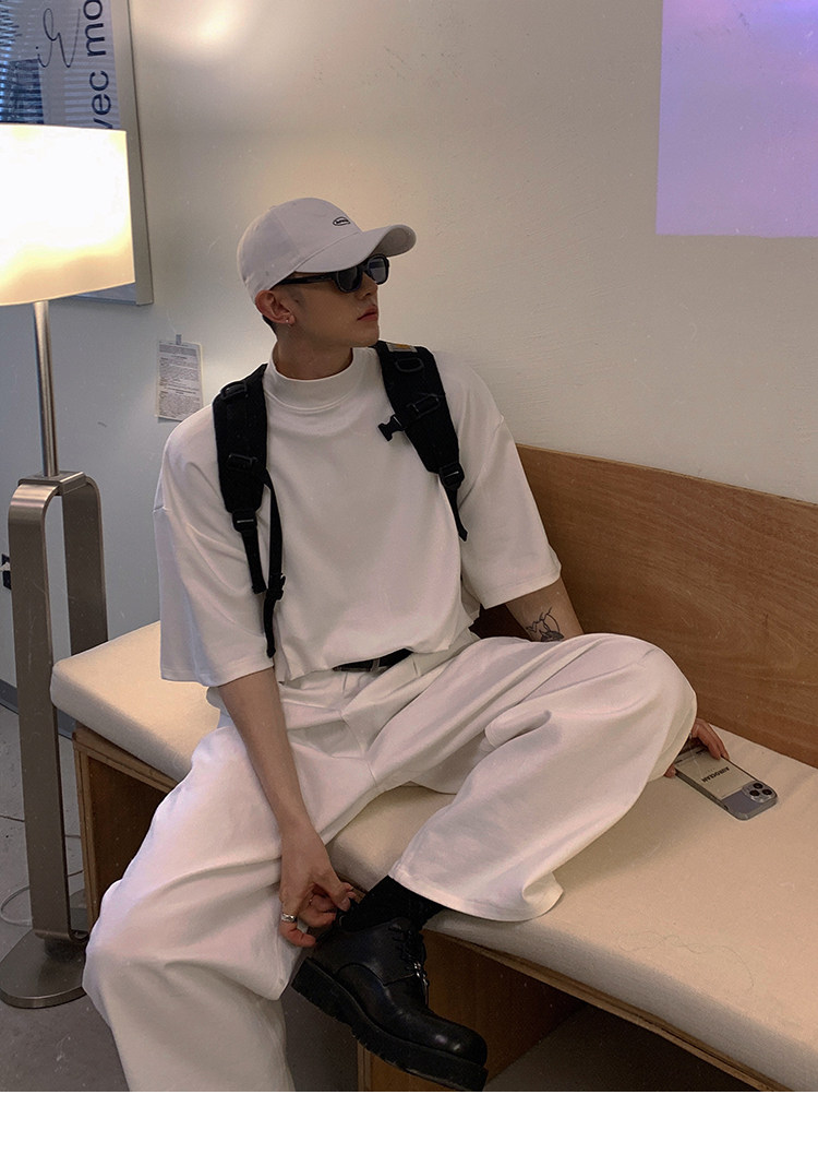 Aurocean 內搭小高領短袖 夏季黑白寬松基礎款字母刺綉T恤
