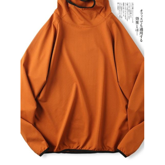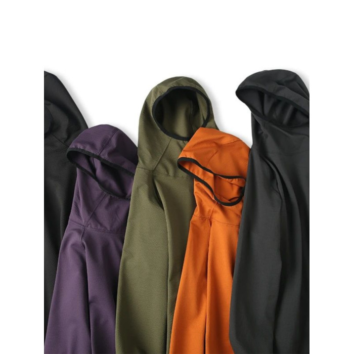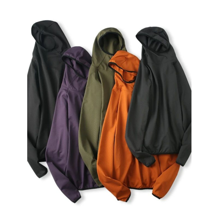 尾貨彈力泡泡紗男女同款戶外山系寬松連帽薄款套頭衛衣帽衫