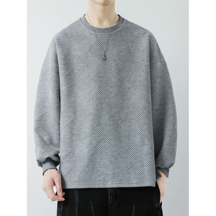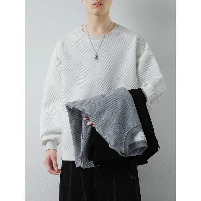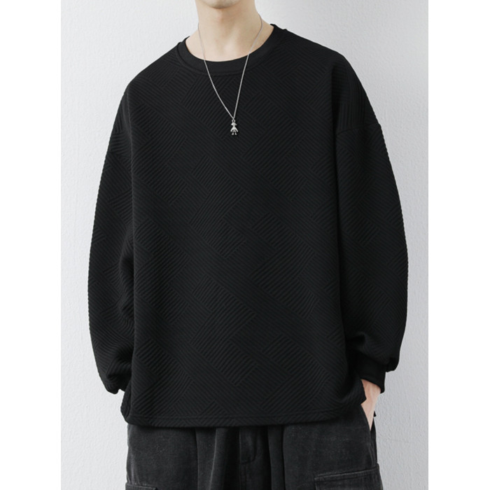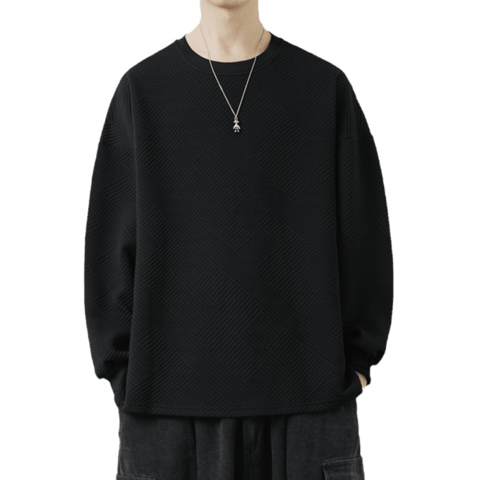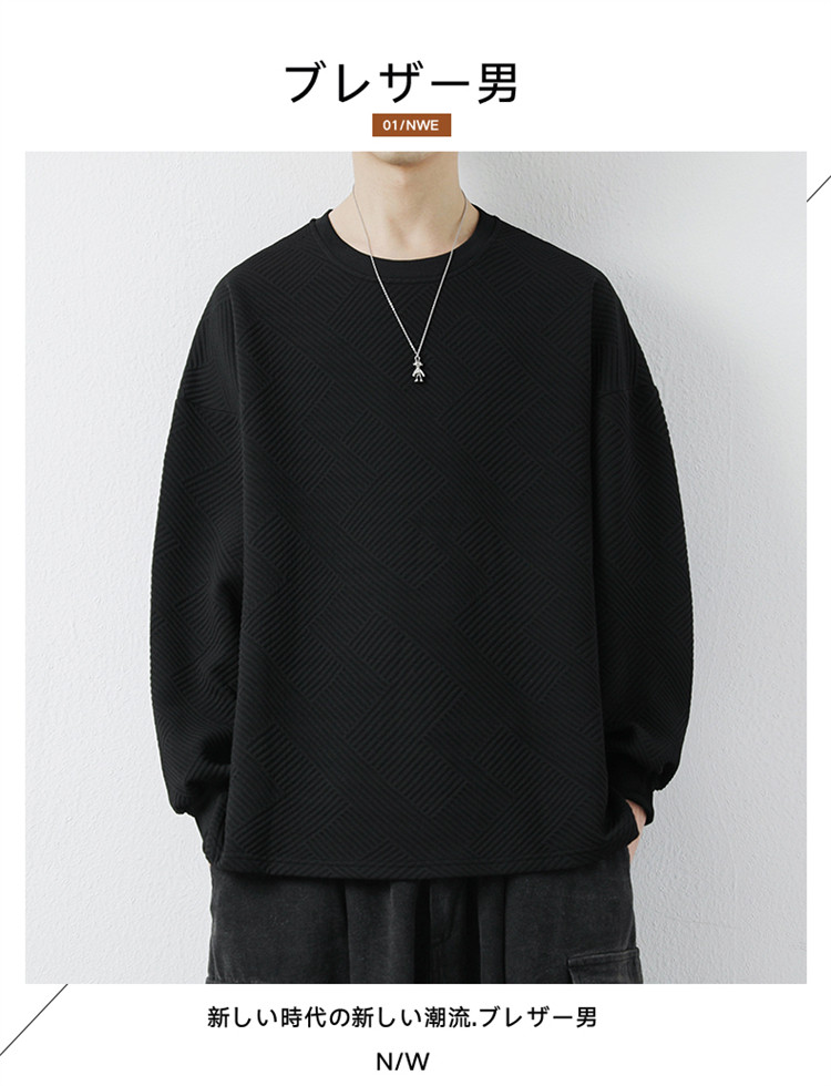 開叉長袖t恤男春秋大碼胖子加肥加大打底衫寬松提花圓領男裝衛衣