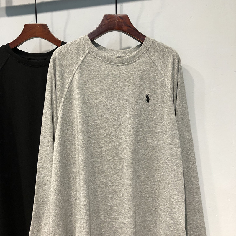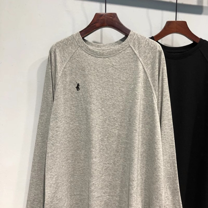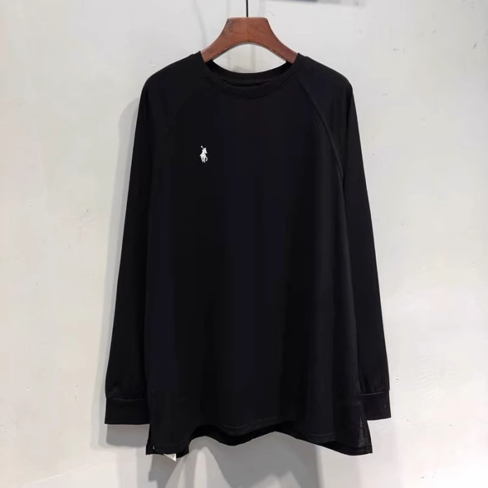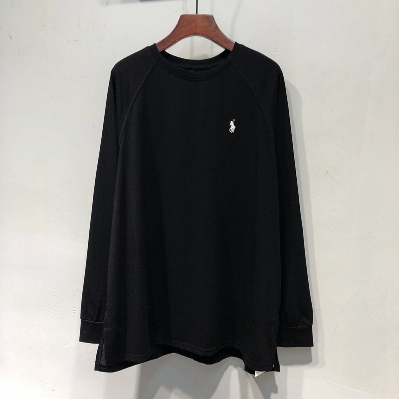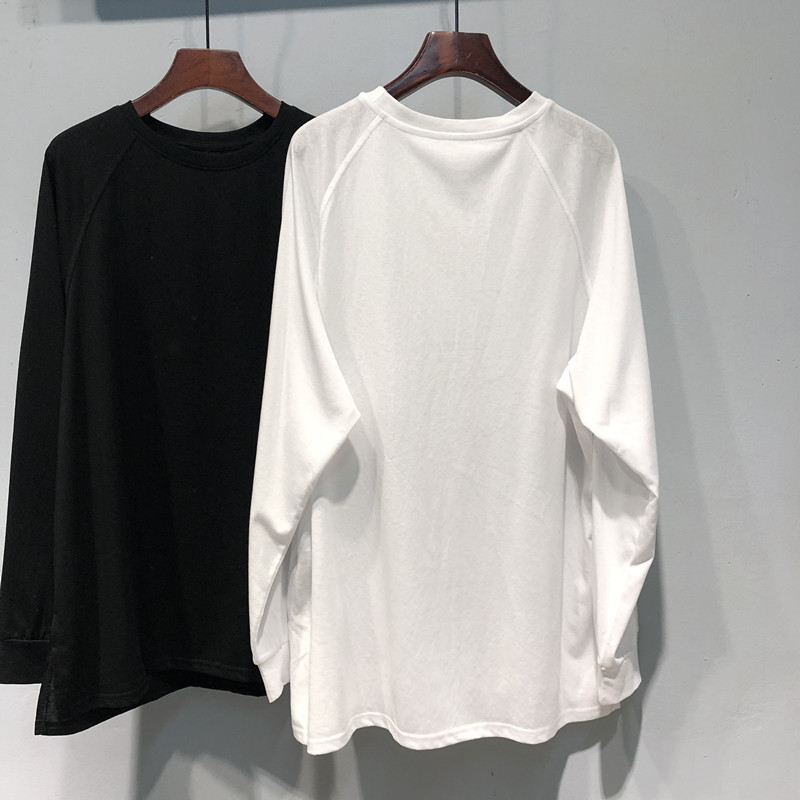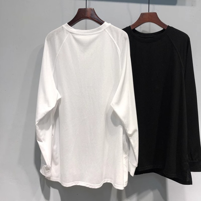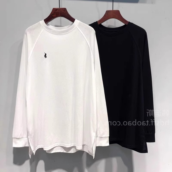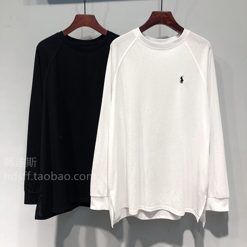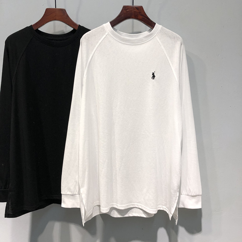 美式復古歐貨雙側開叉長袖T恤男女秋季刺綉簡約寬松休閒打底上衣