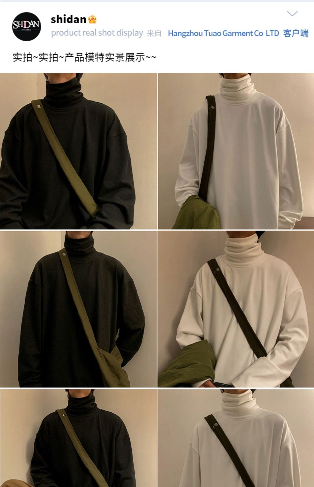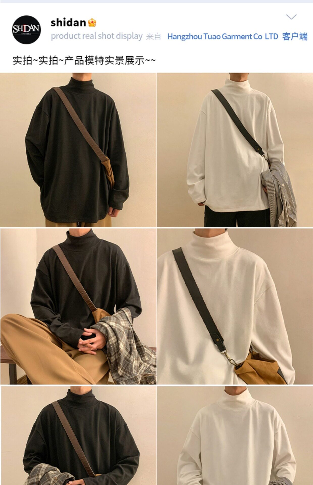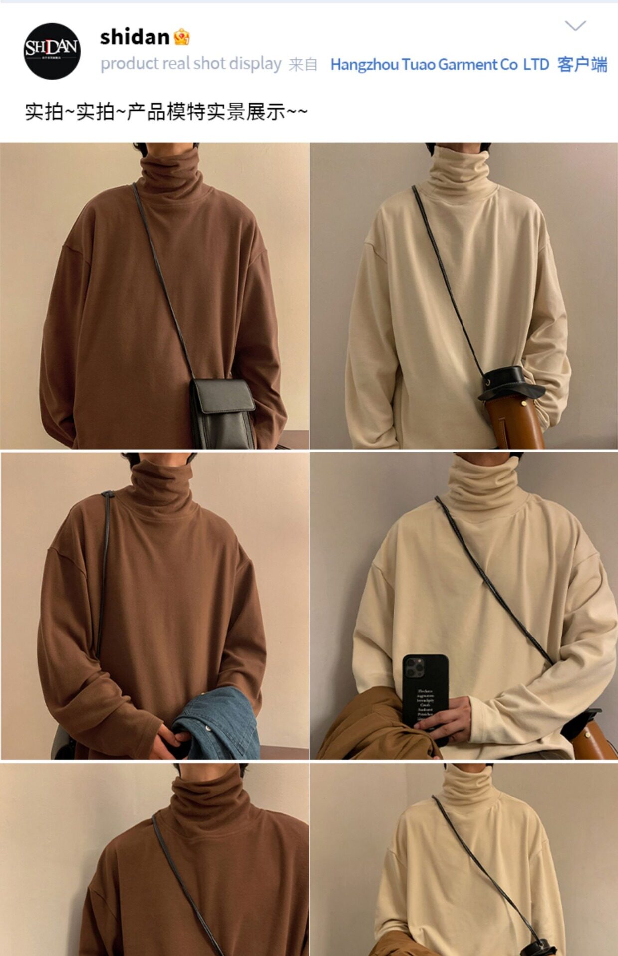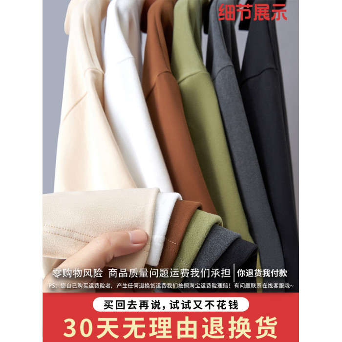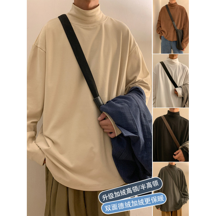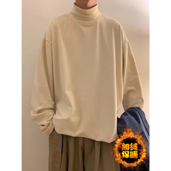 德絨打底衫男士內搭長袖t恤秋冬加絨半高領白色內襯高級感衛衣男