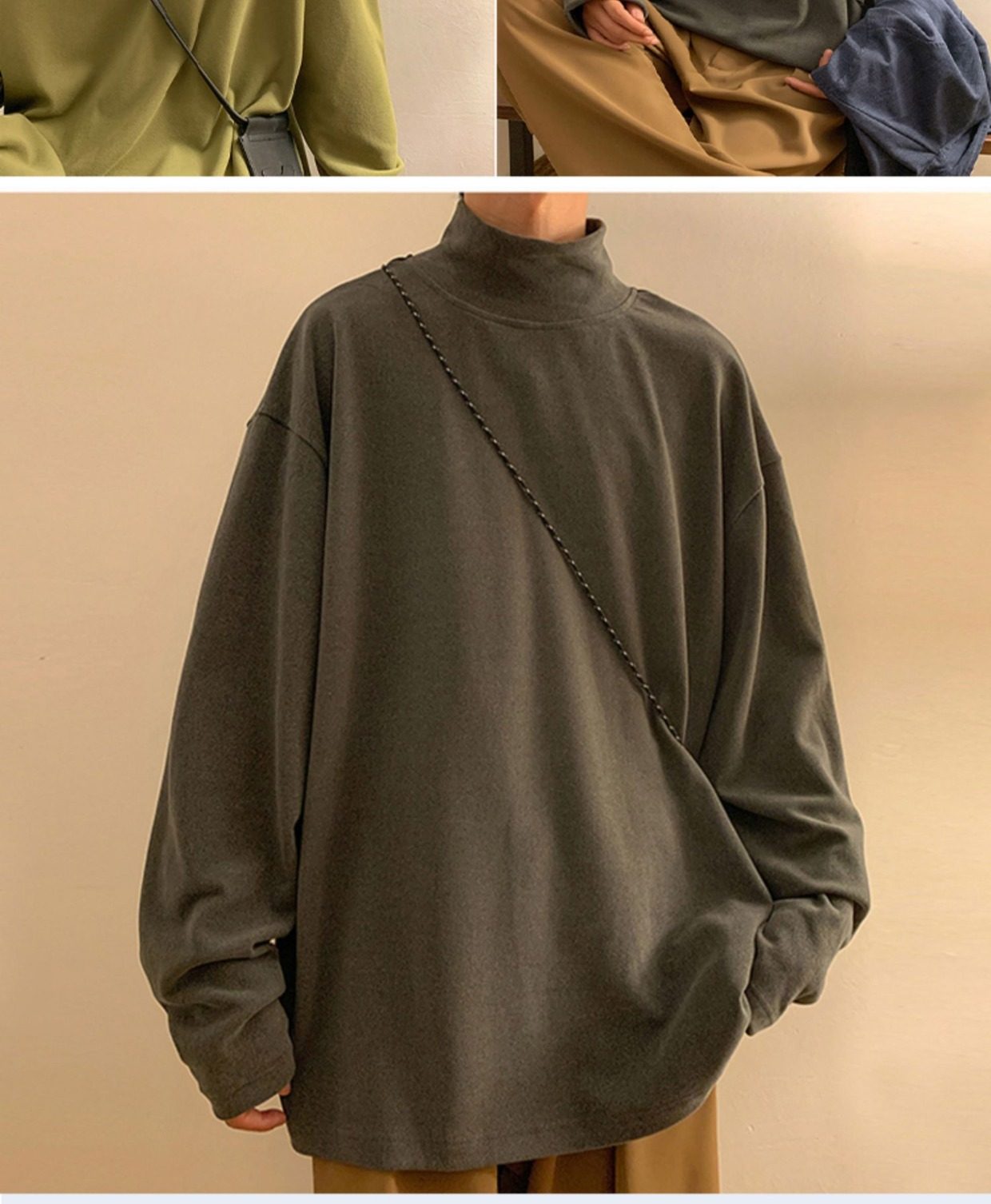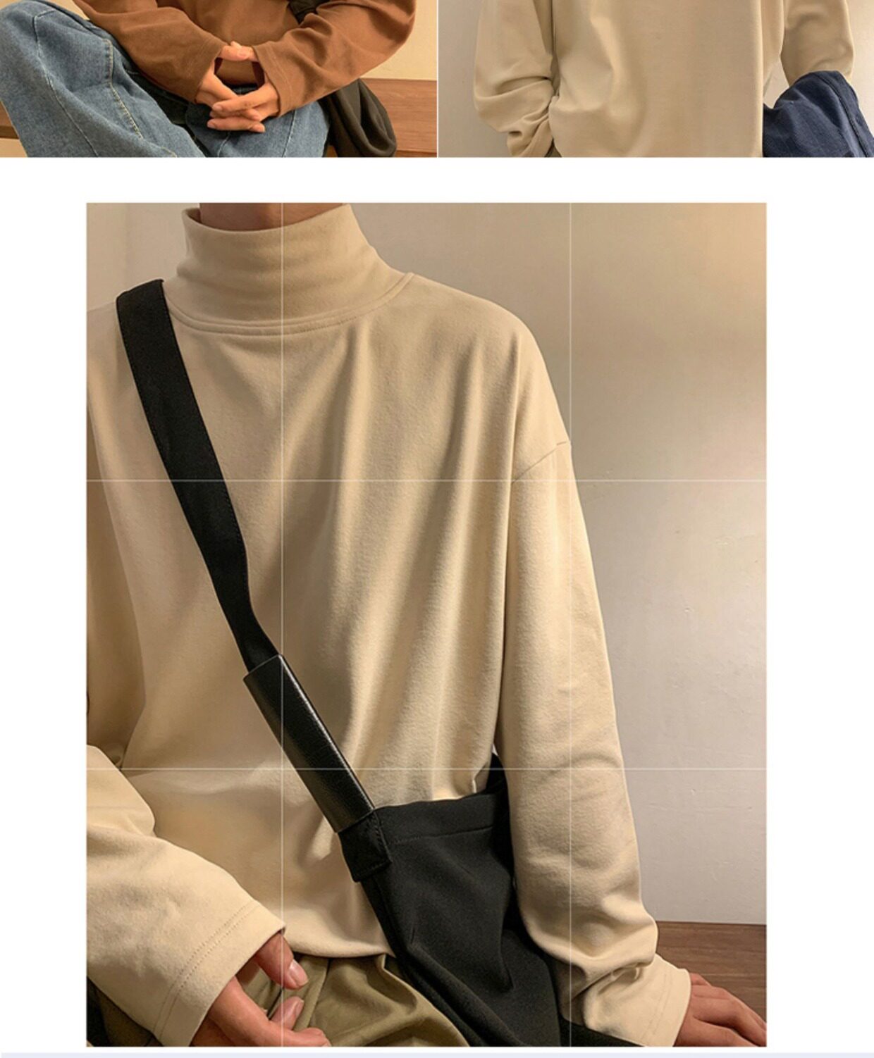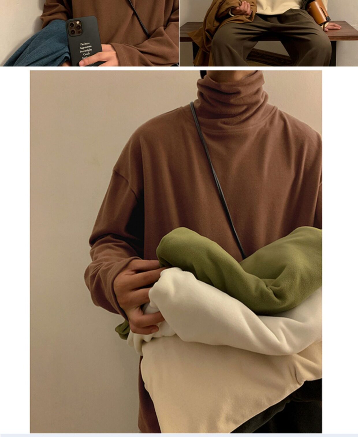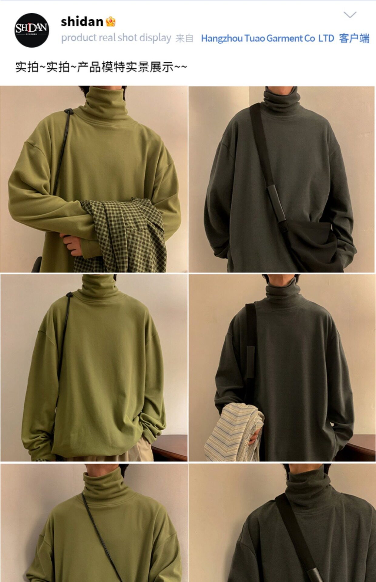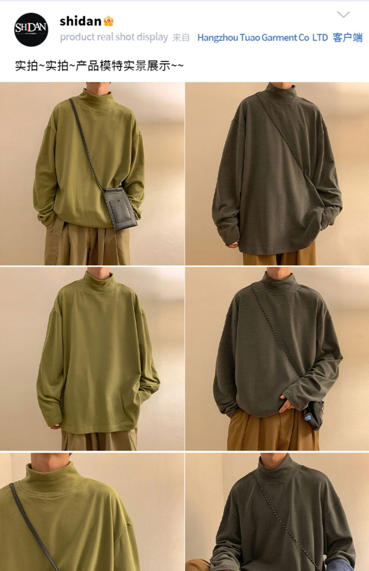 德絨打底衫男士內搭長袖t恤秋冬加絨半高領白色內襯高級感衛衣男