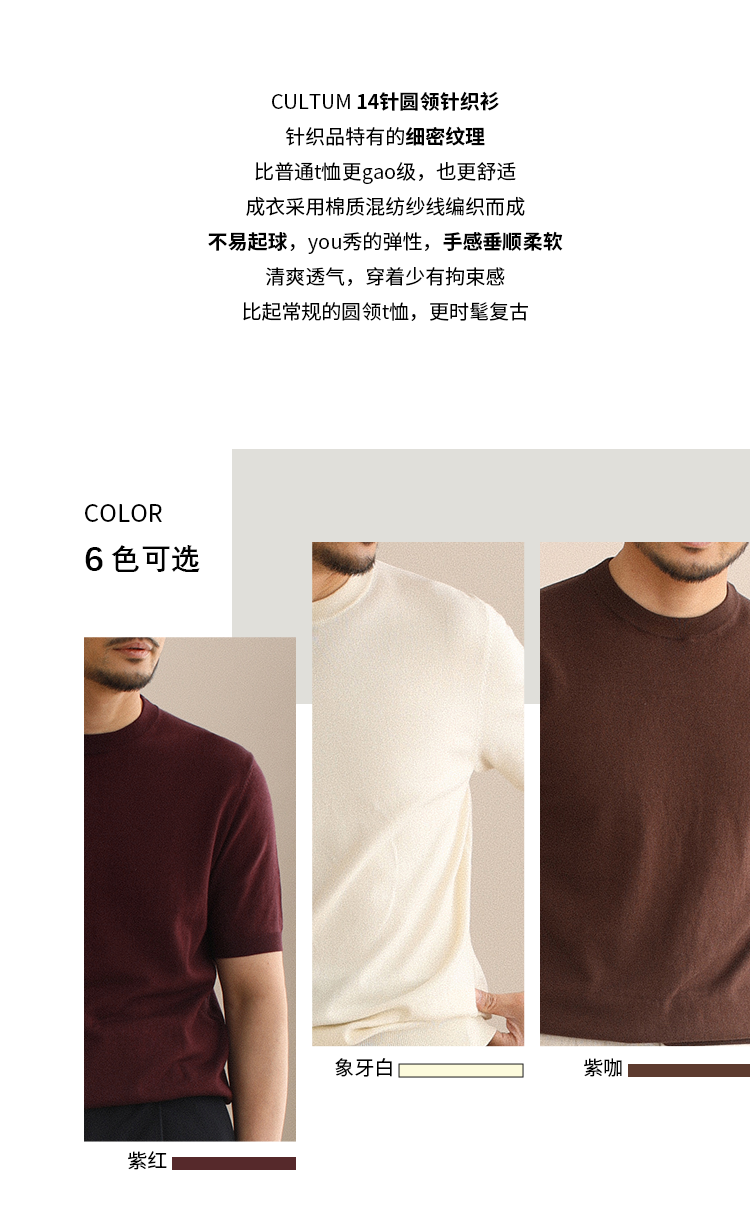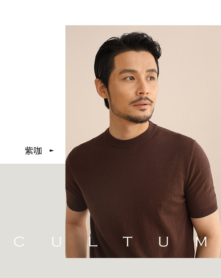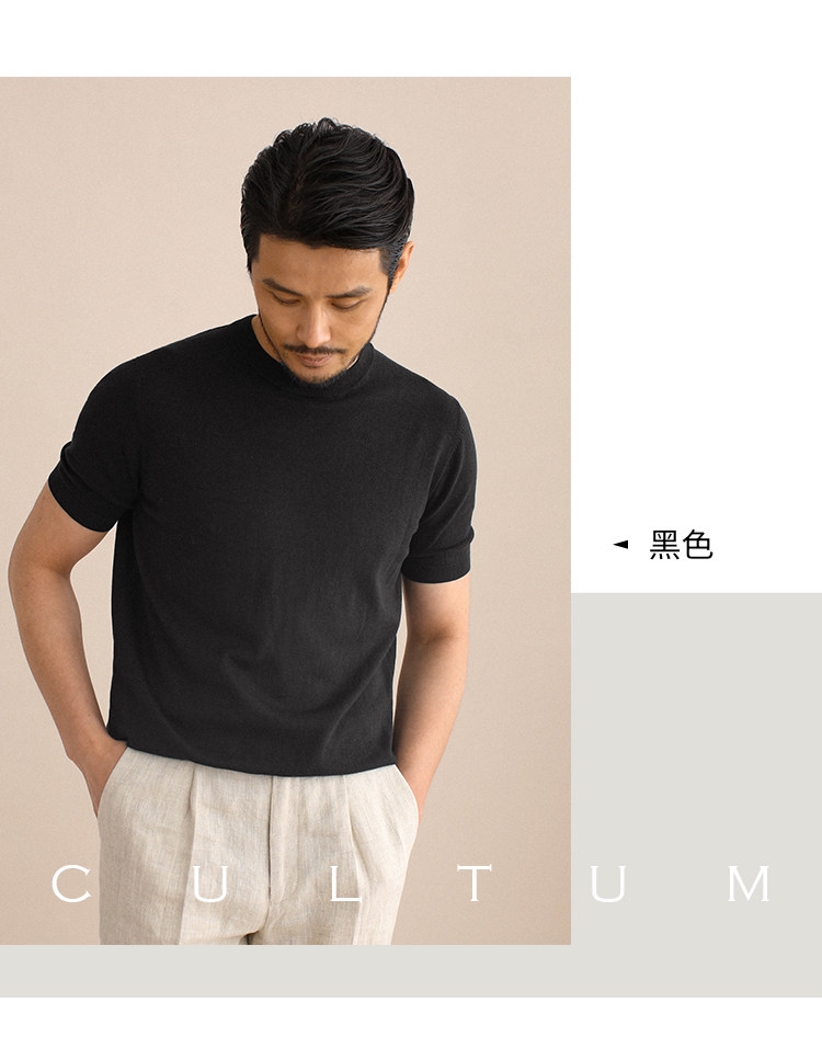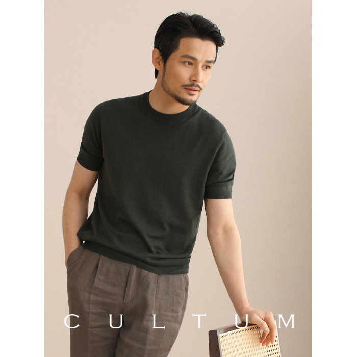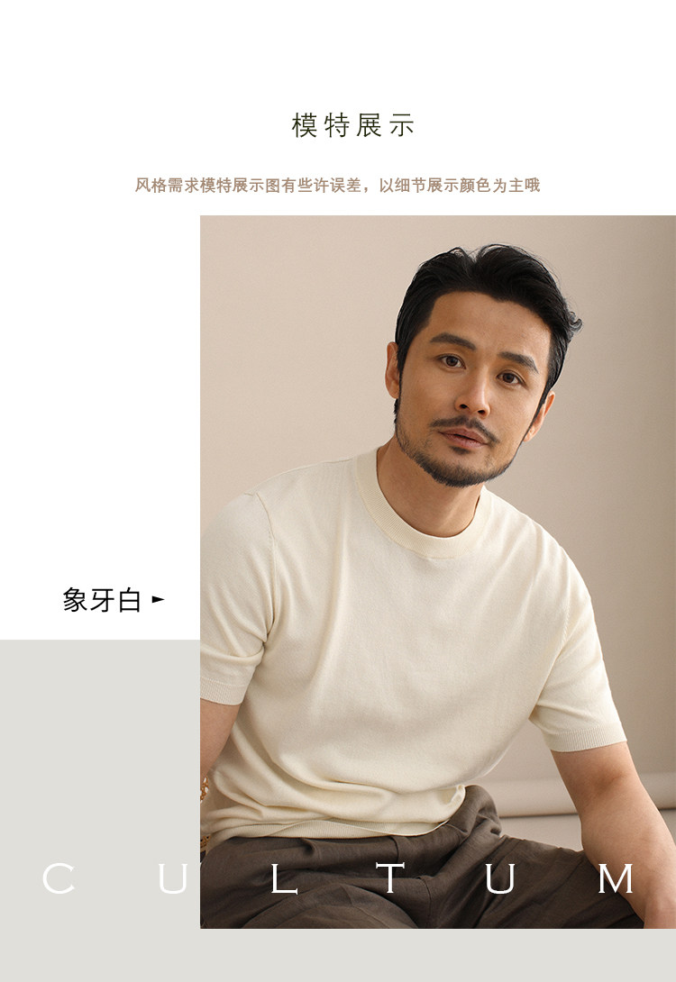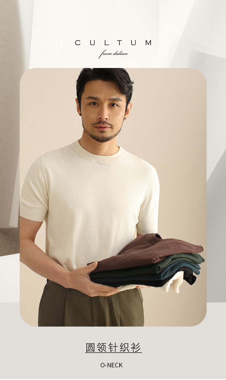 CULTUM夏季薄款透氣百搭圓領短袖針織T恤衫男純色簡約基礎打底衫