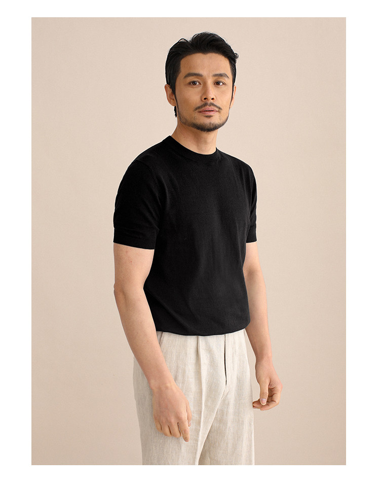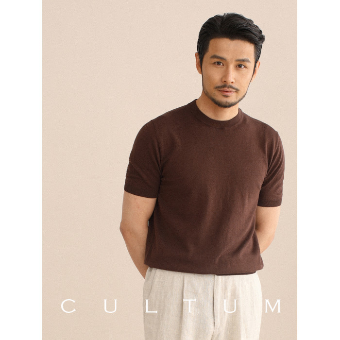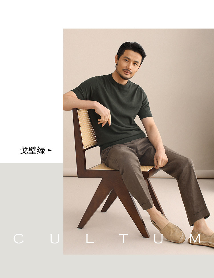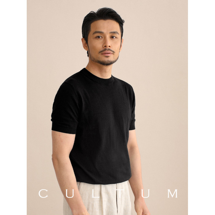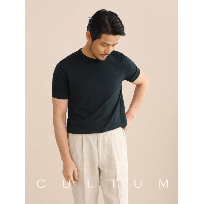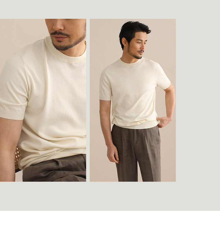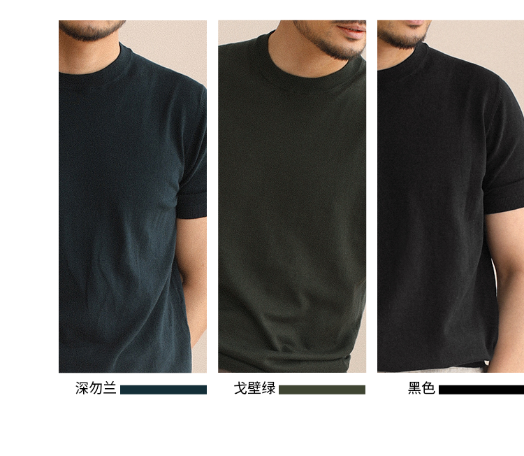 CULTUM夏季薄款透氣百搭圓領短袖針織T恤衫男純色簡約基礎打底衫