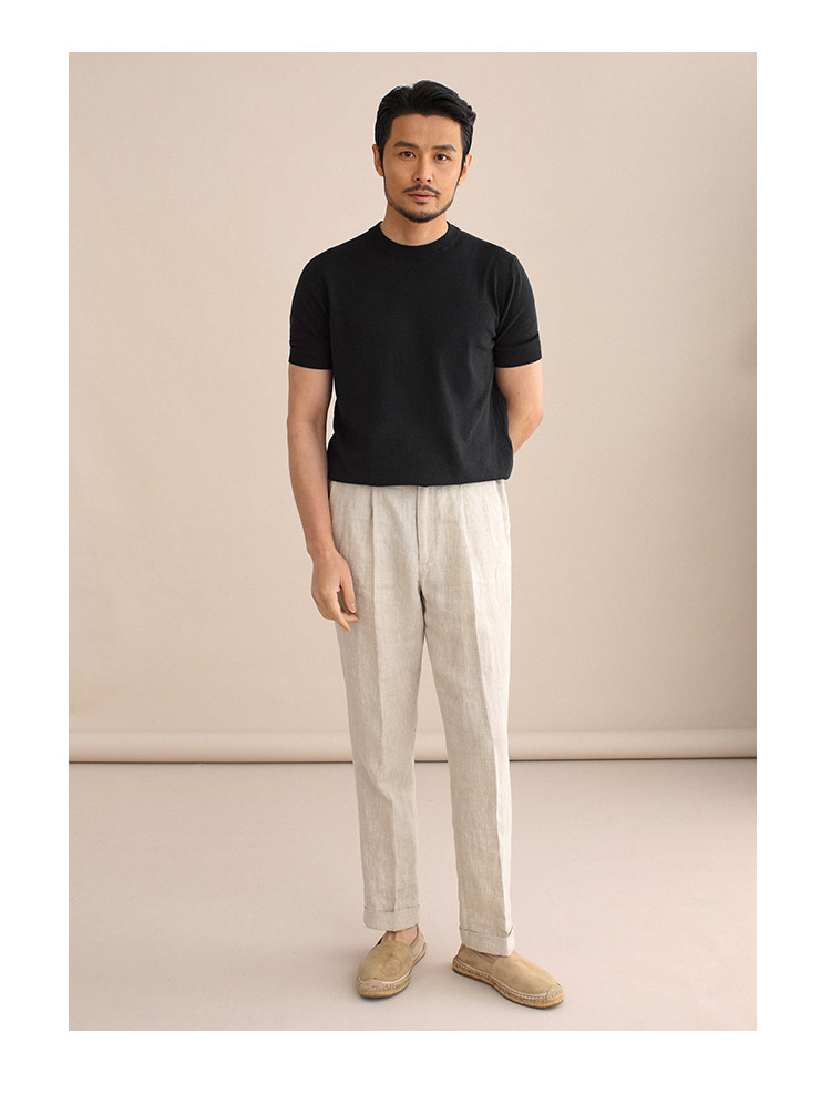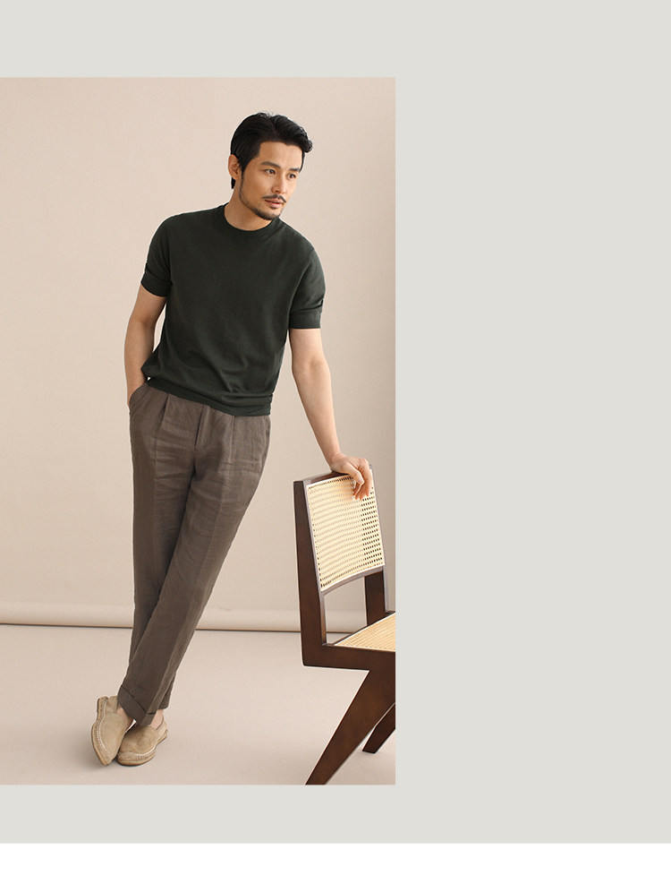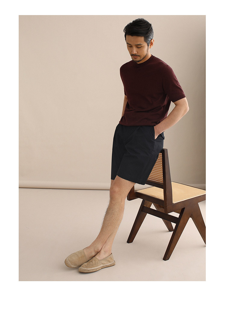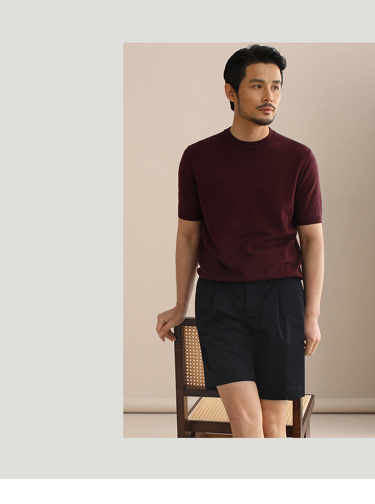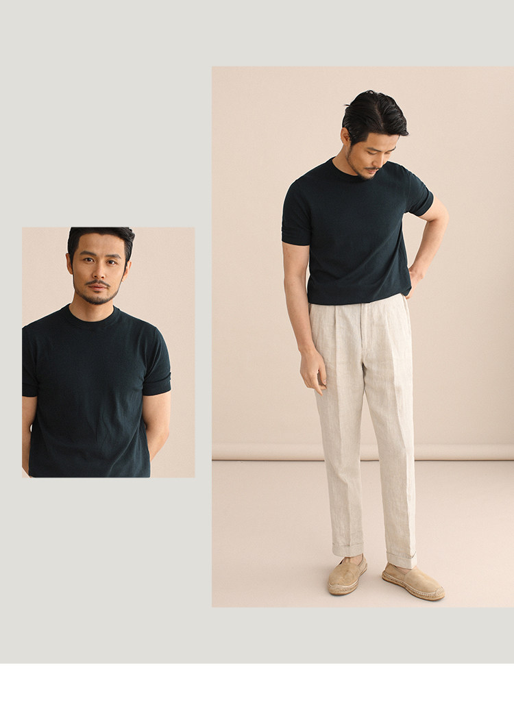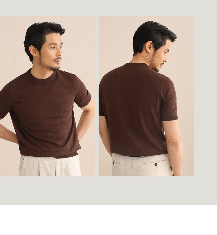 CULTUM夏季薄款透氣百搭圓領短袖針織T恤衫男純色簡約基礎打底衫