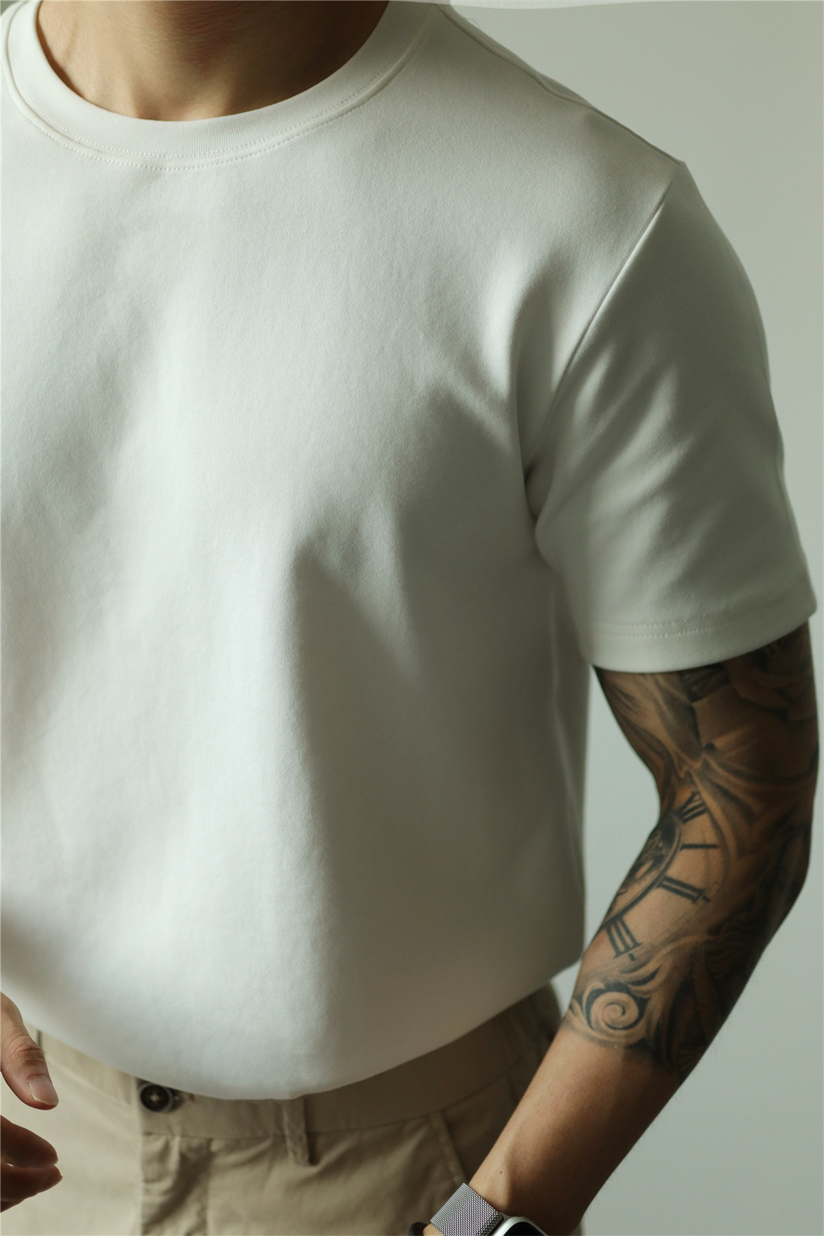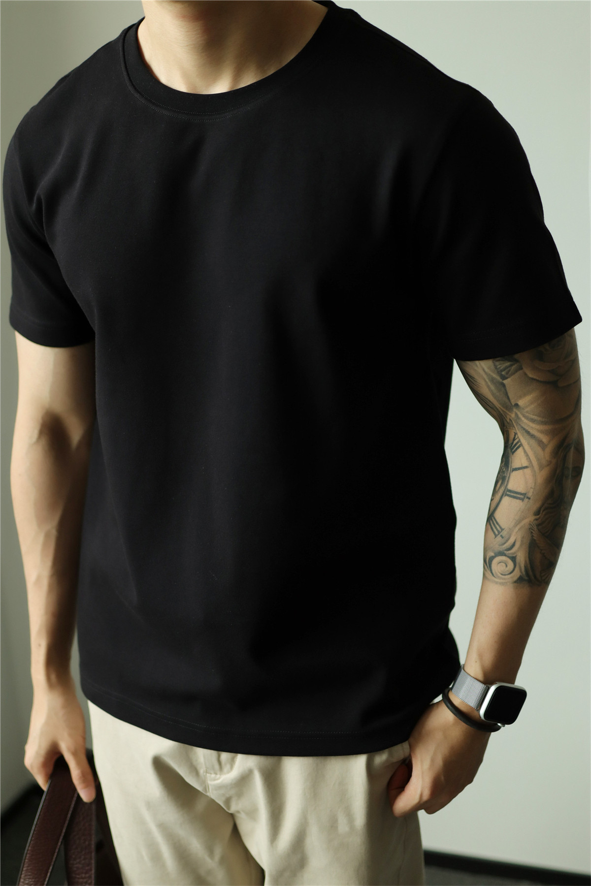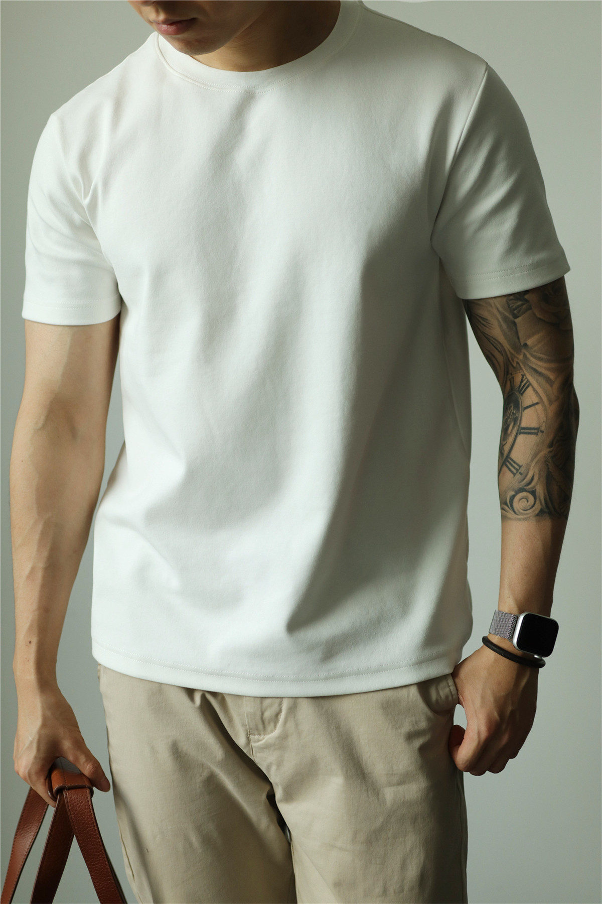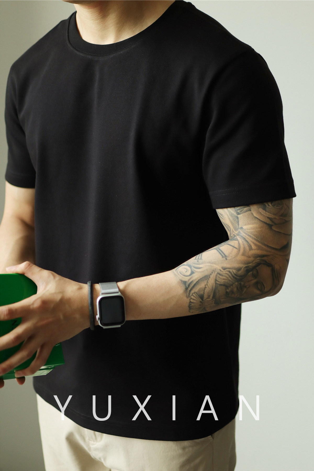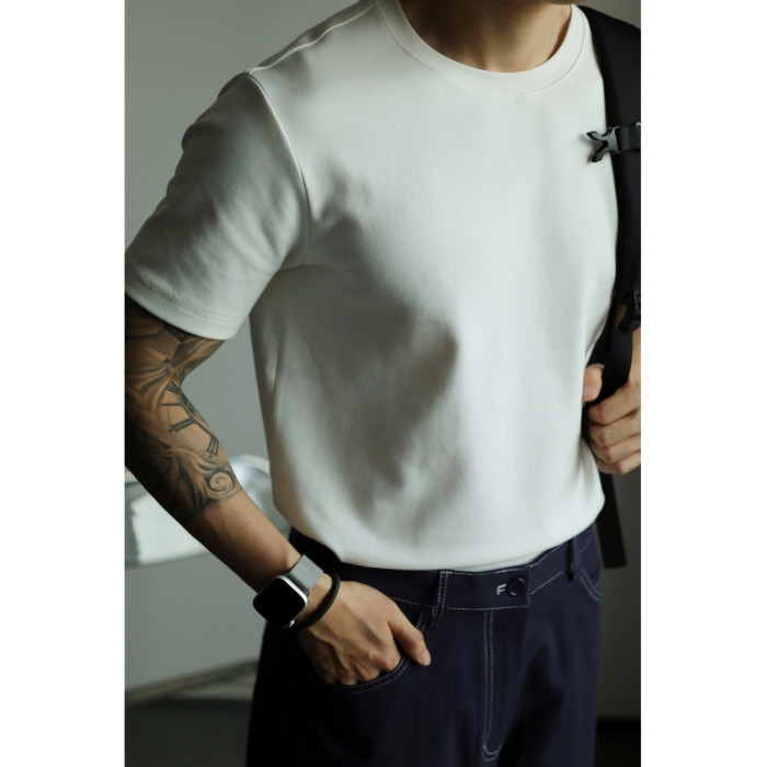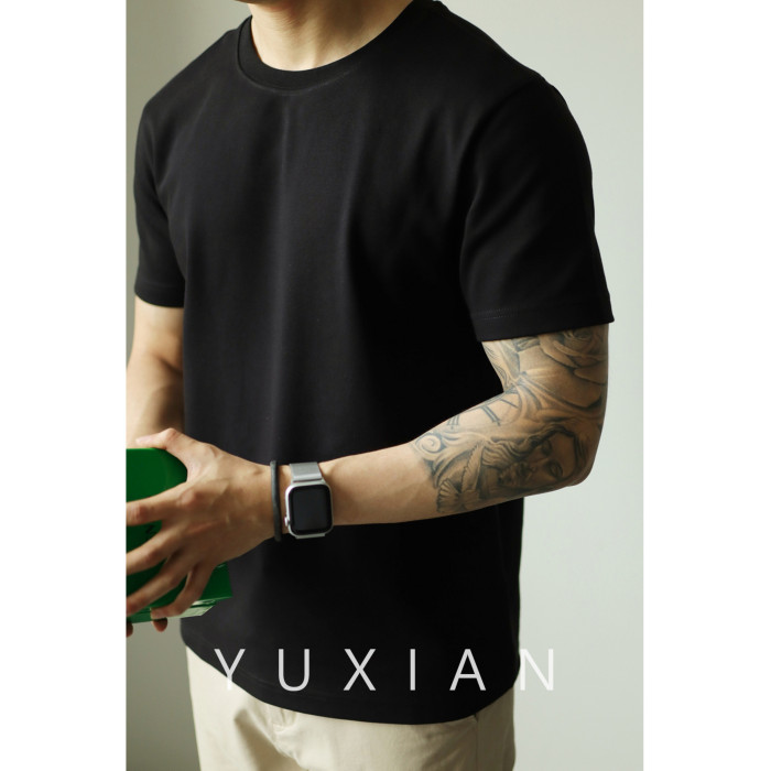 YUXIAN餘閒匹馬棉260G基礎圓領純色短袖T恤抗皺男春夏秋打底休閒