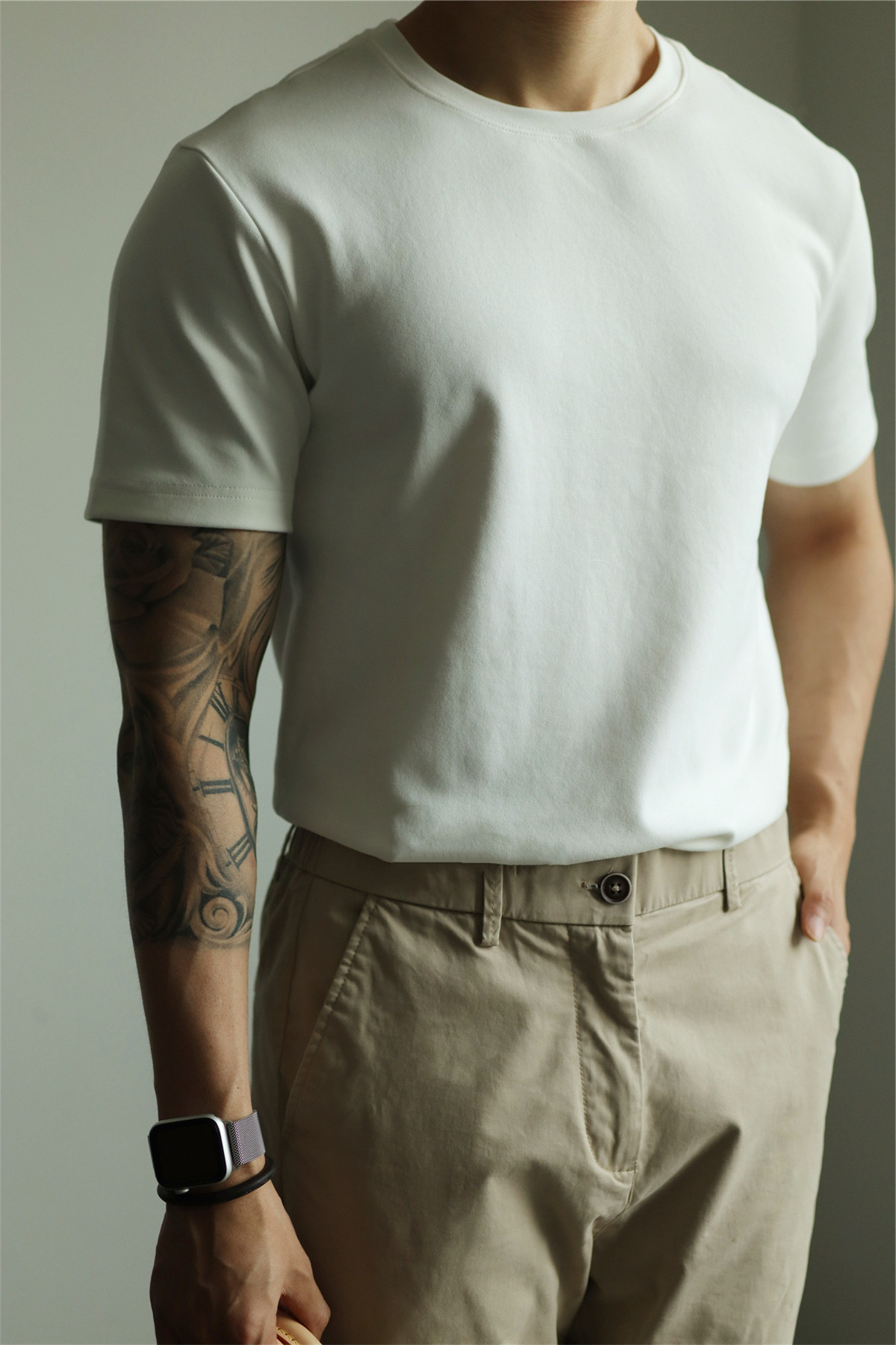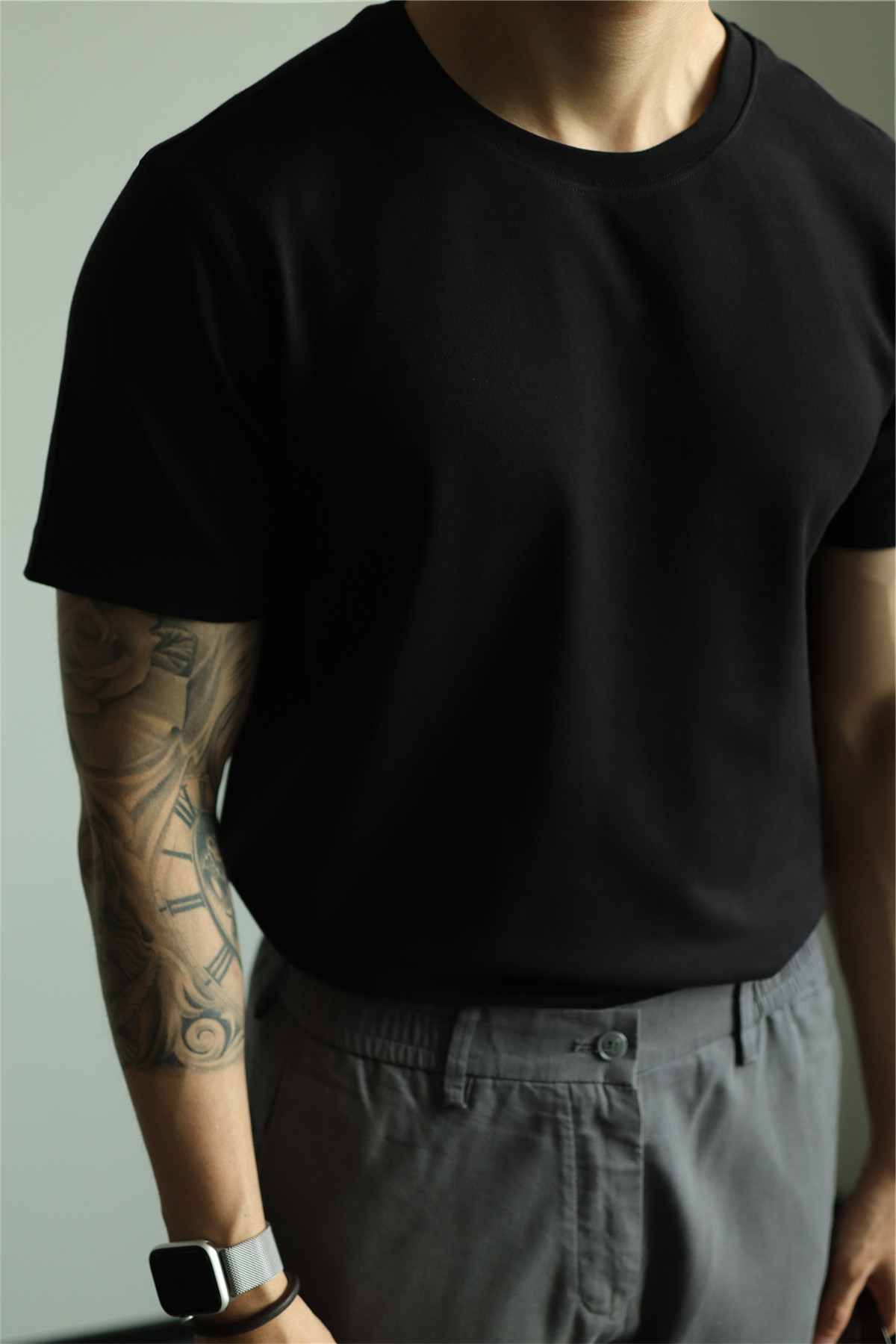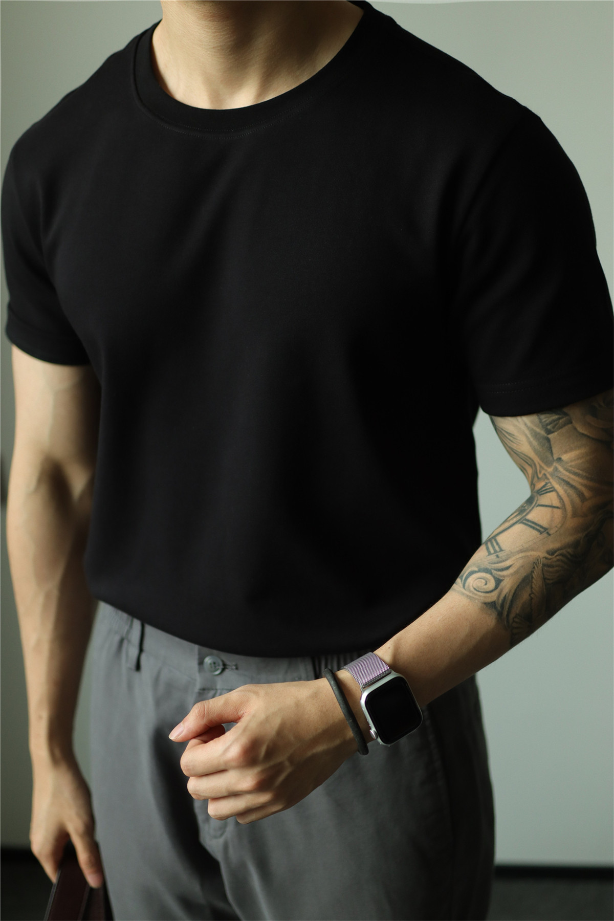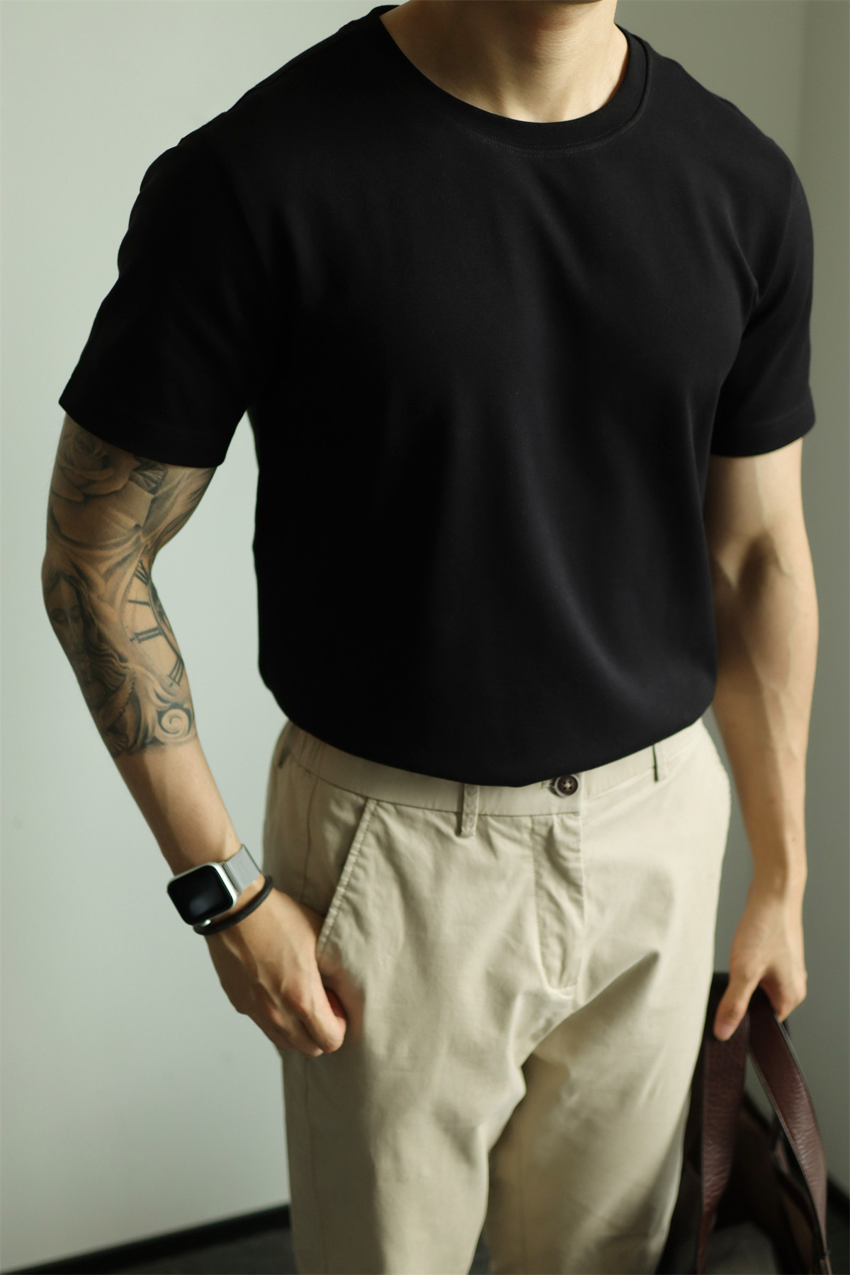 YUXIAN餘閒匹馬棉260G基礎圓領純色短袖T恤抗皺男春夏秋打底休閒