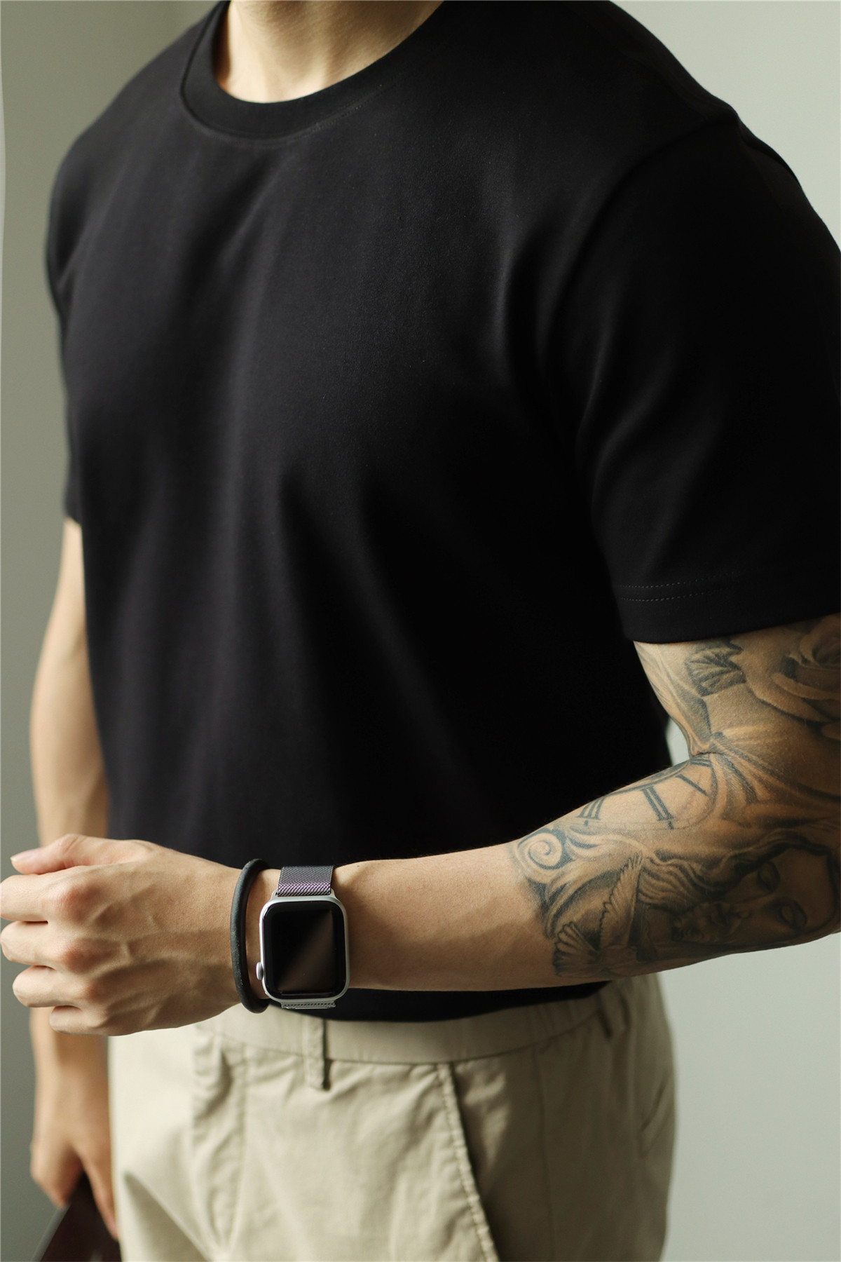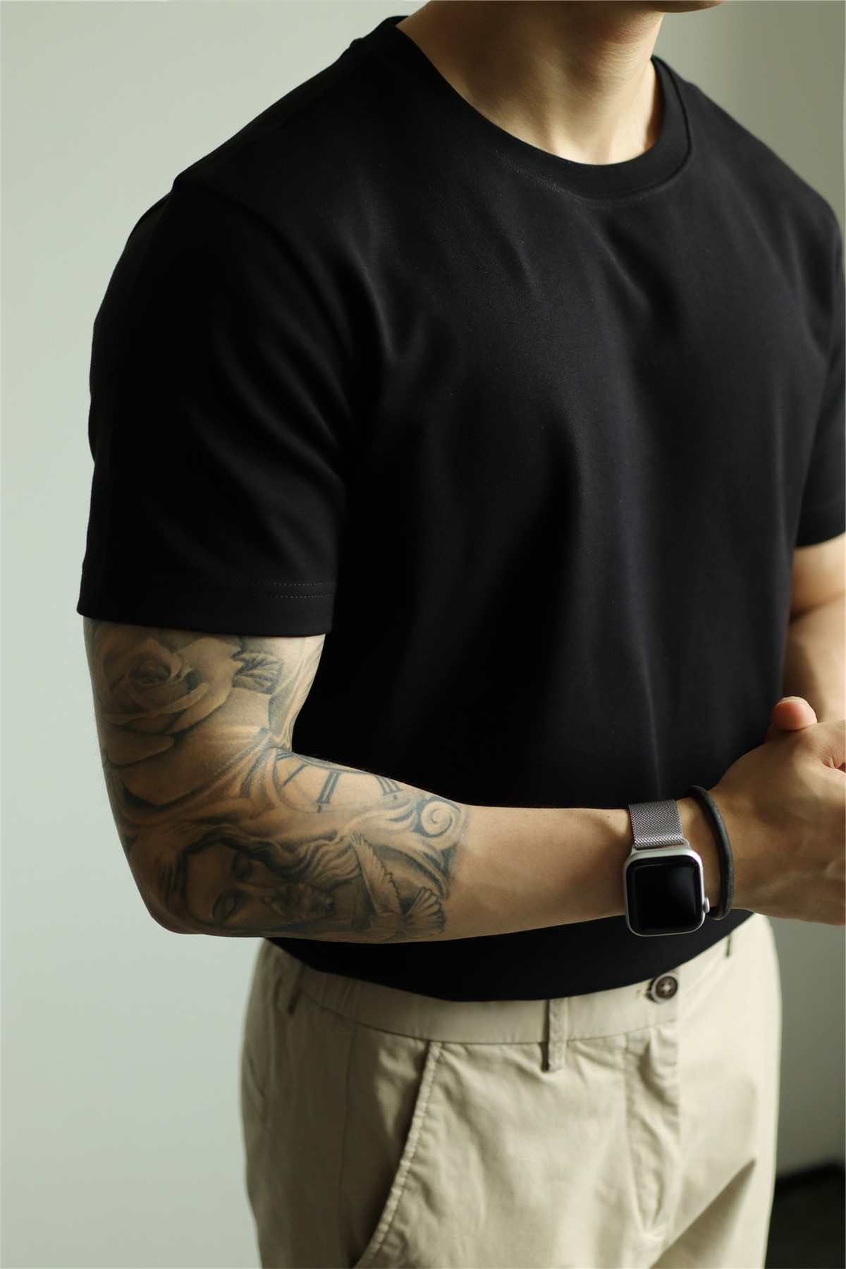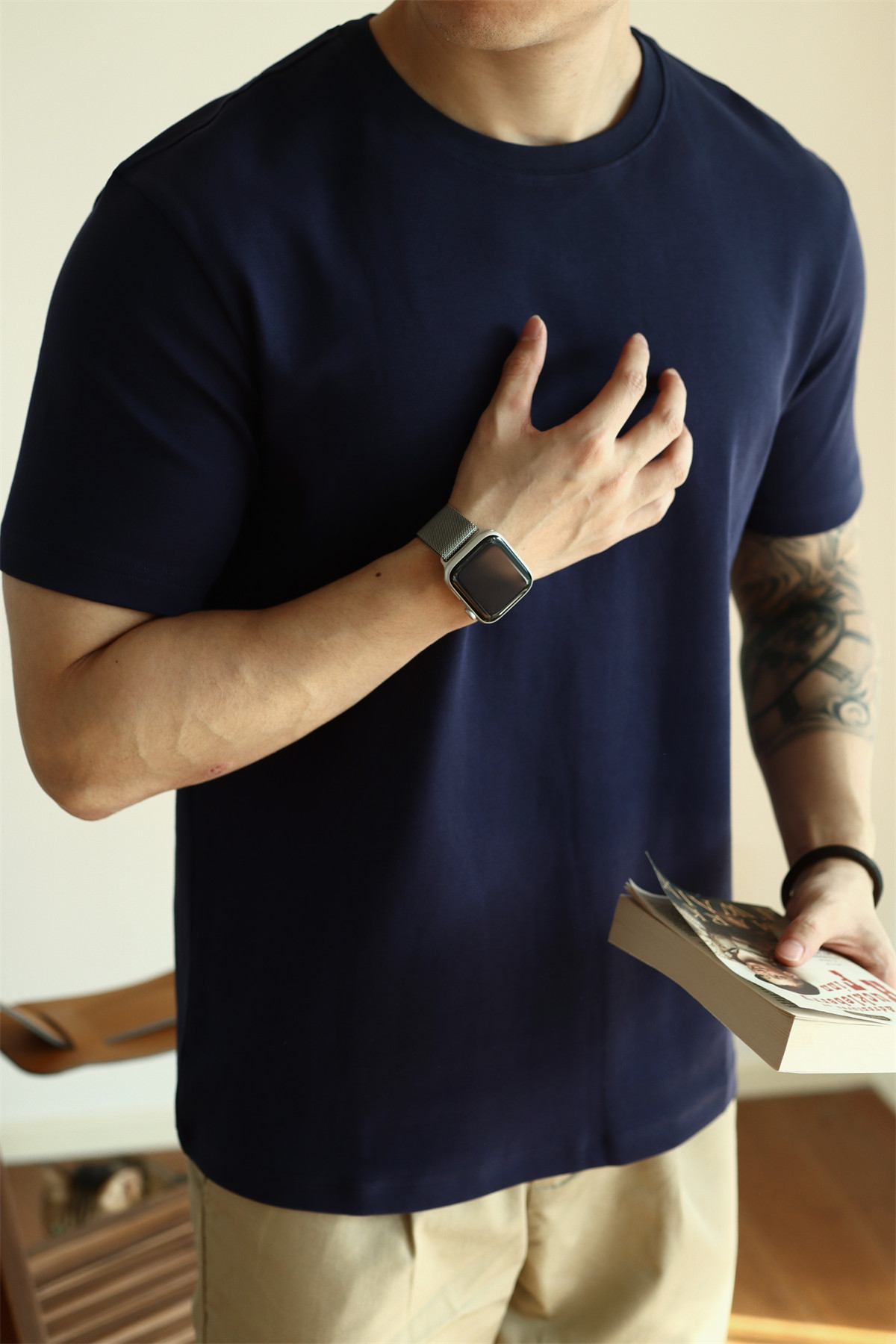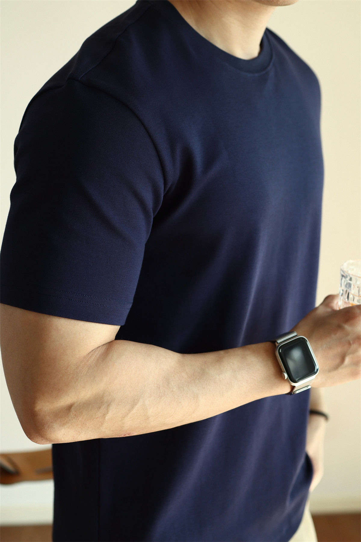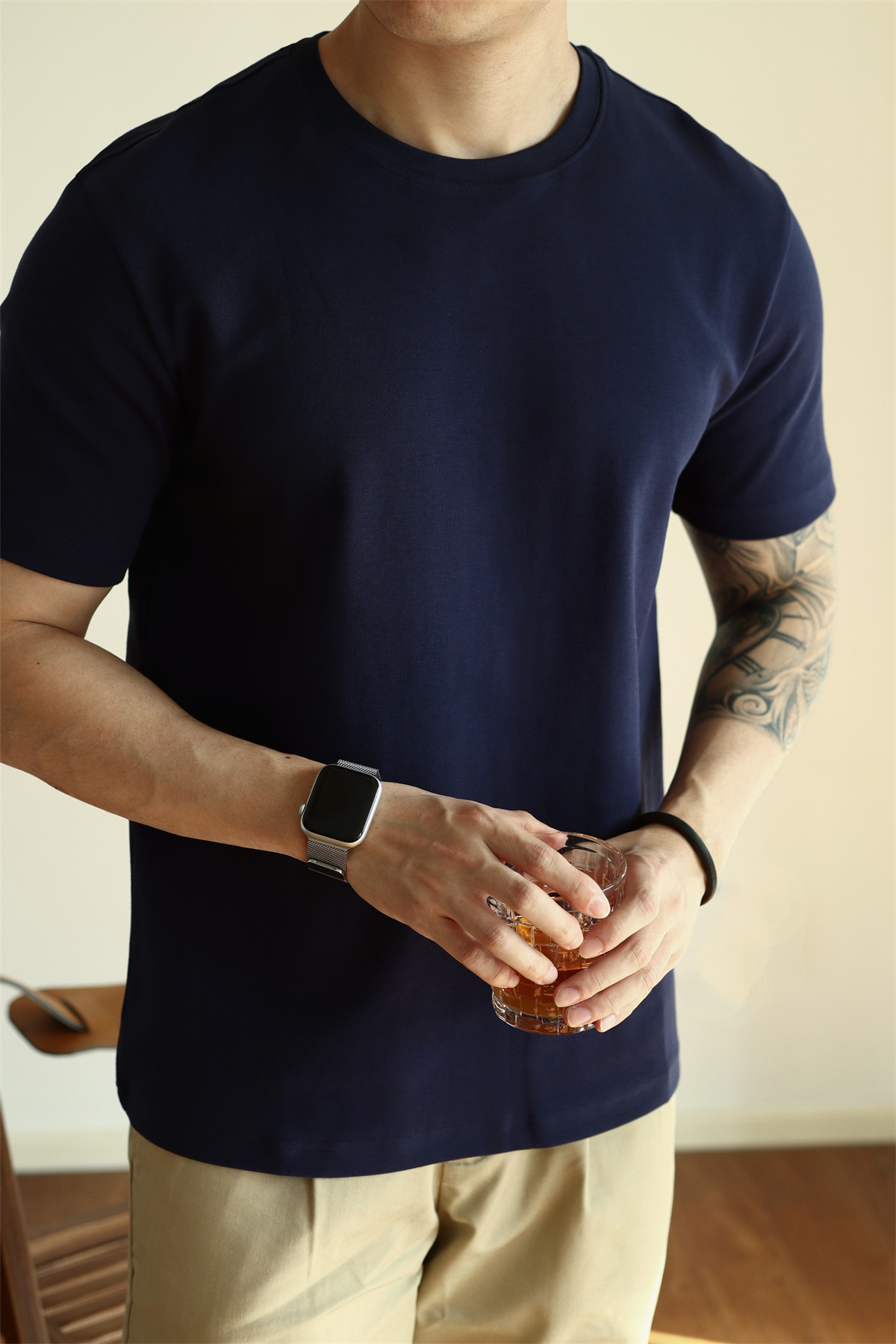 YUXIAN餘閒匹馬棉260G基礎圓領純色短袖T恤抗皺男春夏秋打底休閒