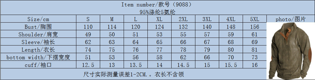 Men's sweatshirt 歐美男士戶外套頭燈芯絨休閒立領長袖衛衣T恤