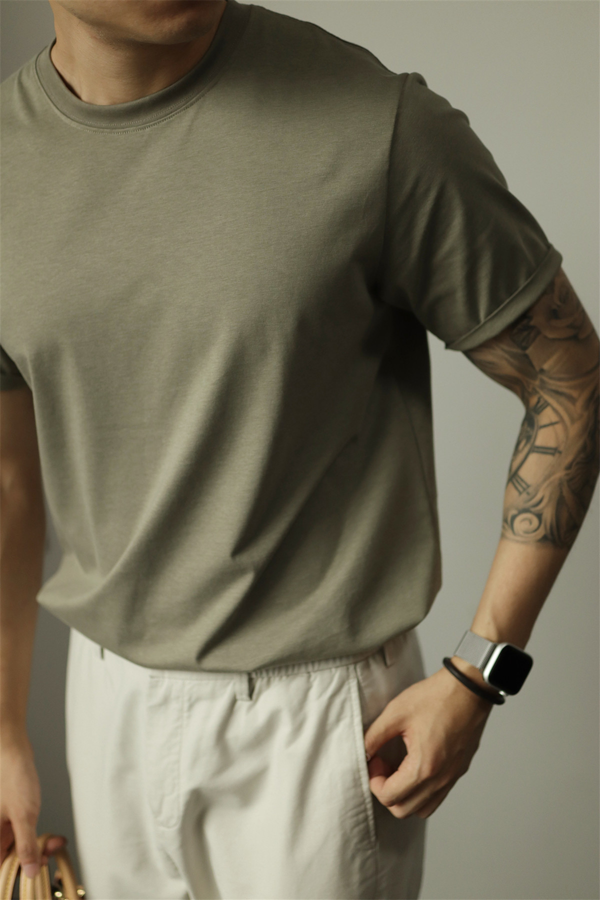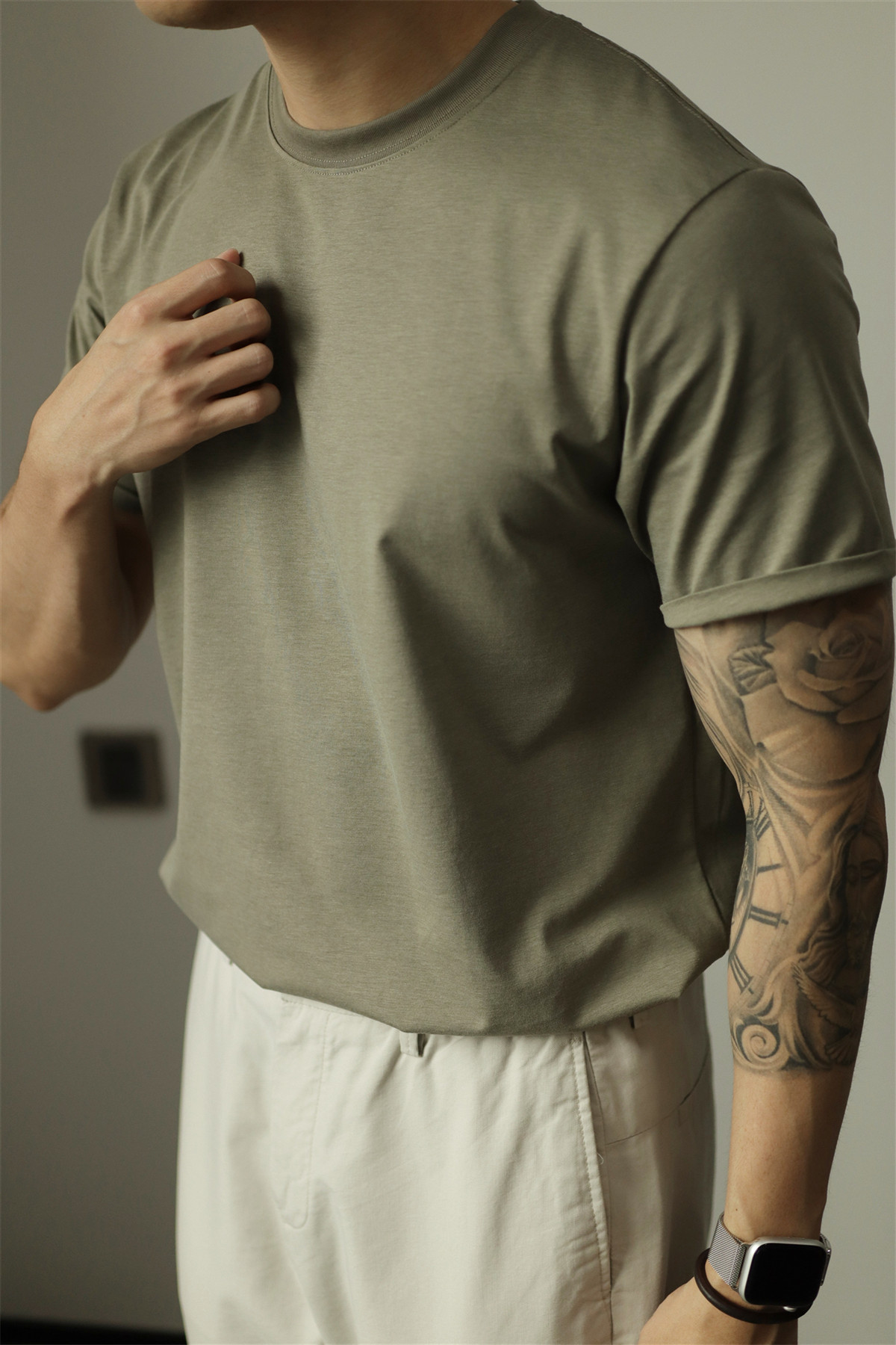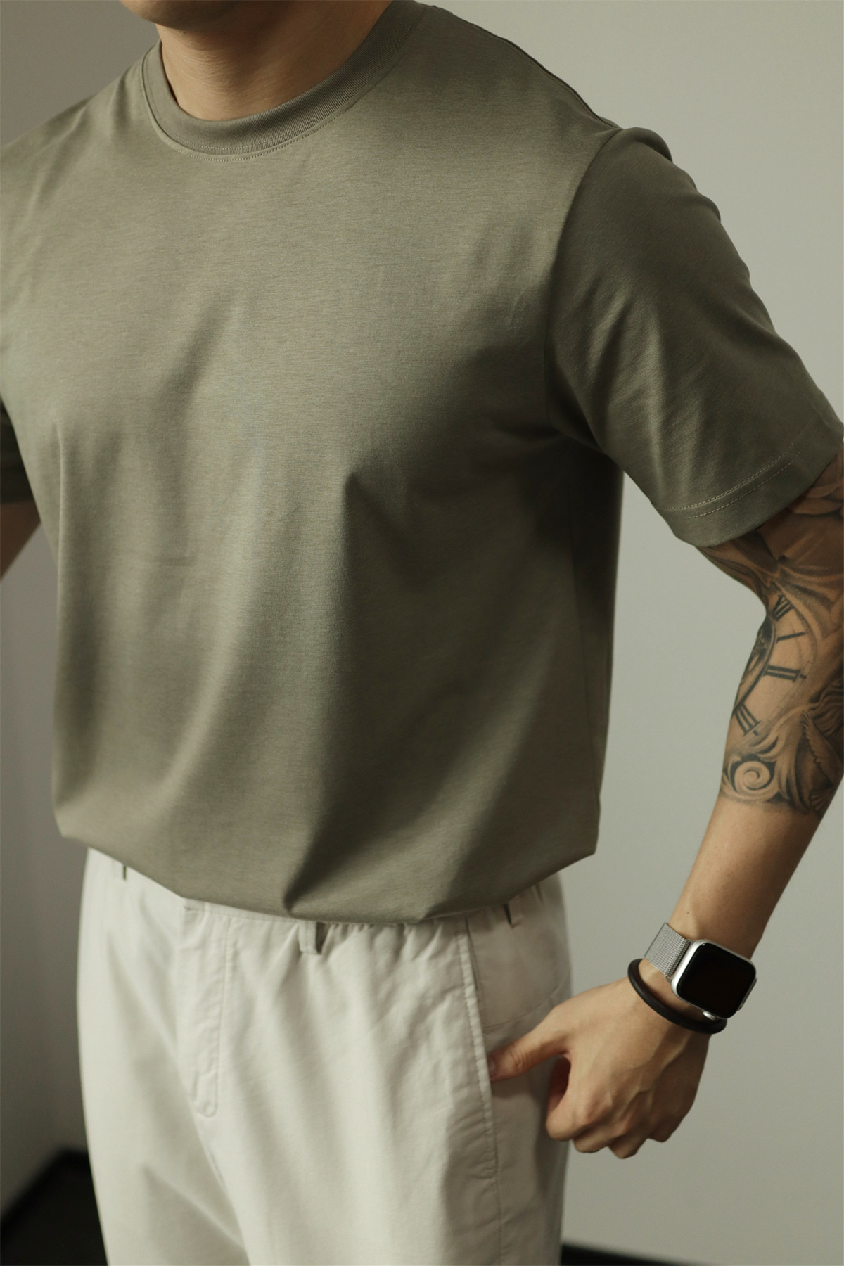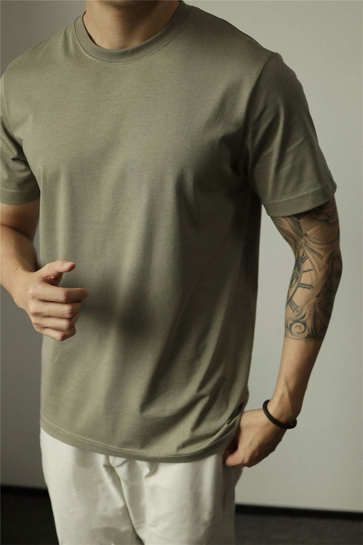 YUXIAN餘閒60支液氨短袖基礎春夏薄款輕熟商務T恤出純色柔順男士