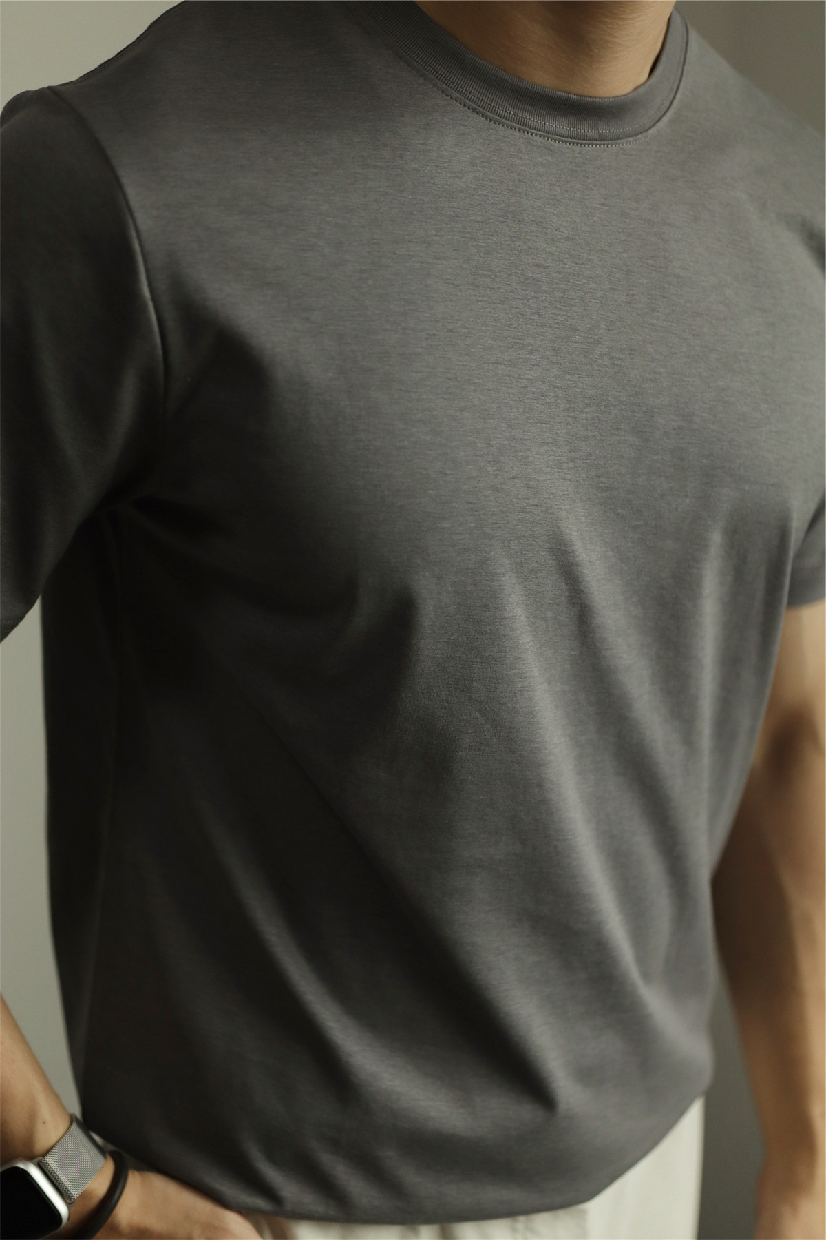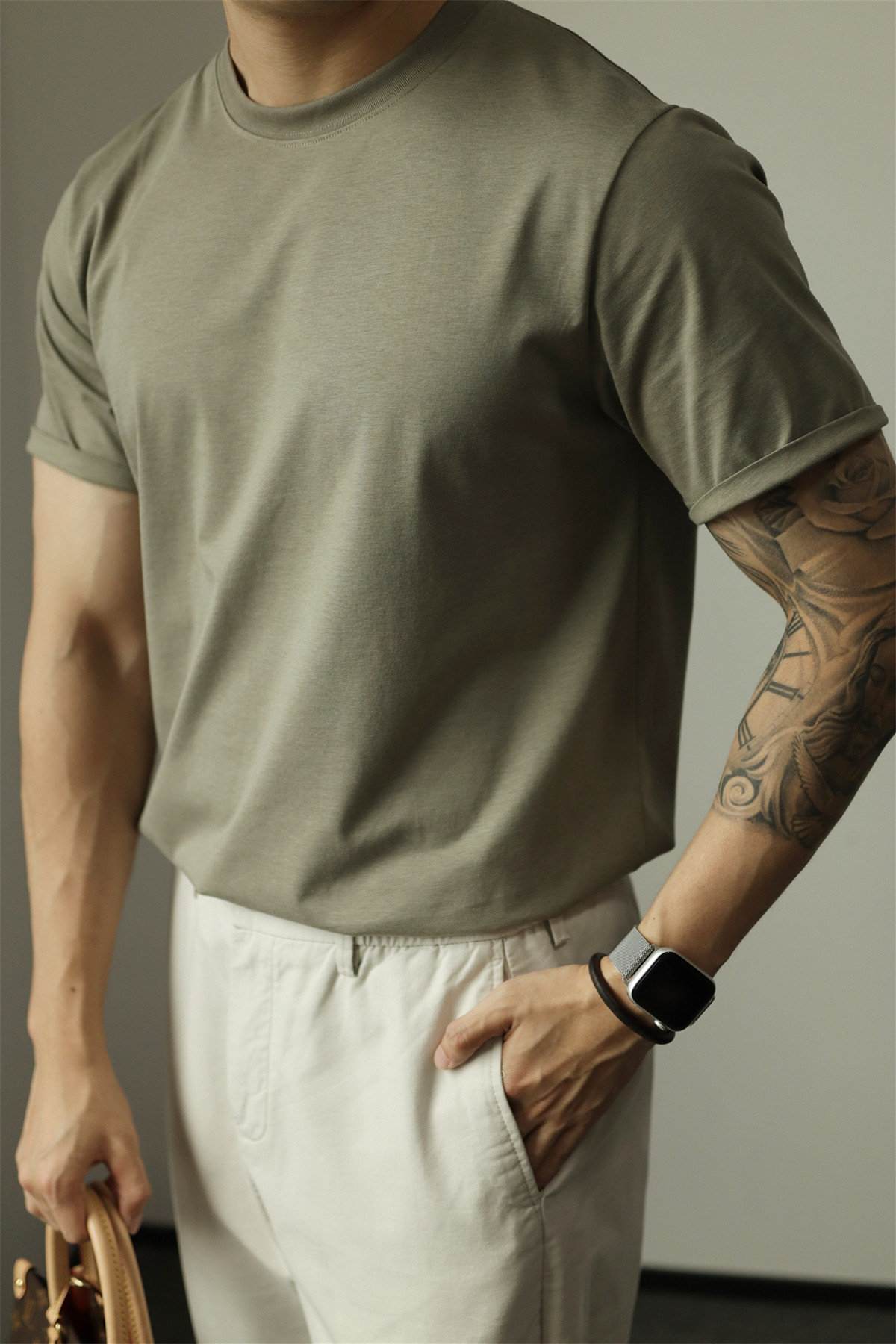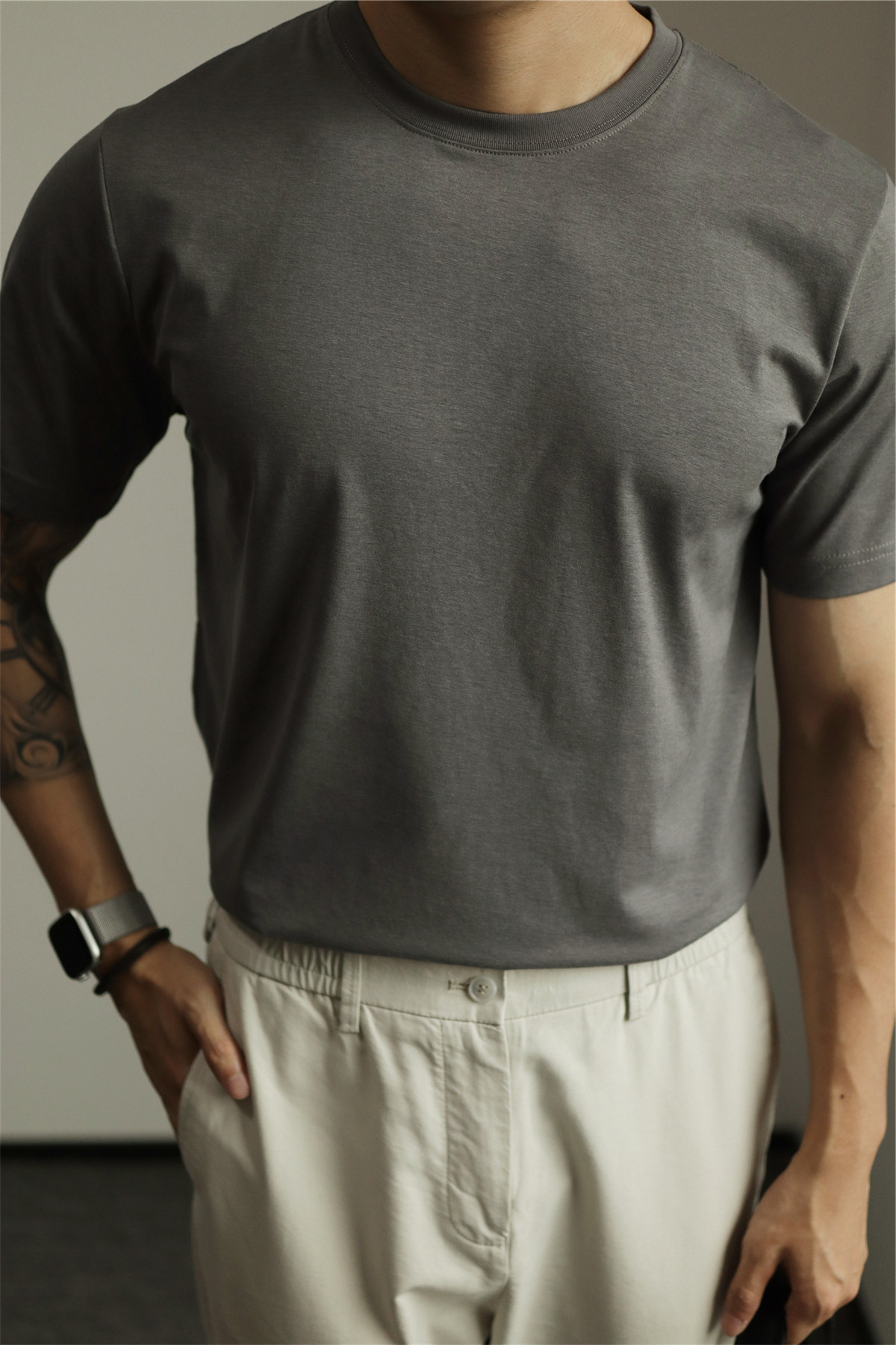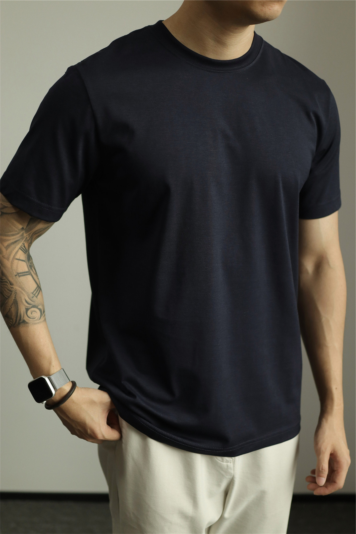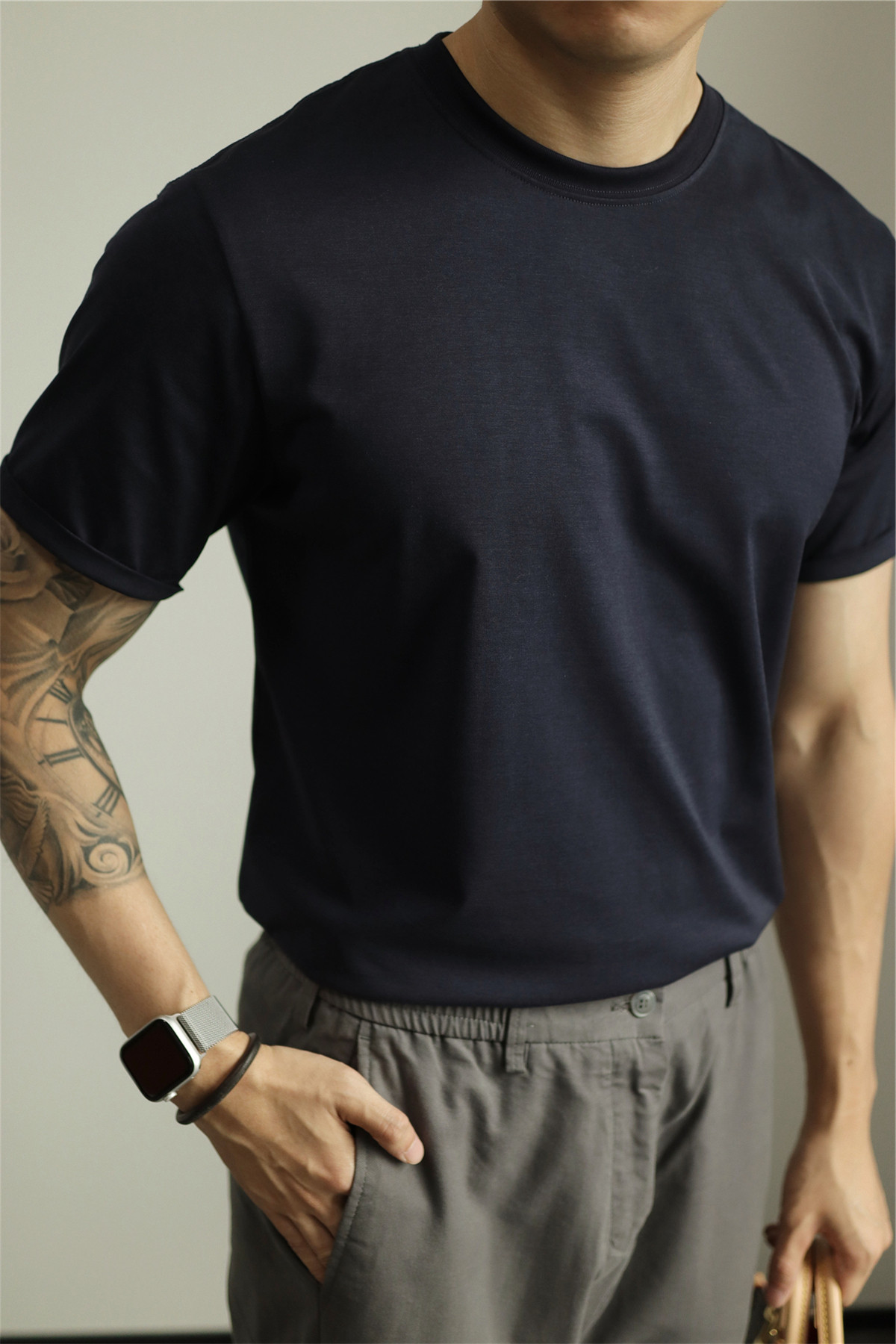 YUXIAN餘閒60支液氨短袖基礎春夏薄款輕熟商務T恤出純色柔順男士
