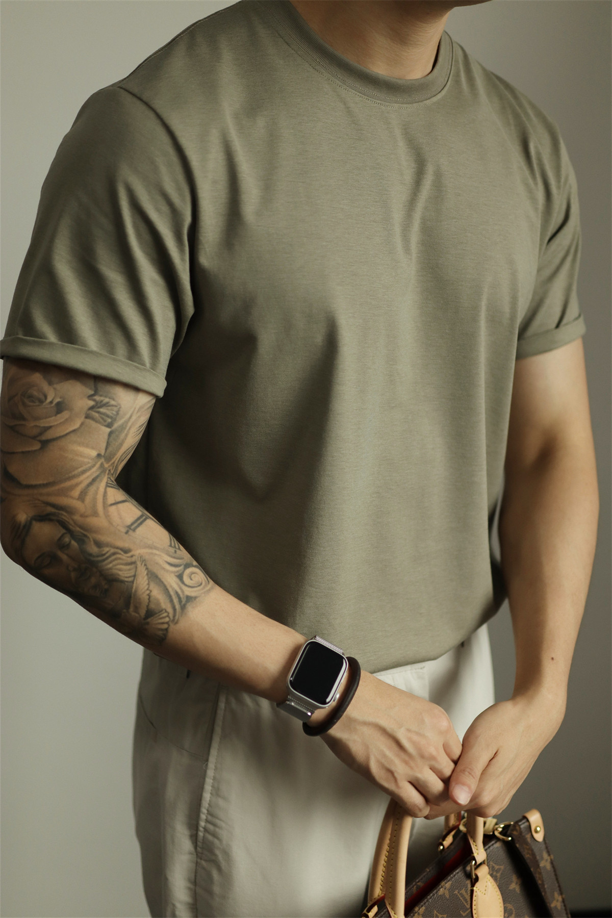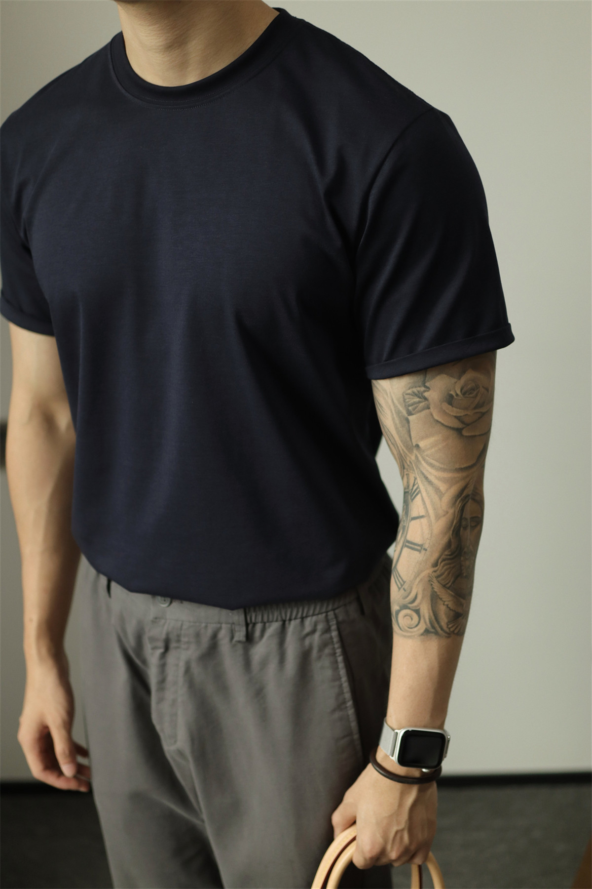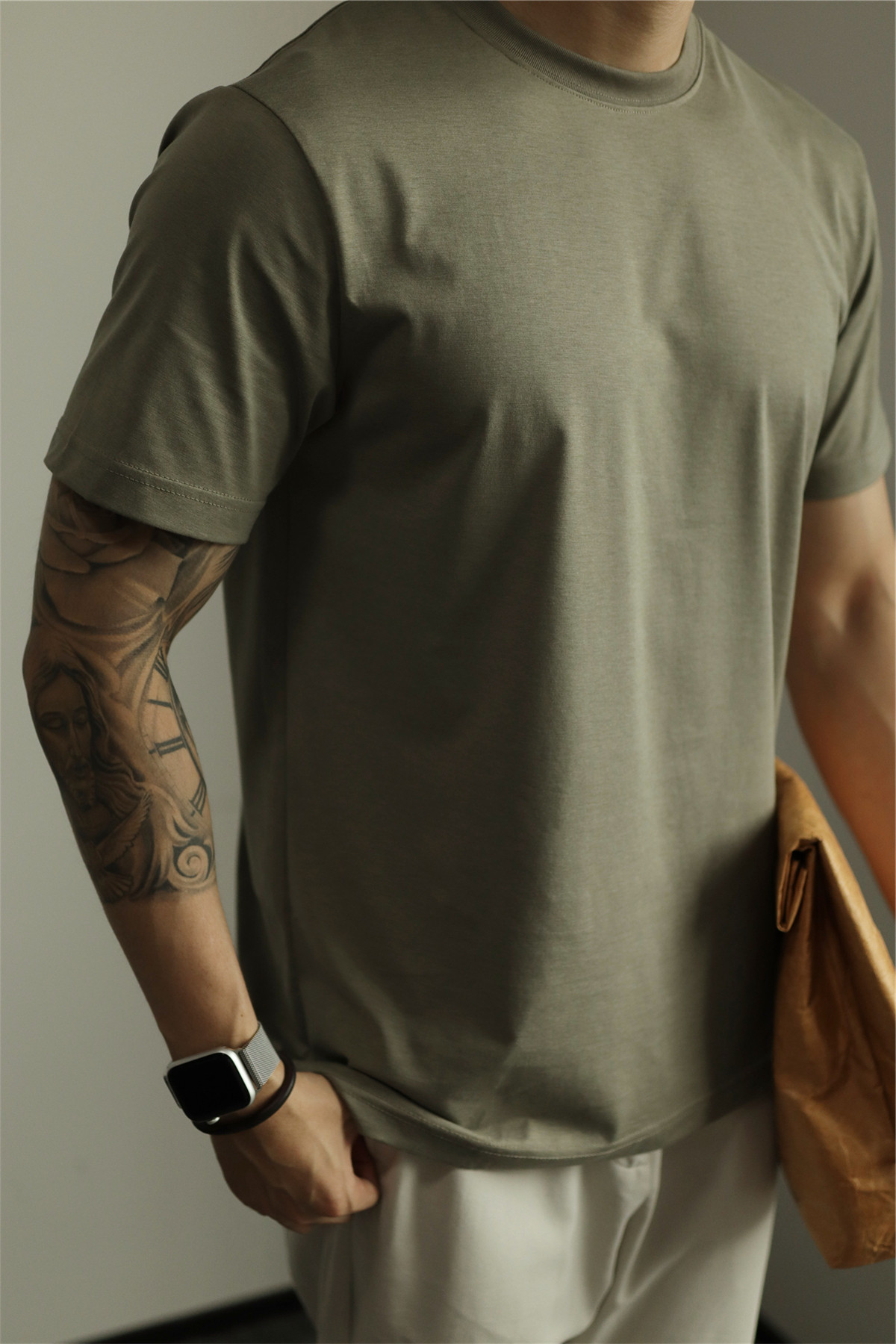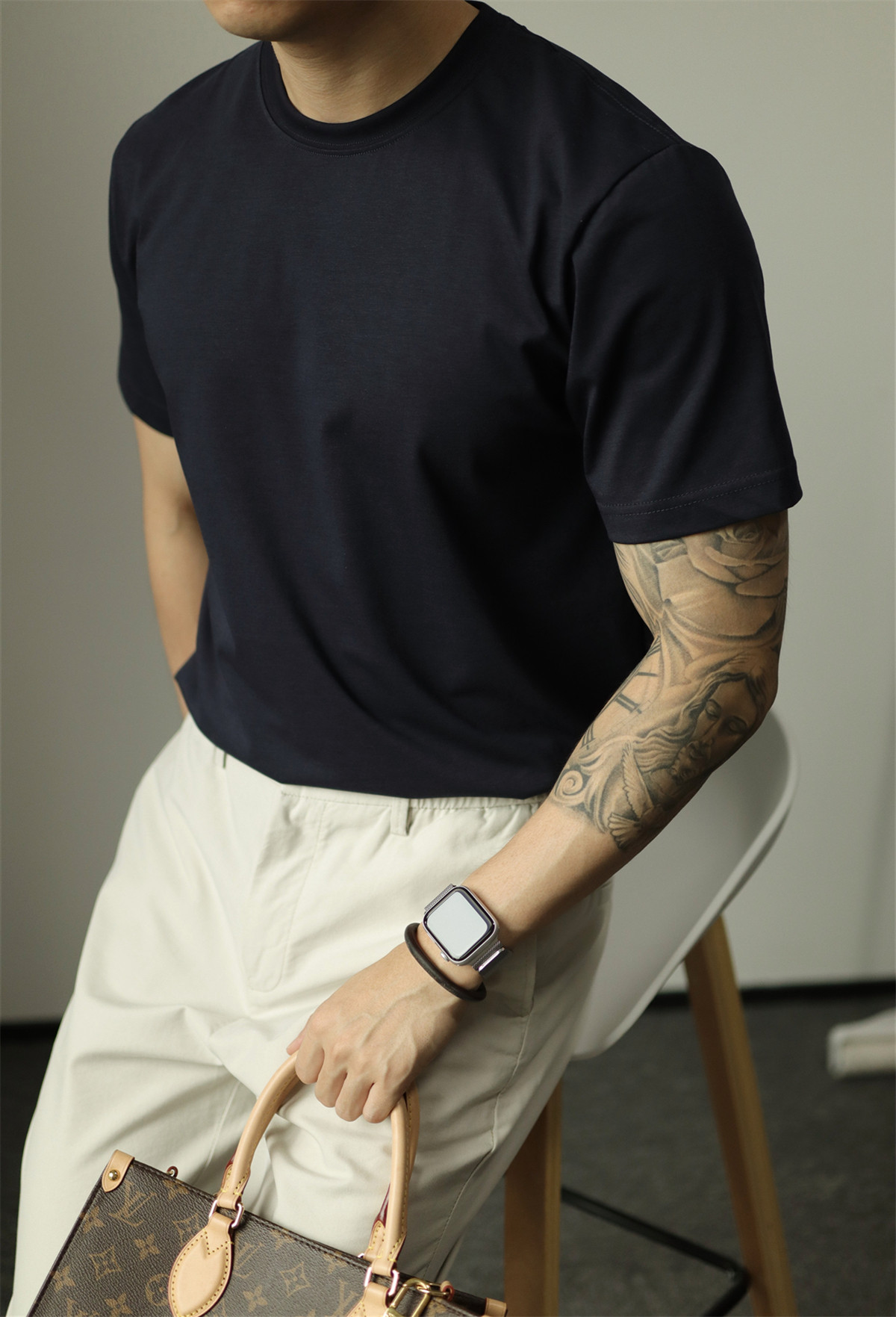 YUXIAN餘閒60支液氨短袖基礎春夏薄款輕熟商務T恤出純色柔順男士