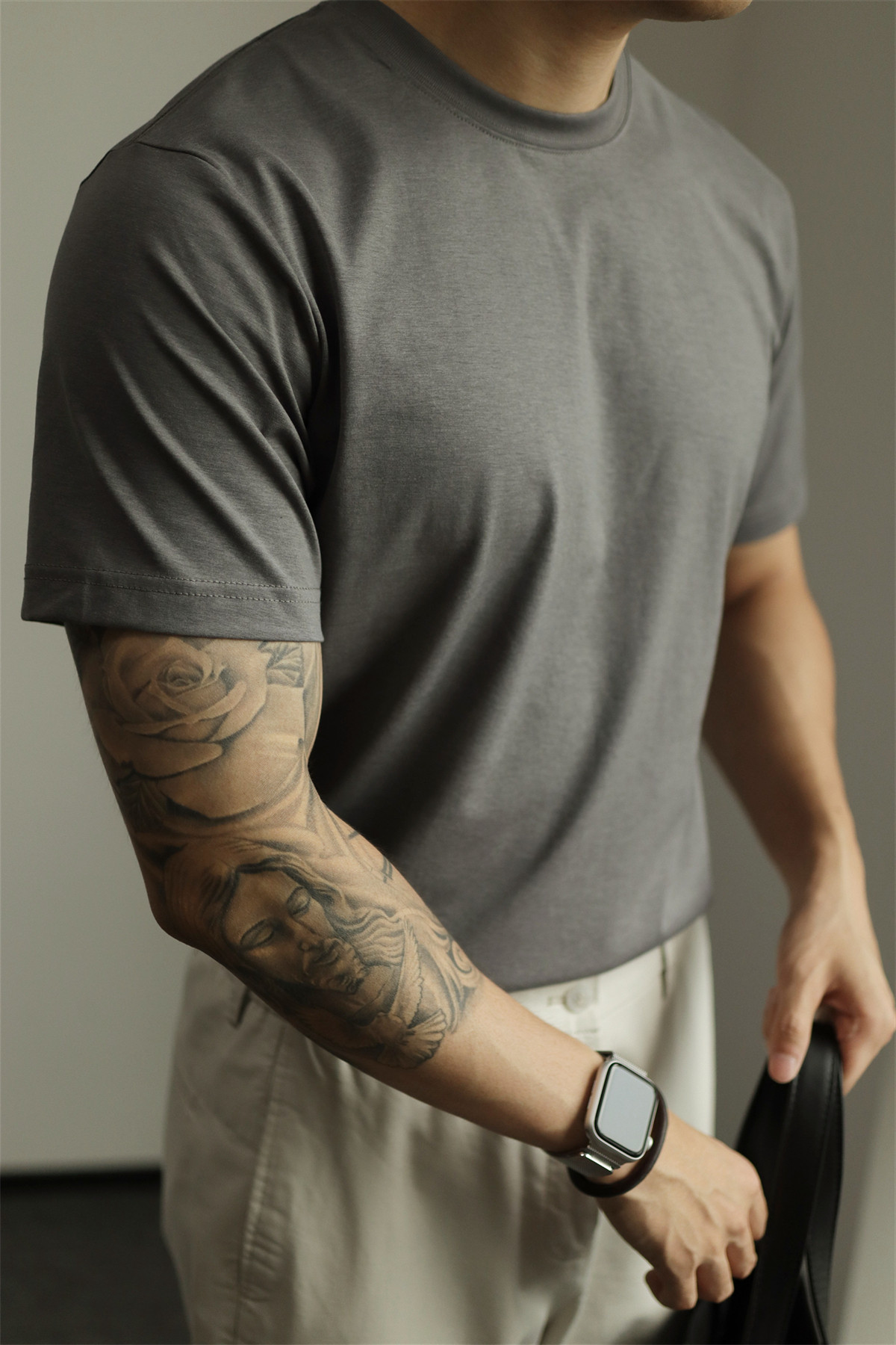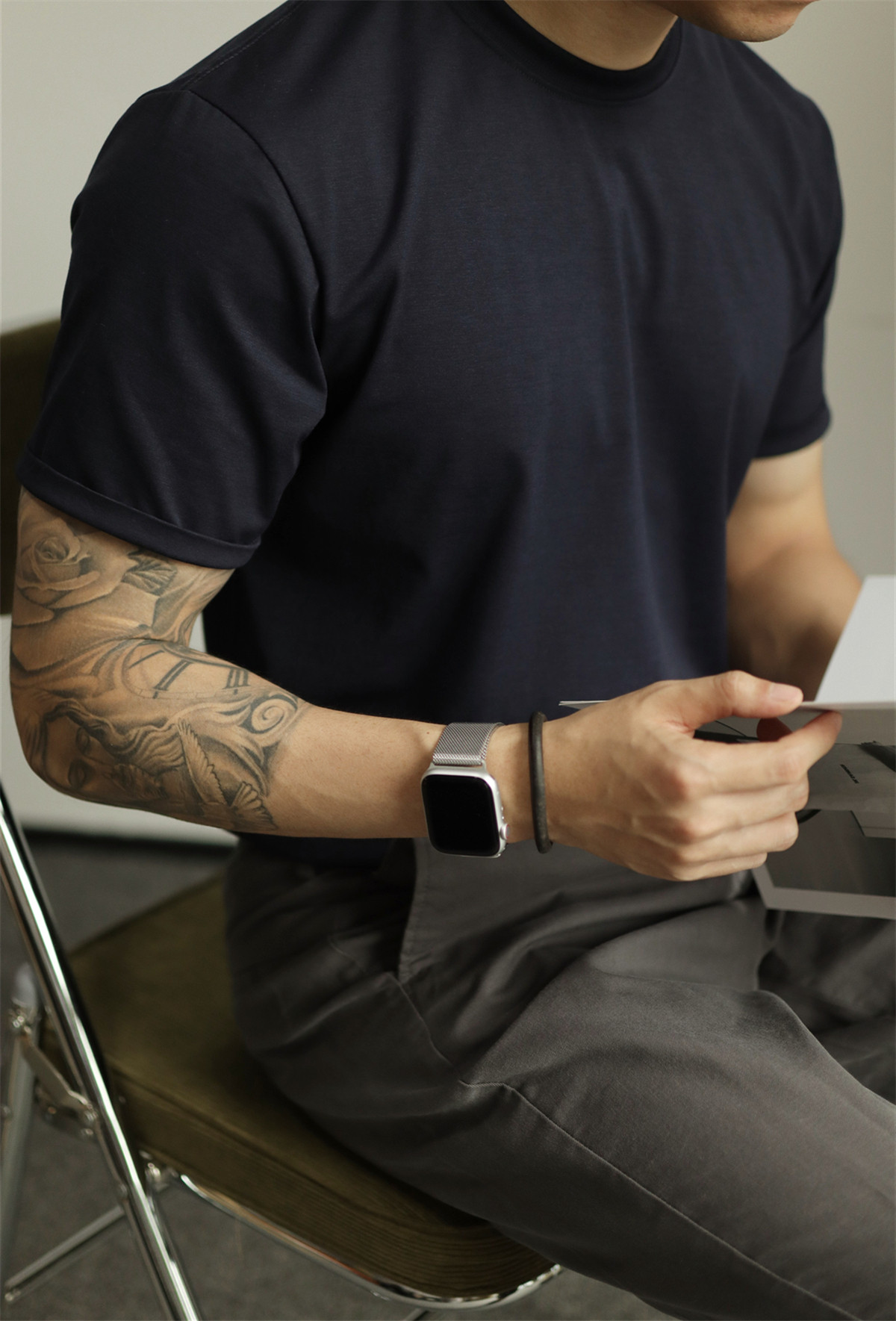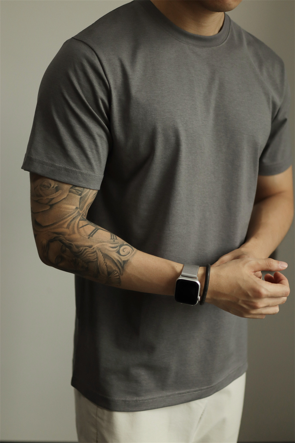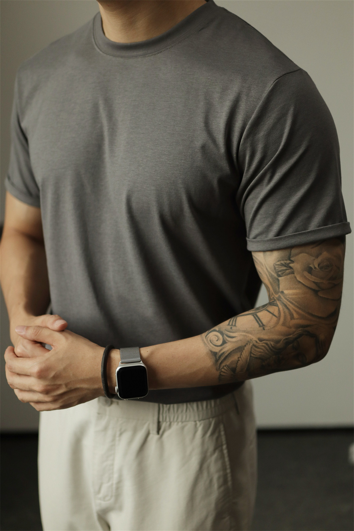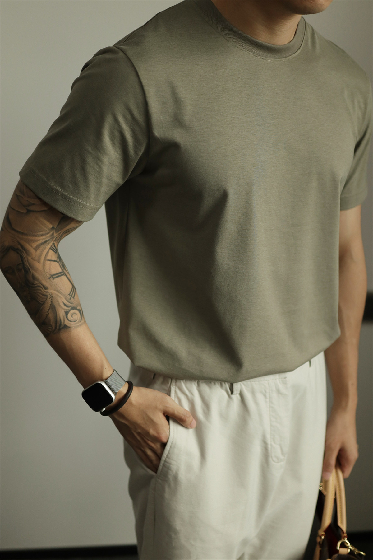 YUXIAN餘閒60支液氨短袖基礎春夏薄款輕熟商務T恤出純色柔順男士