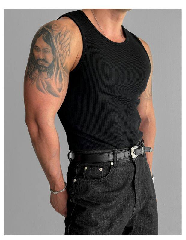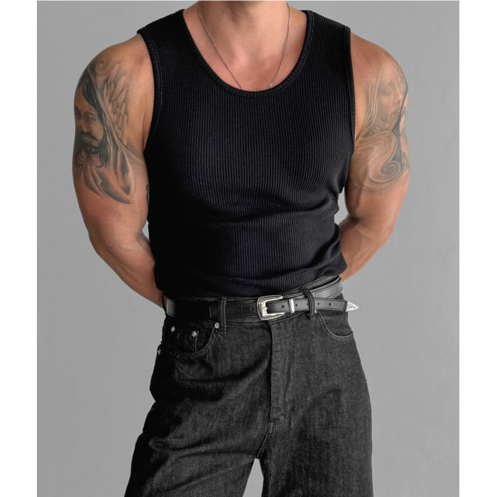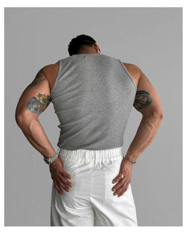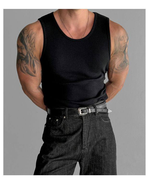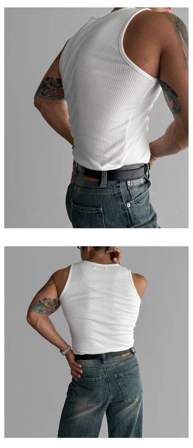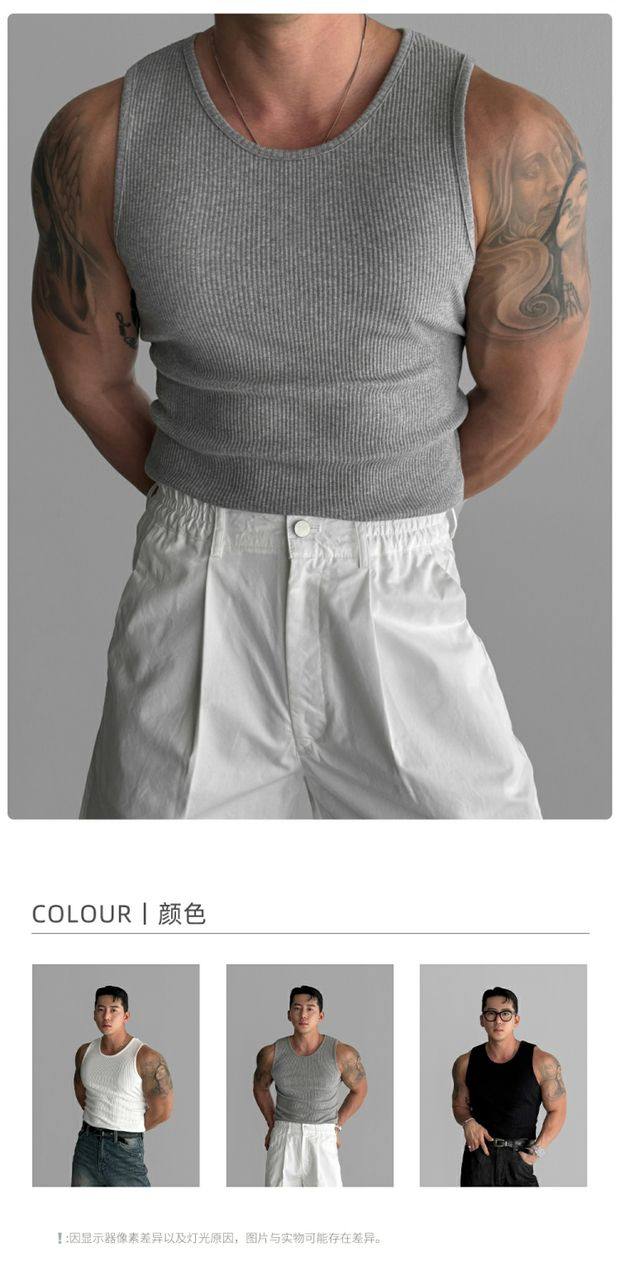 歐貨重磅純棉螺紋背心肌肉男高彈力無袖t恤健美訓練運動緊身衣潮
