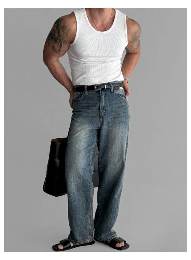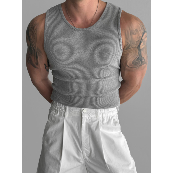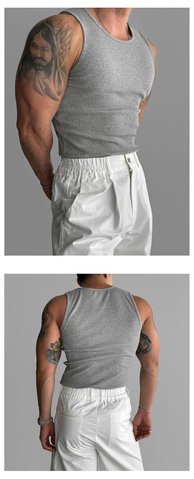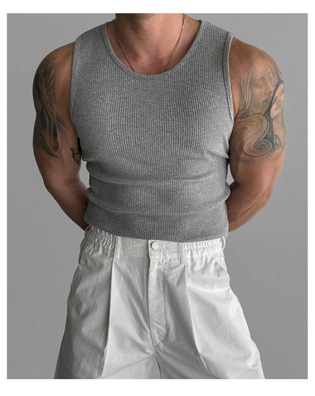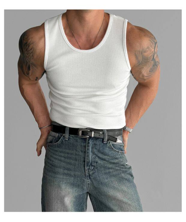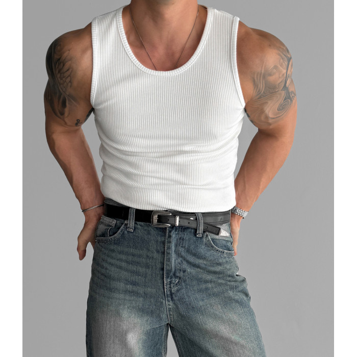 歐貨重磅純棉螺紋背心肌肉男高彈力無袖t恤健美訓練運動緊身衣潮