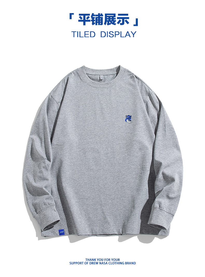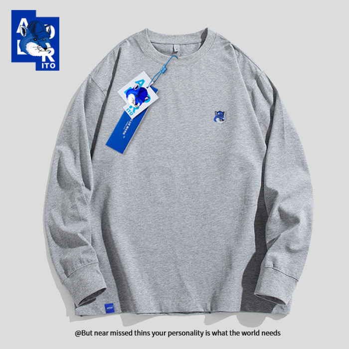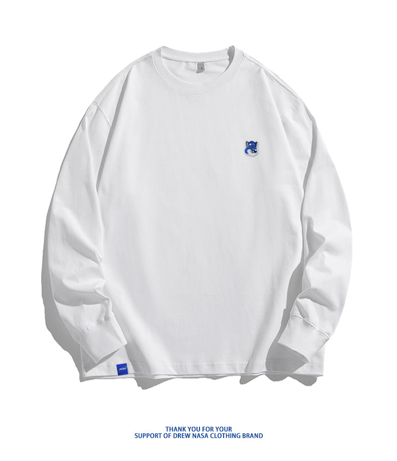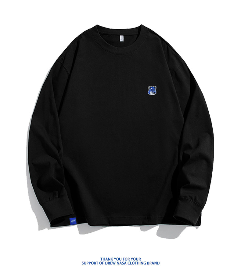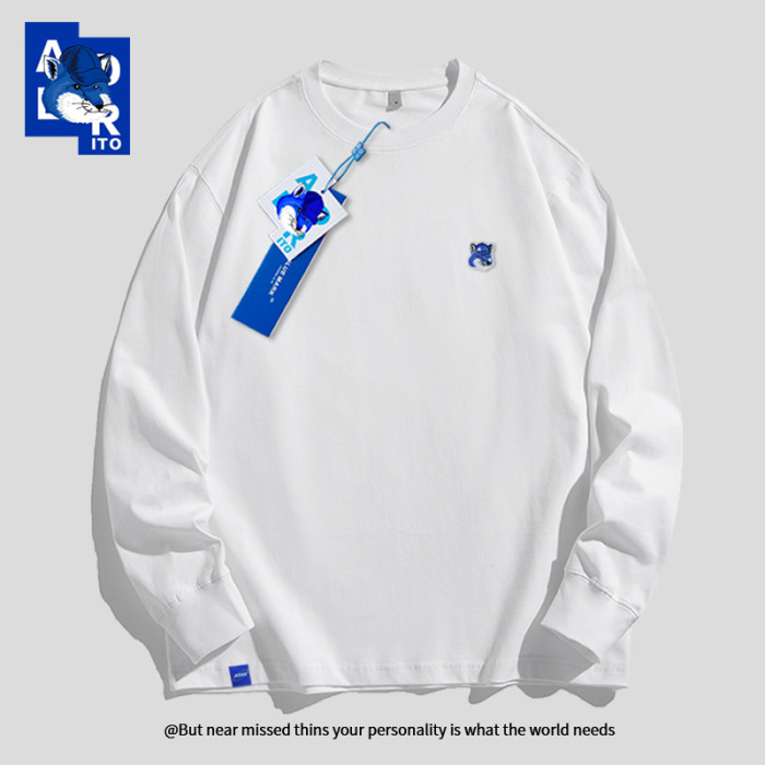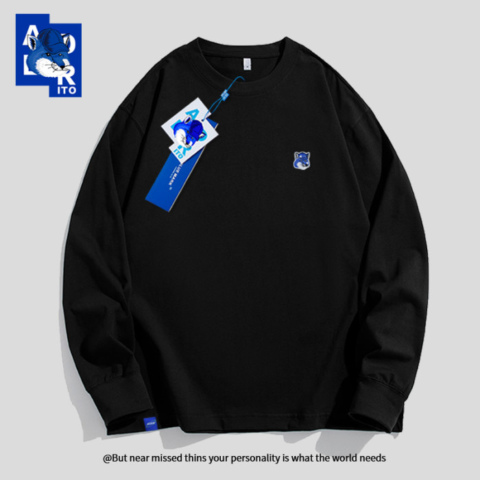 韓國潮牌ADER ITO藍色狐狸頭刺綉高級高支高密百搭長袖T恤男純色