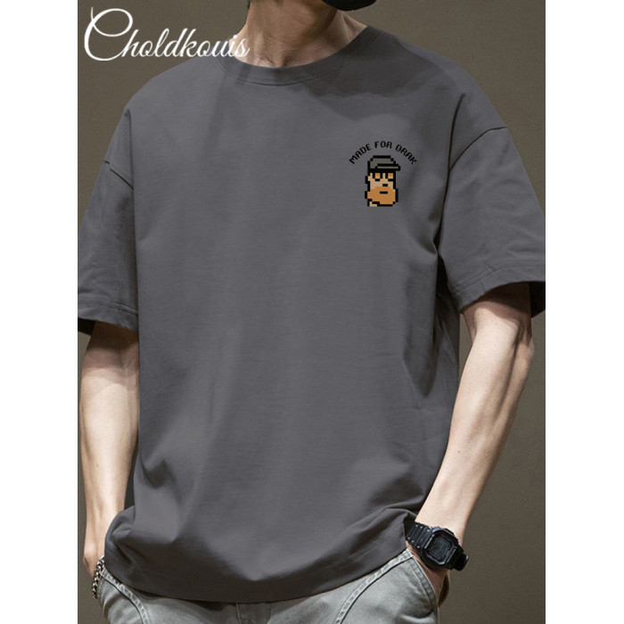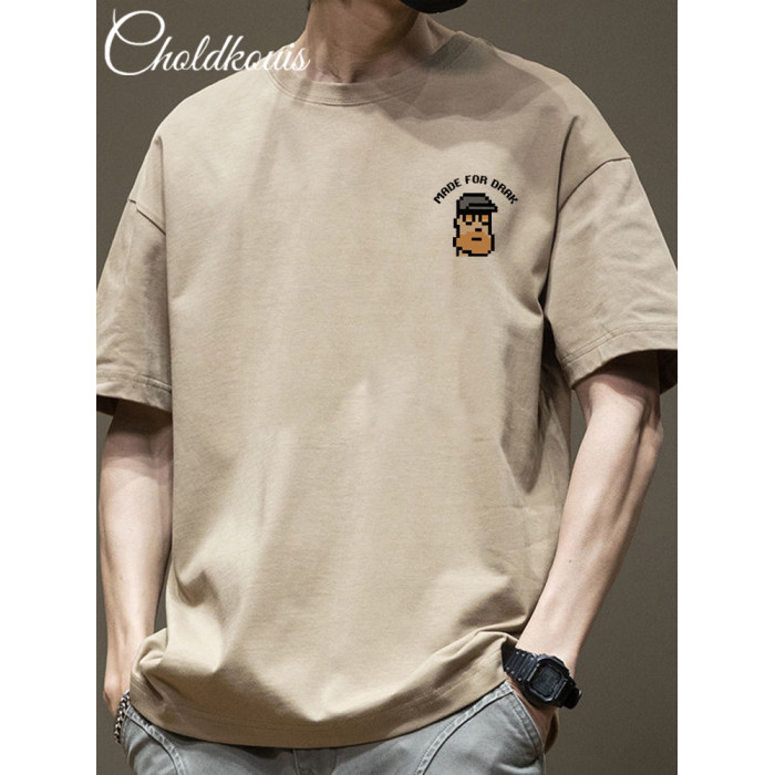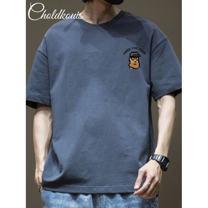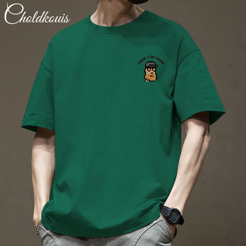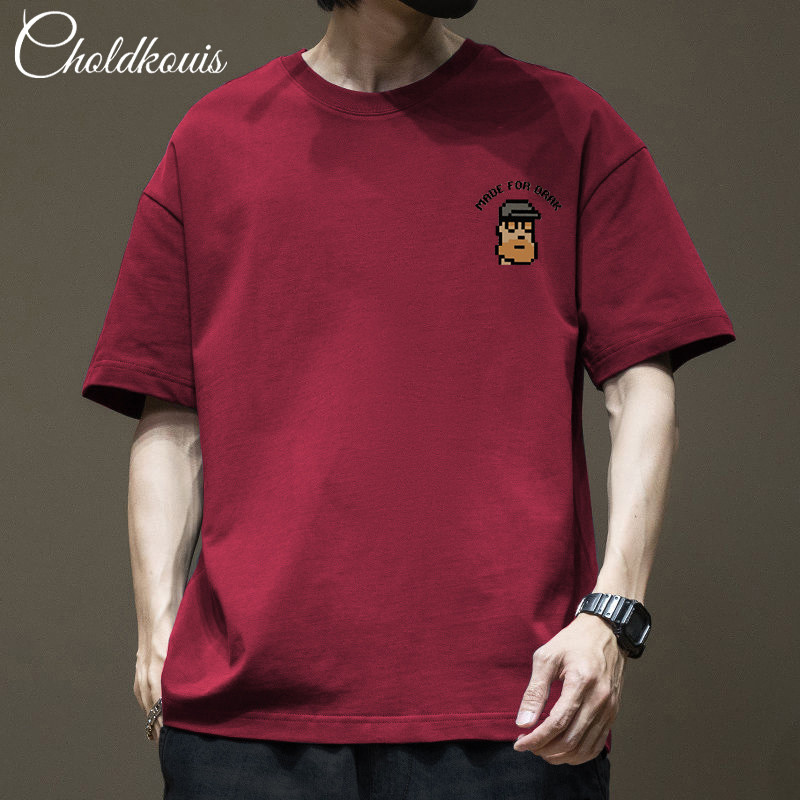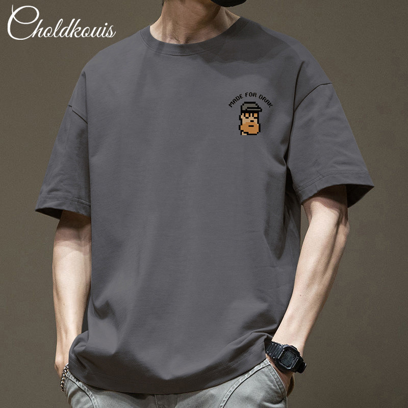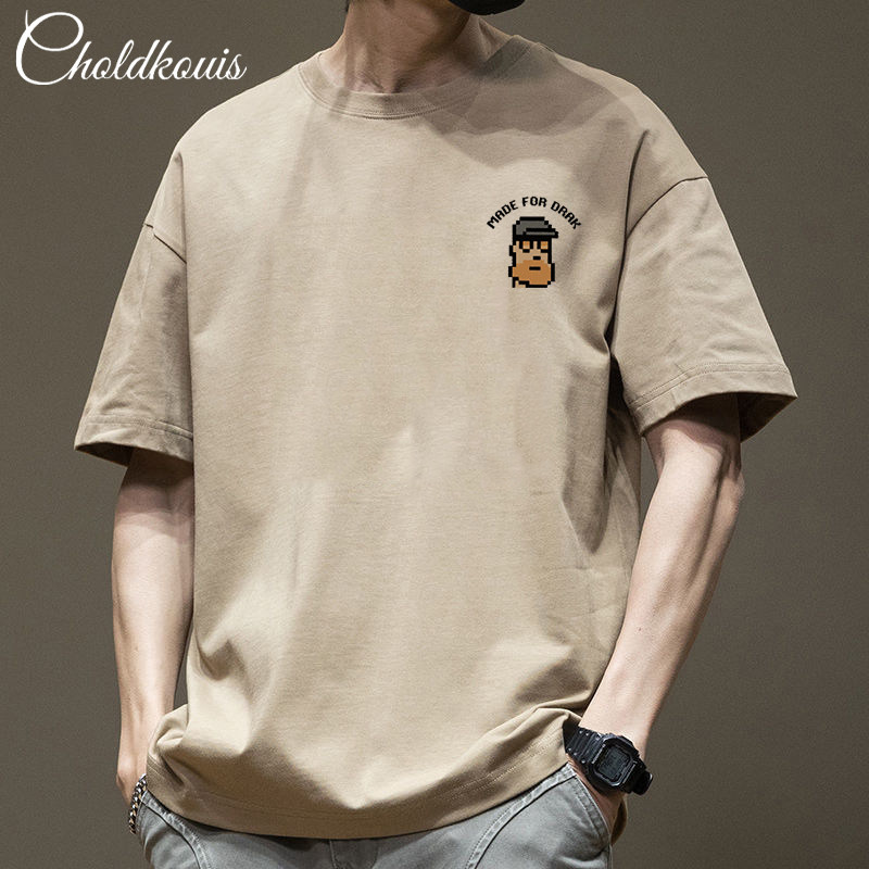 短袖t恤男夏季日系簡約純棉體恤寬松潮流百搭美式情侶五分袖上衣