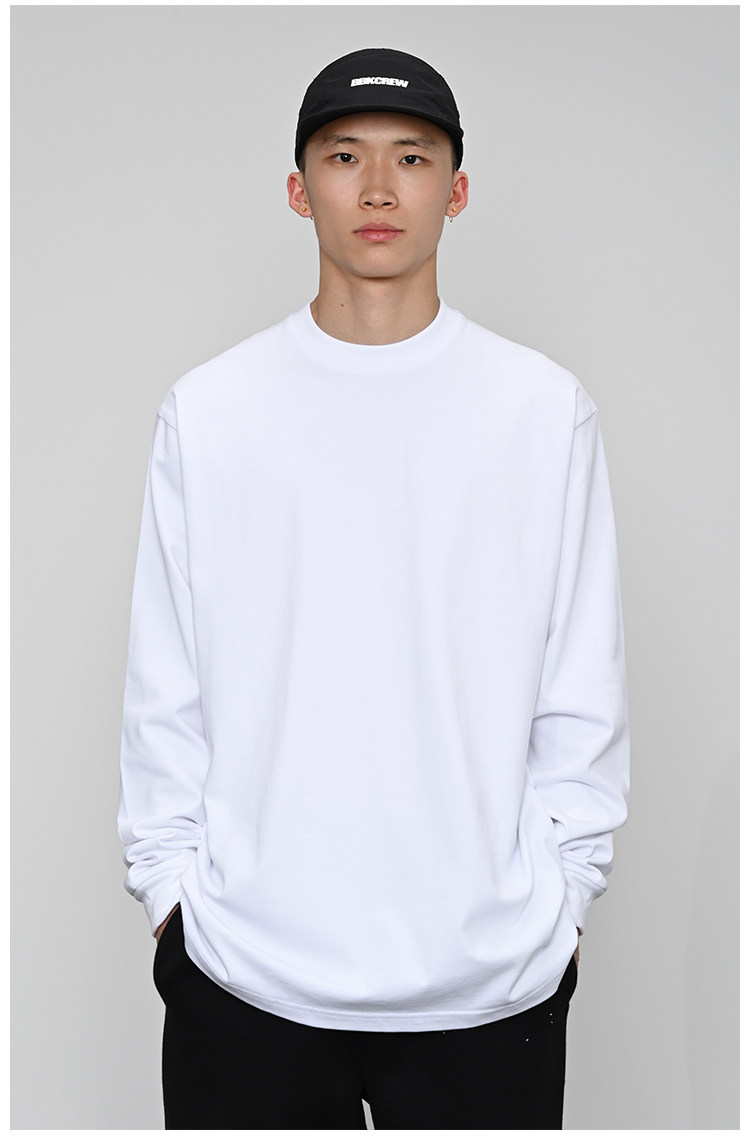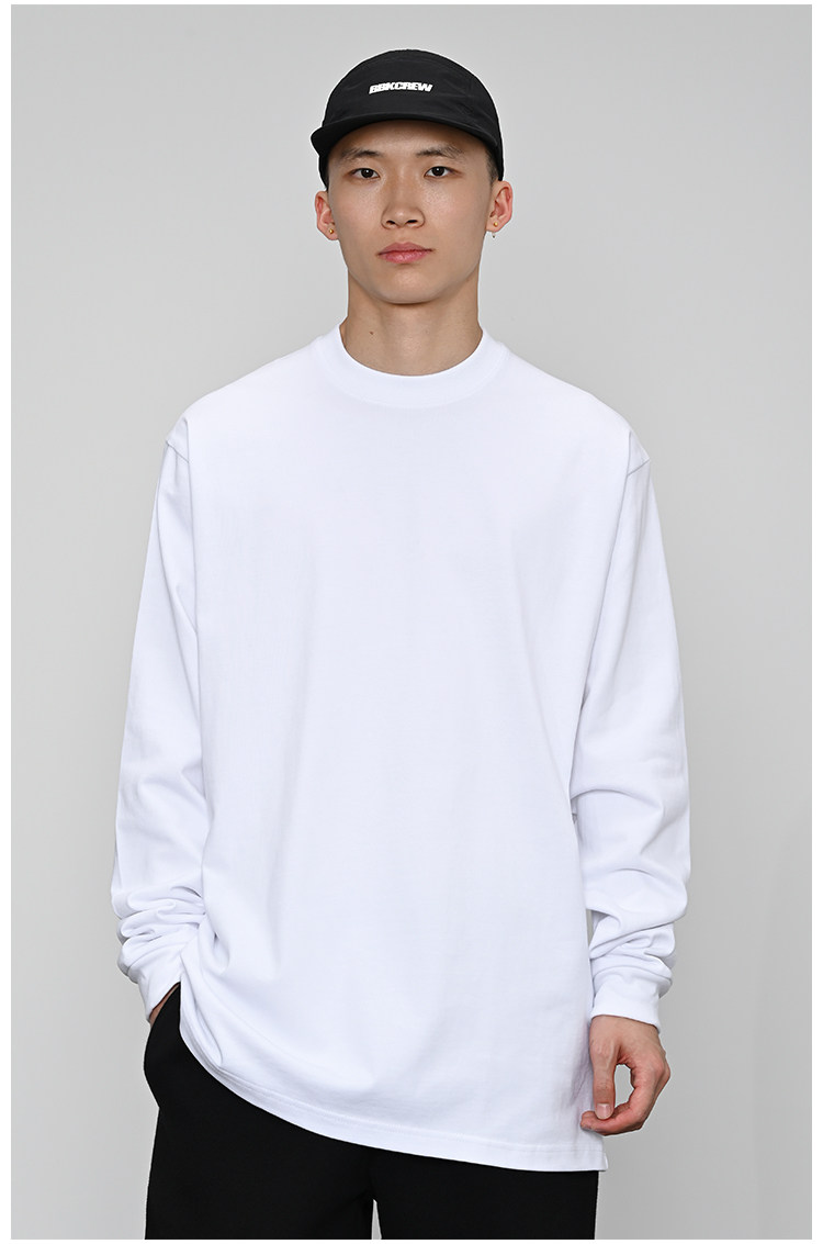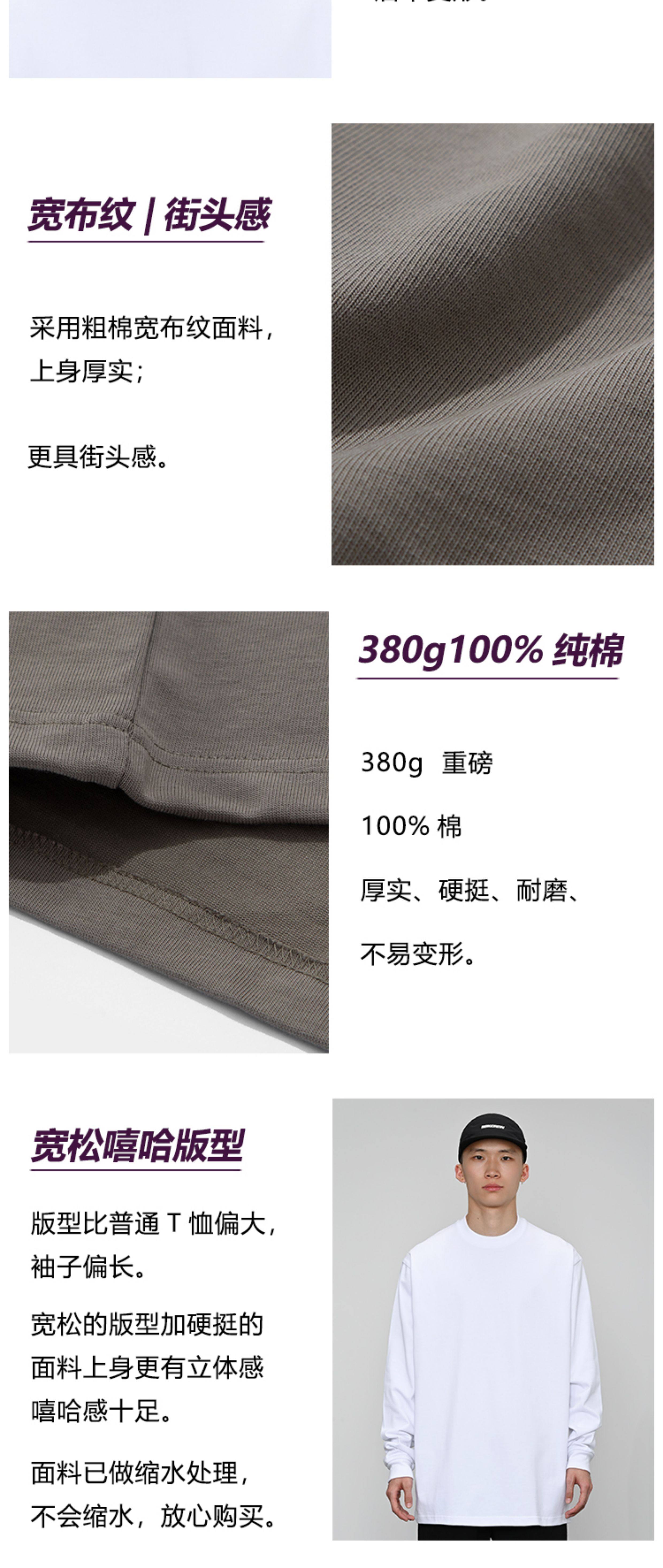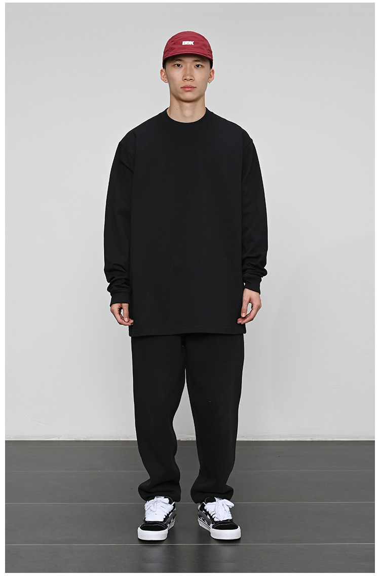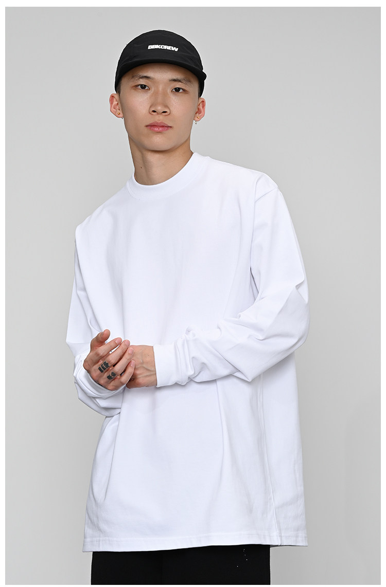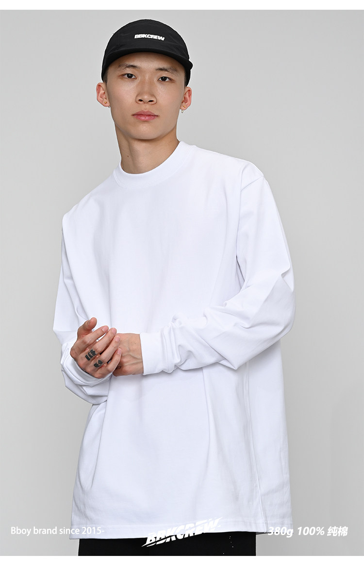 380g重磅 小領口 純色長袖bboy寬松打底 淨色t恤 街舞 嘻哈 說唱