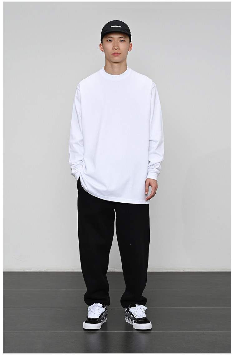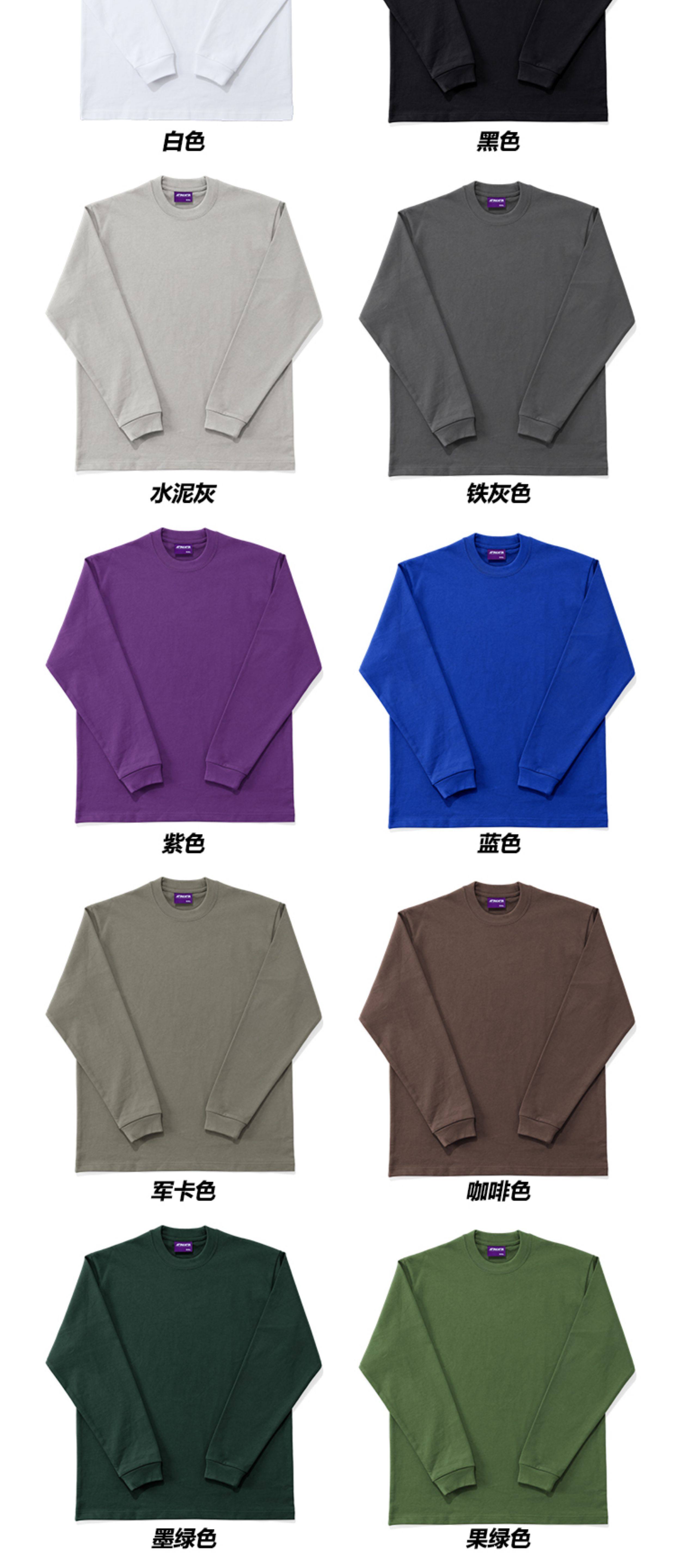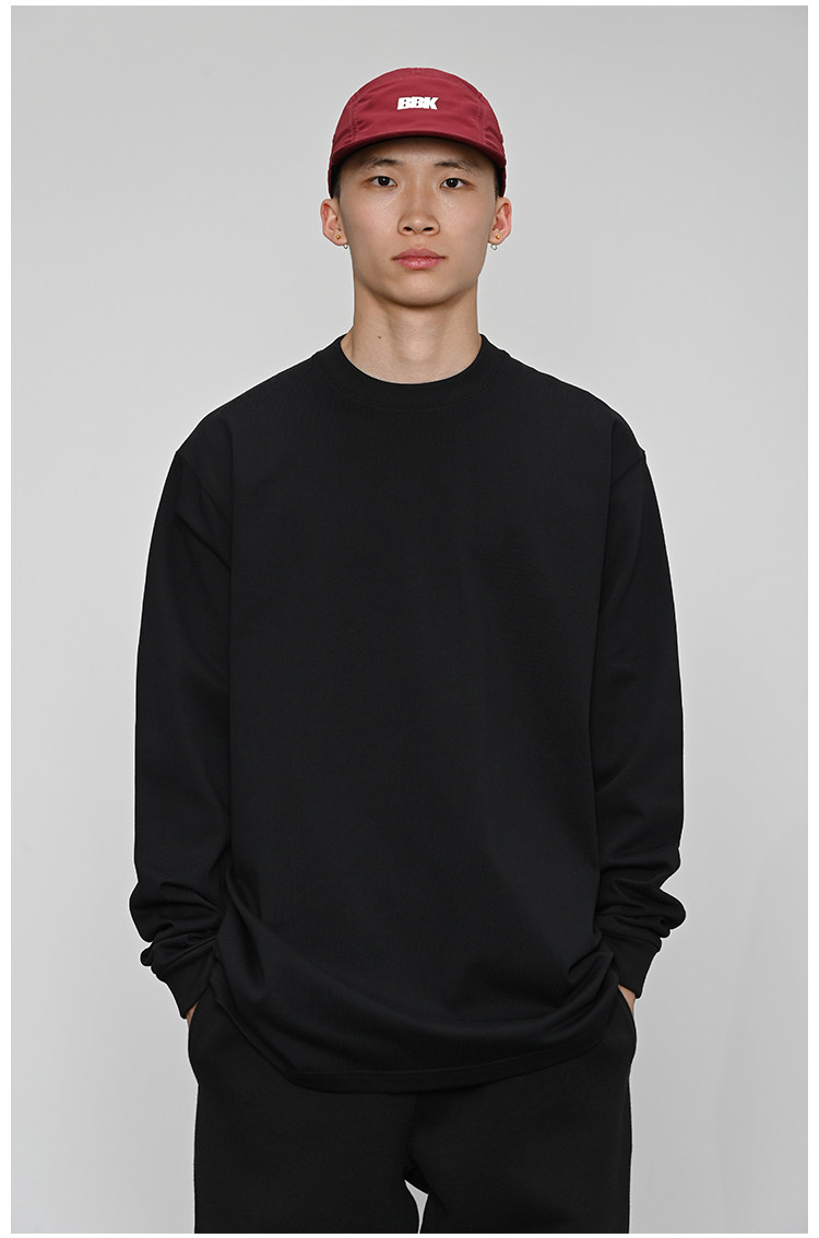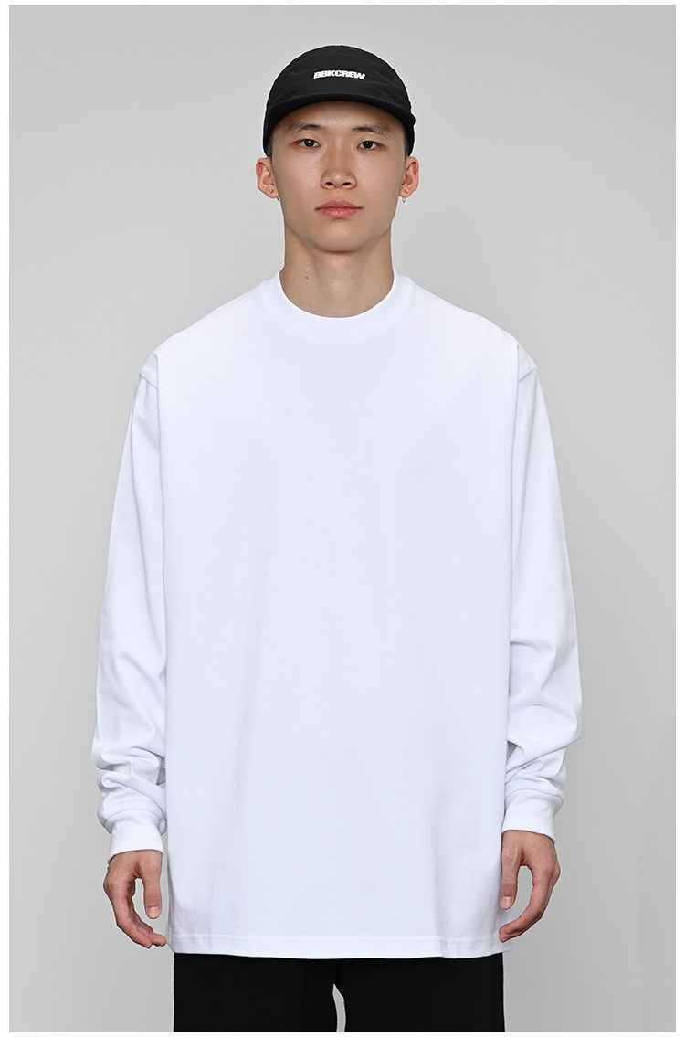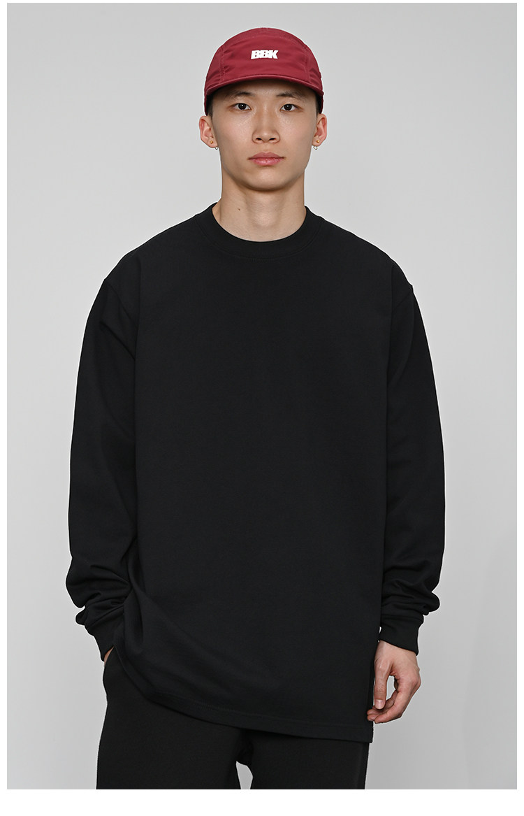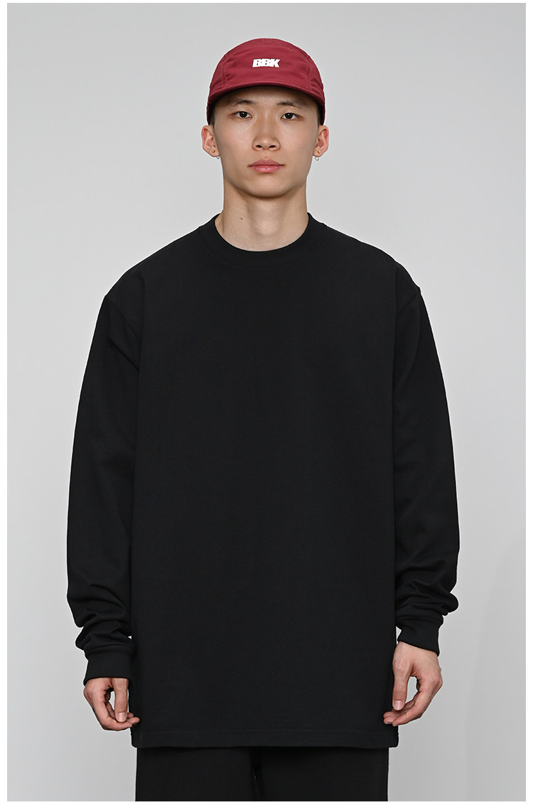380g重磅 小領口 純色長袖bboy寬松打底 淨色t恤 街舞 嘻哈 說唱