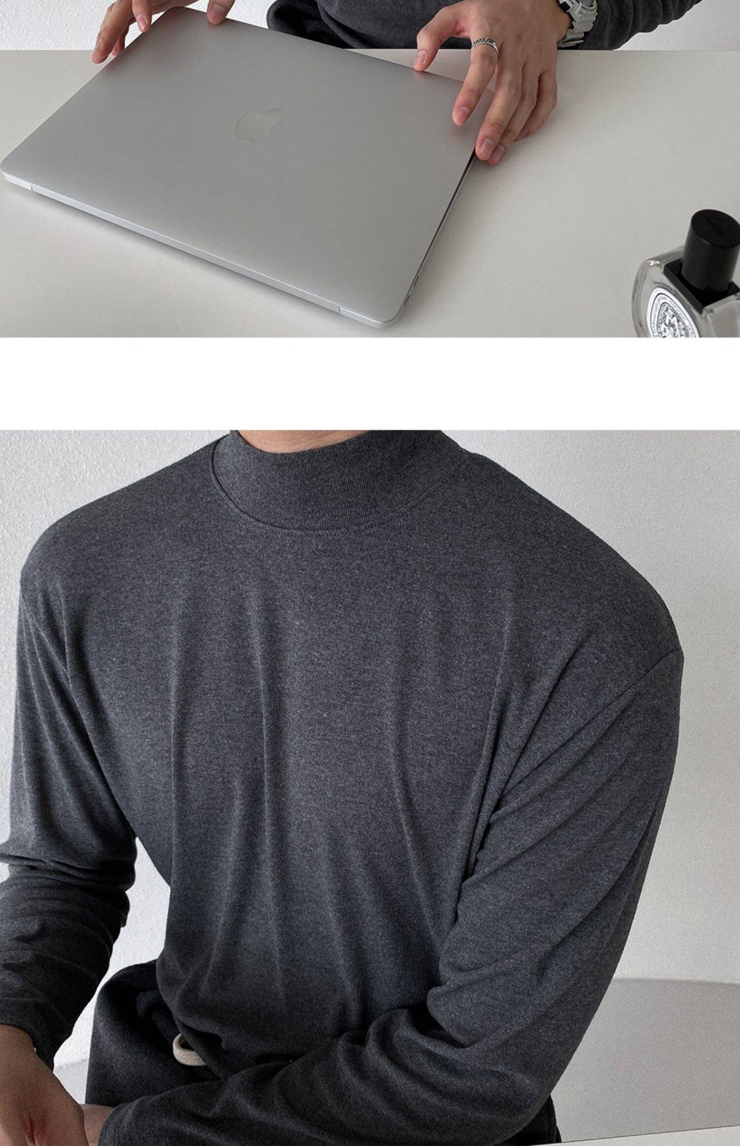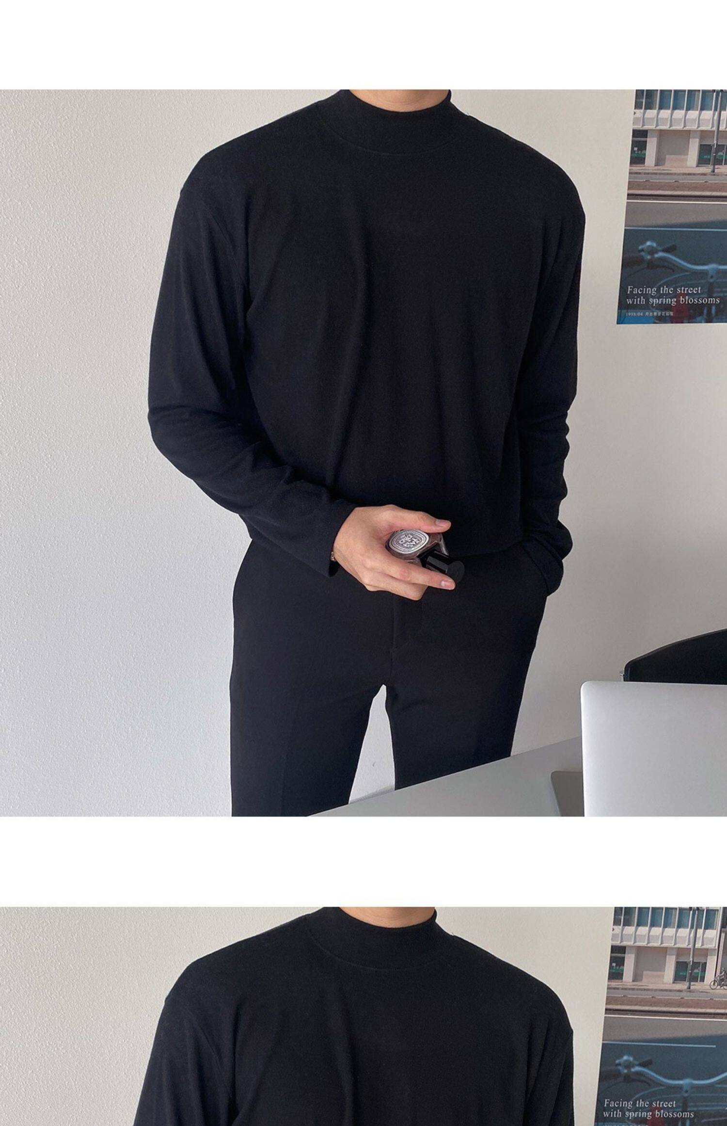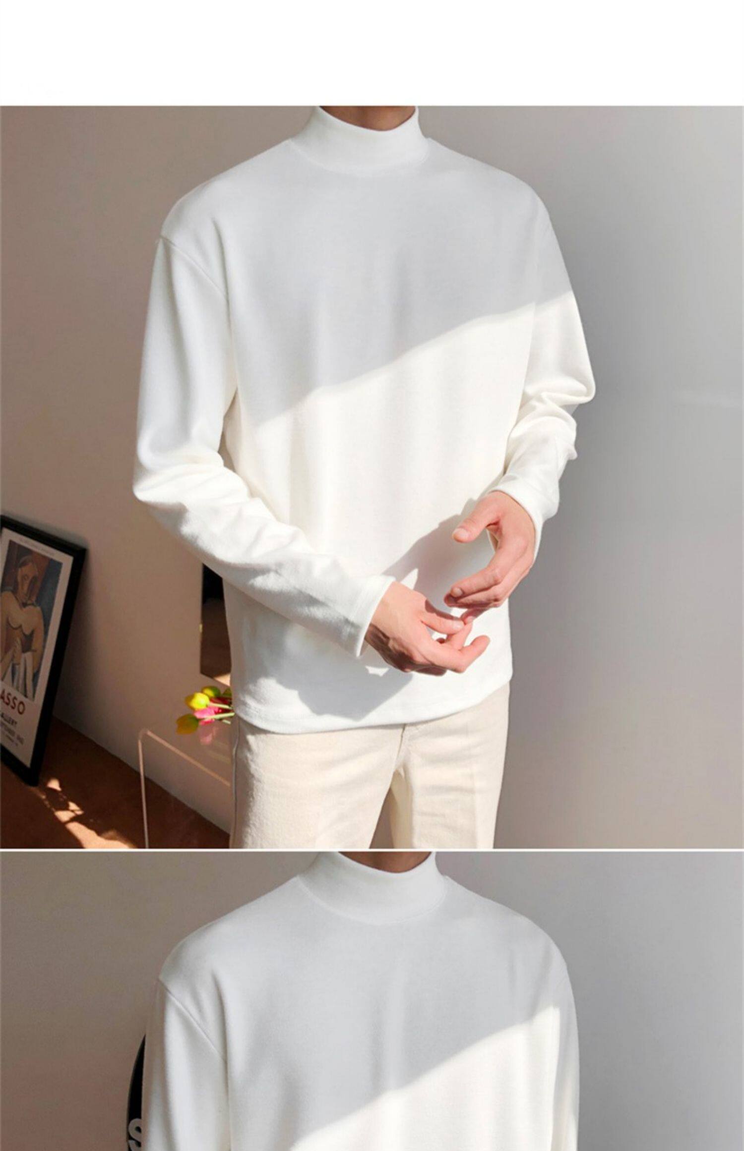 韓版秋冬季德絨半高領打底衫男寬松潮內搭黑色中高領秋衣長袖T恤