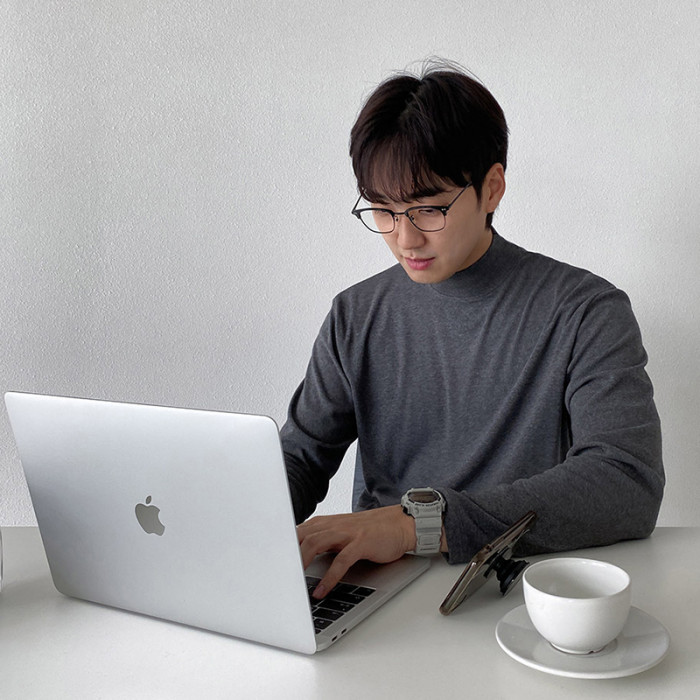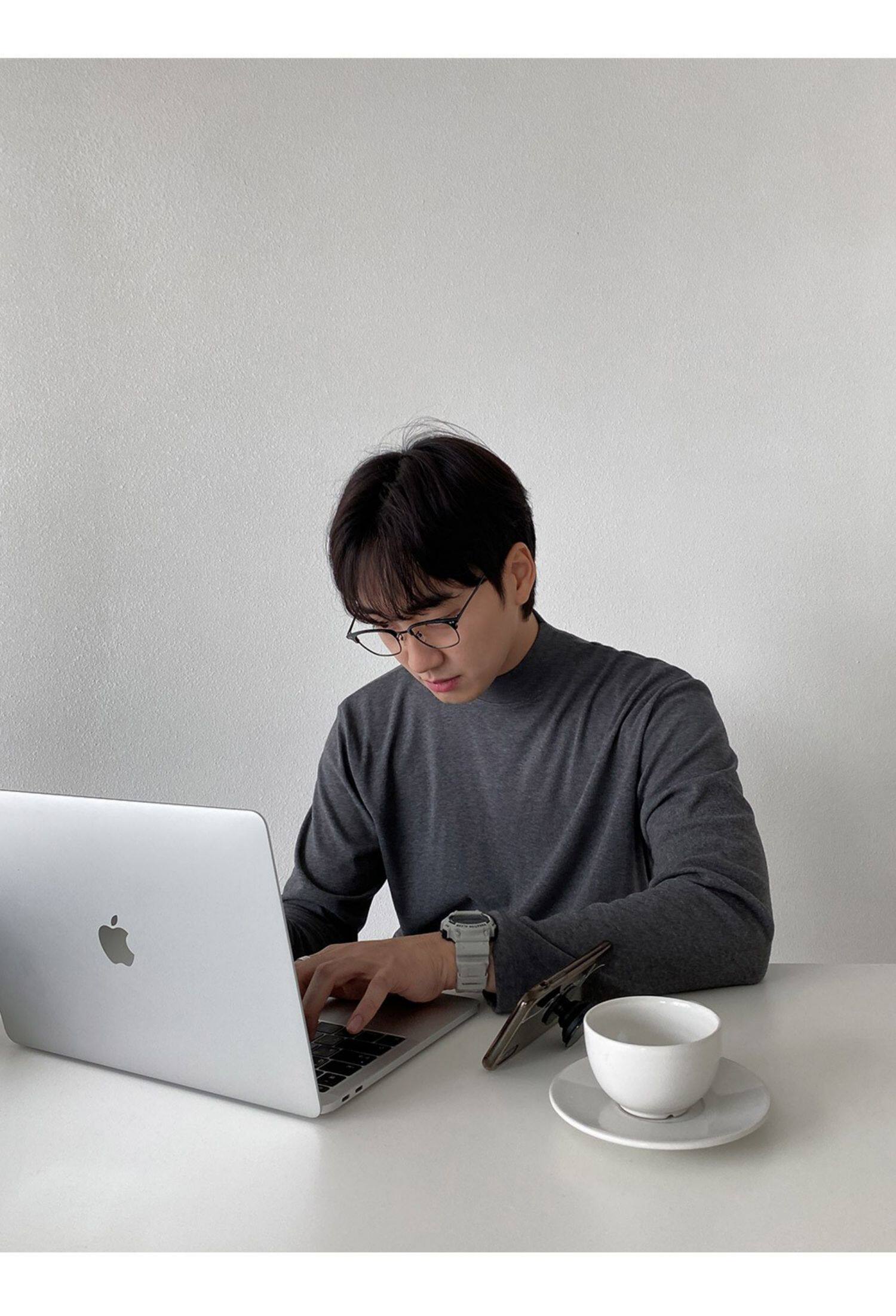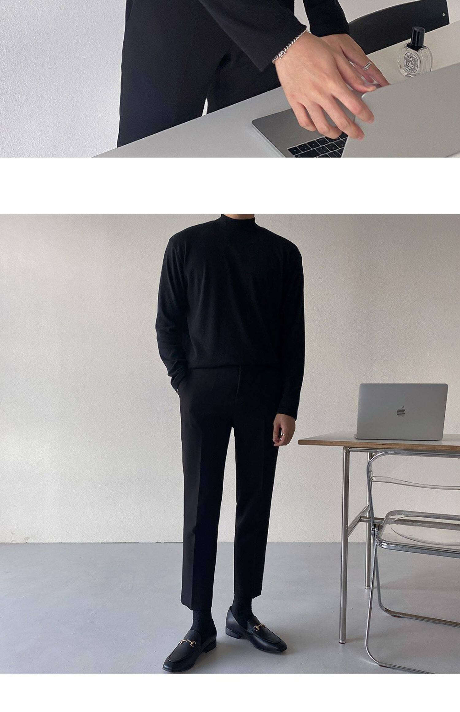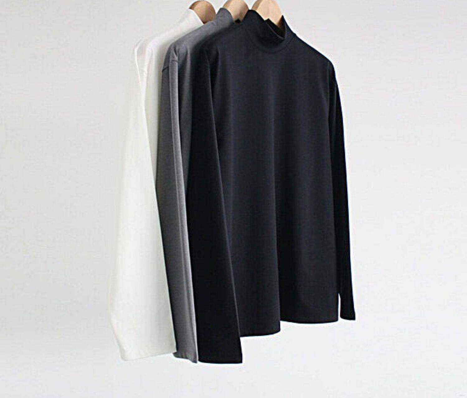 韓版秋冬季德絨半高領打底衫男寬松潮內搭黑色中高領秋衣長袖T恤